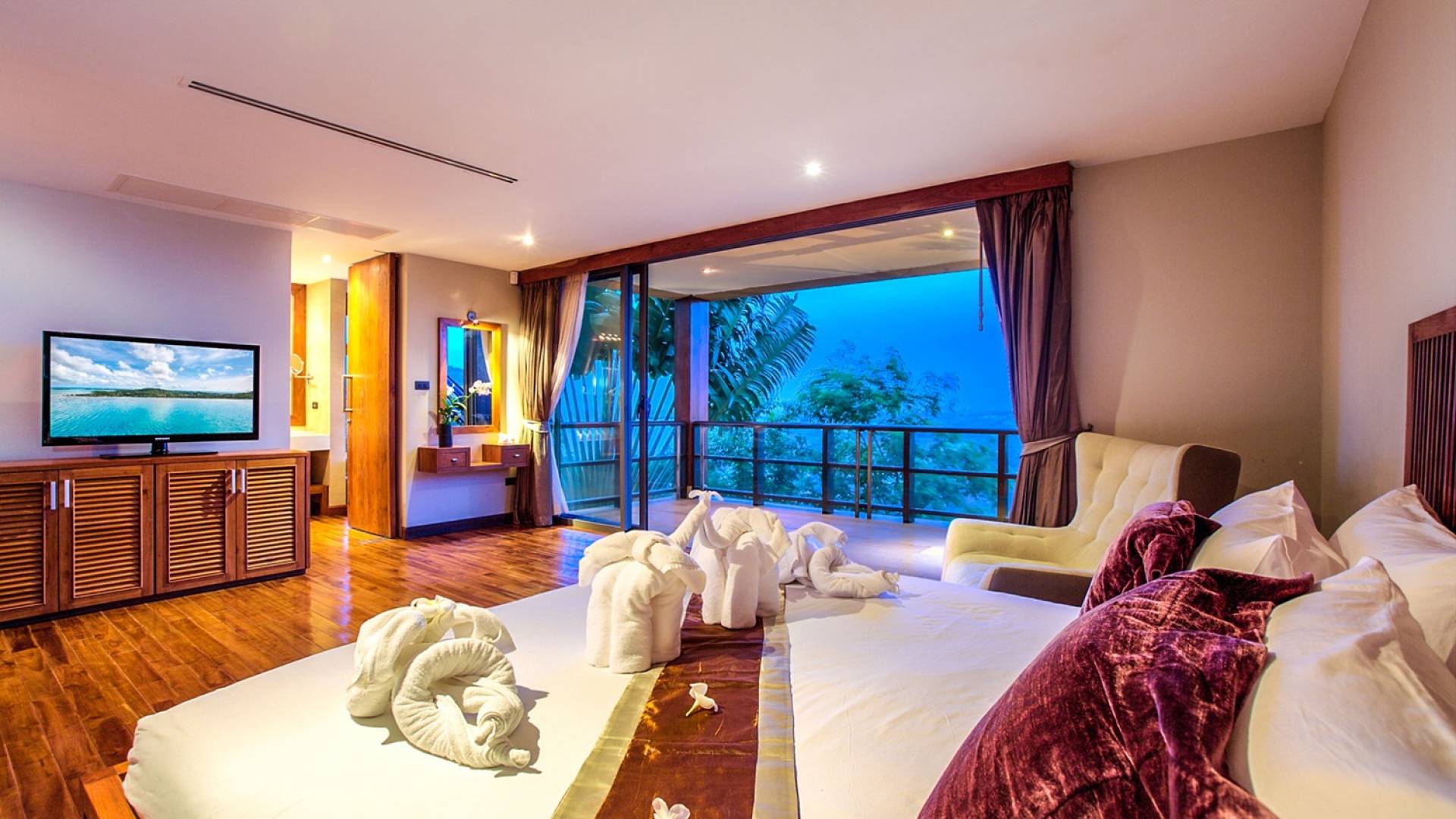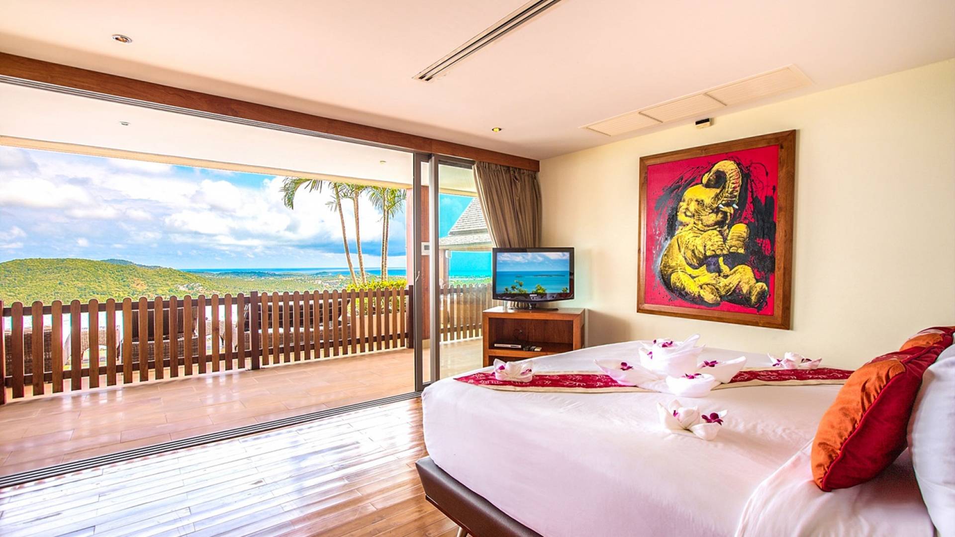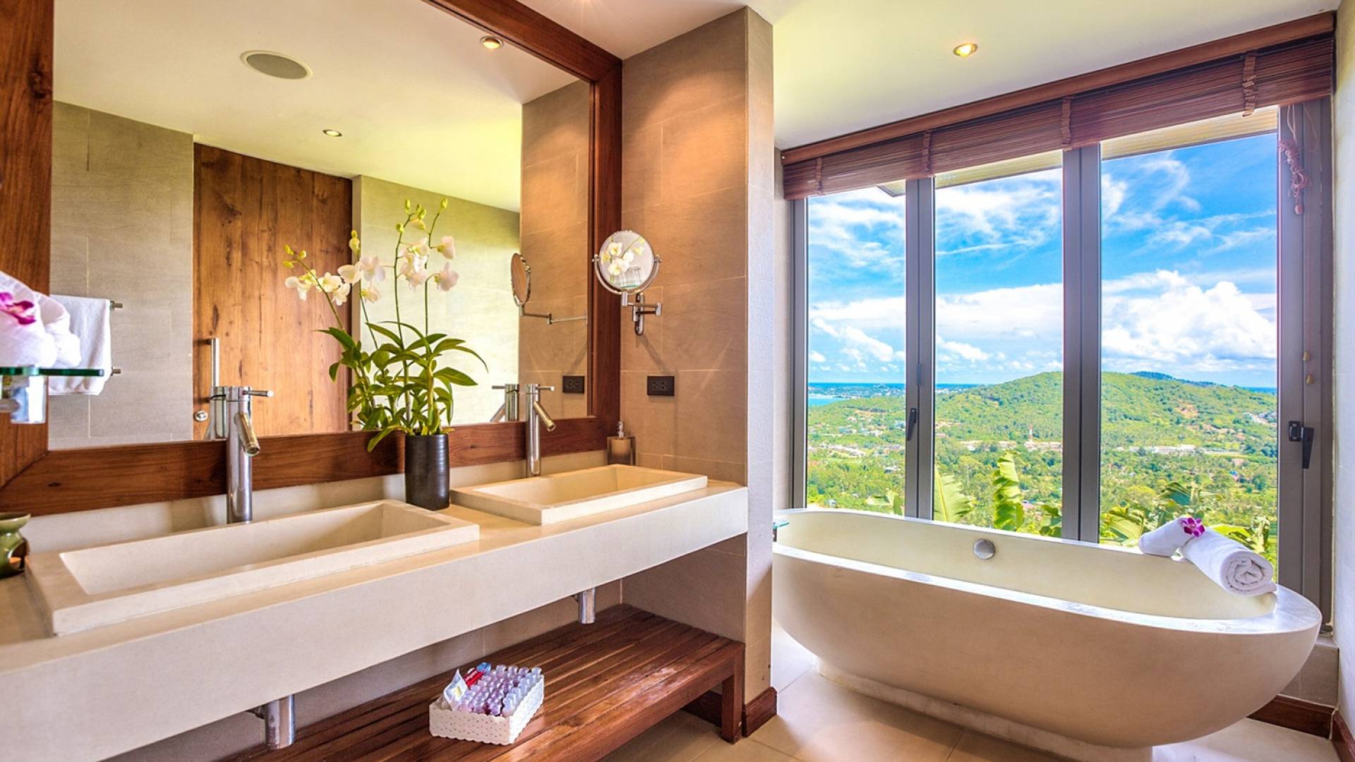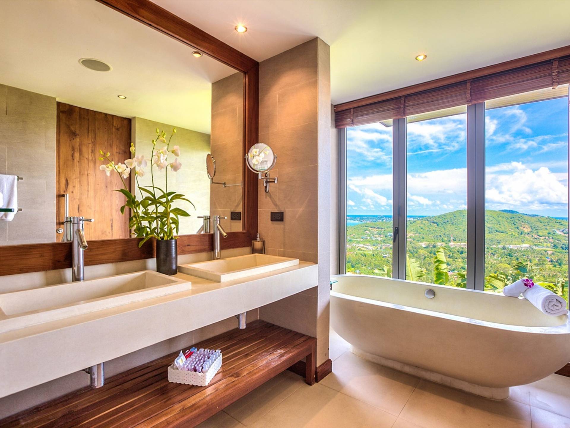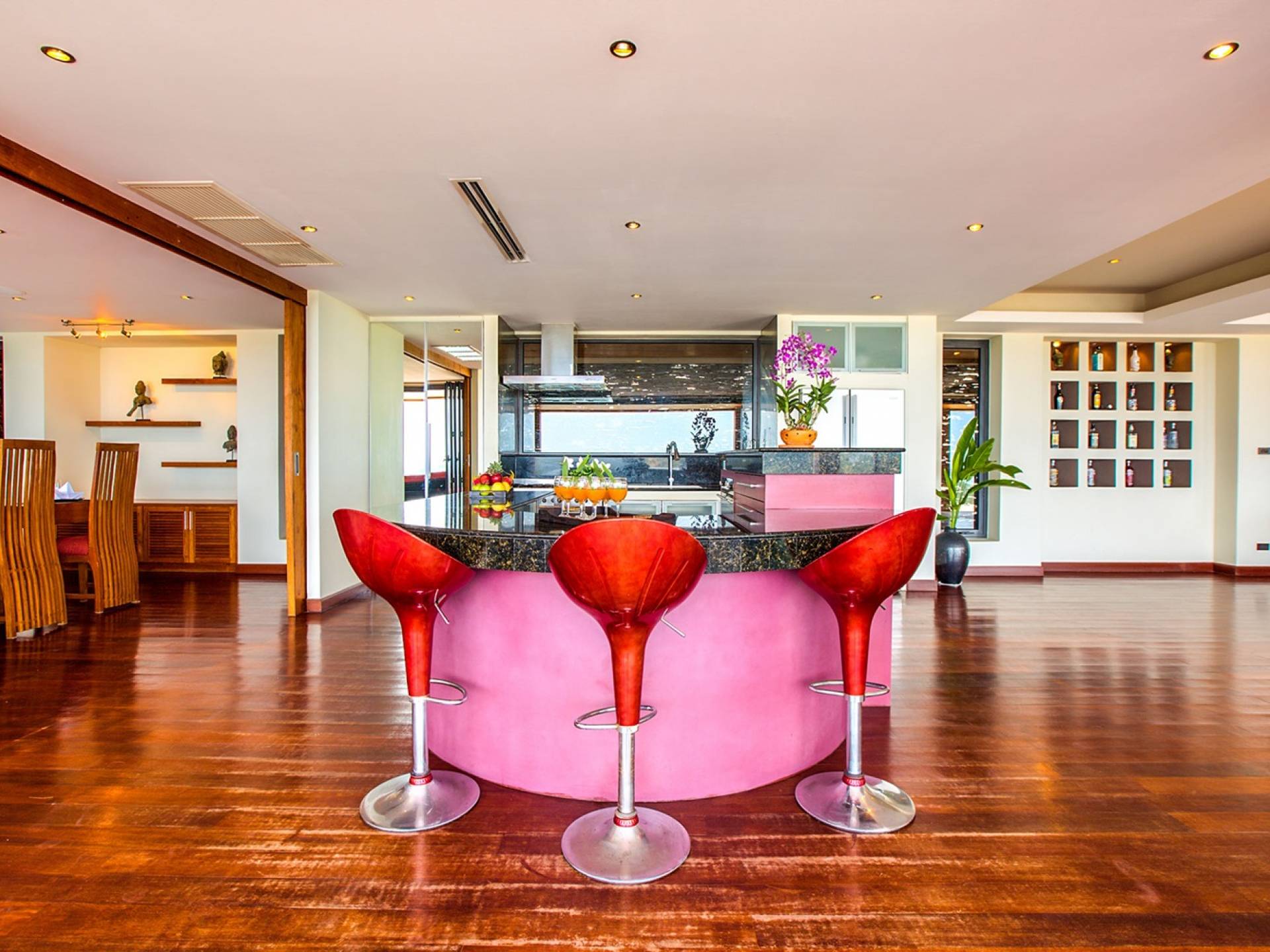 Villa Grand View Samui fue diseñada por un arquitecto galardonado con sede en Hong Kong para crear el estilo de vida ideal de planta abierta manteniendo un alto nivel de privacidad. Al estar ubicado en Bophut Hill y aislado del acceso público, los huéspedes tienen la oportunidad de relajarse y experimentar una relajación pura y sin molestias, lejos del ajetreo y el bullicio de las calles concurridas. Se puede ver una impresionante variedad de vida de jardín tropical floreciendo en toda la villa, que se complementa con cascadas y un jardín de cactus.