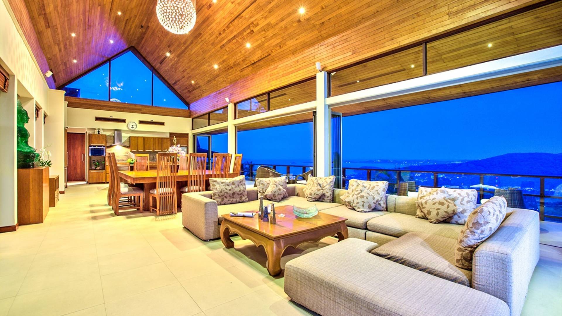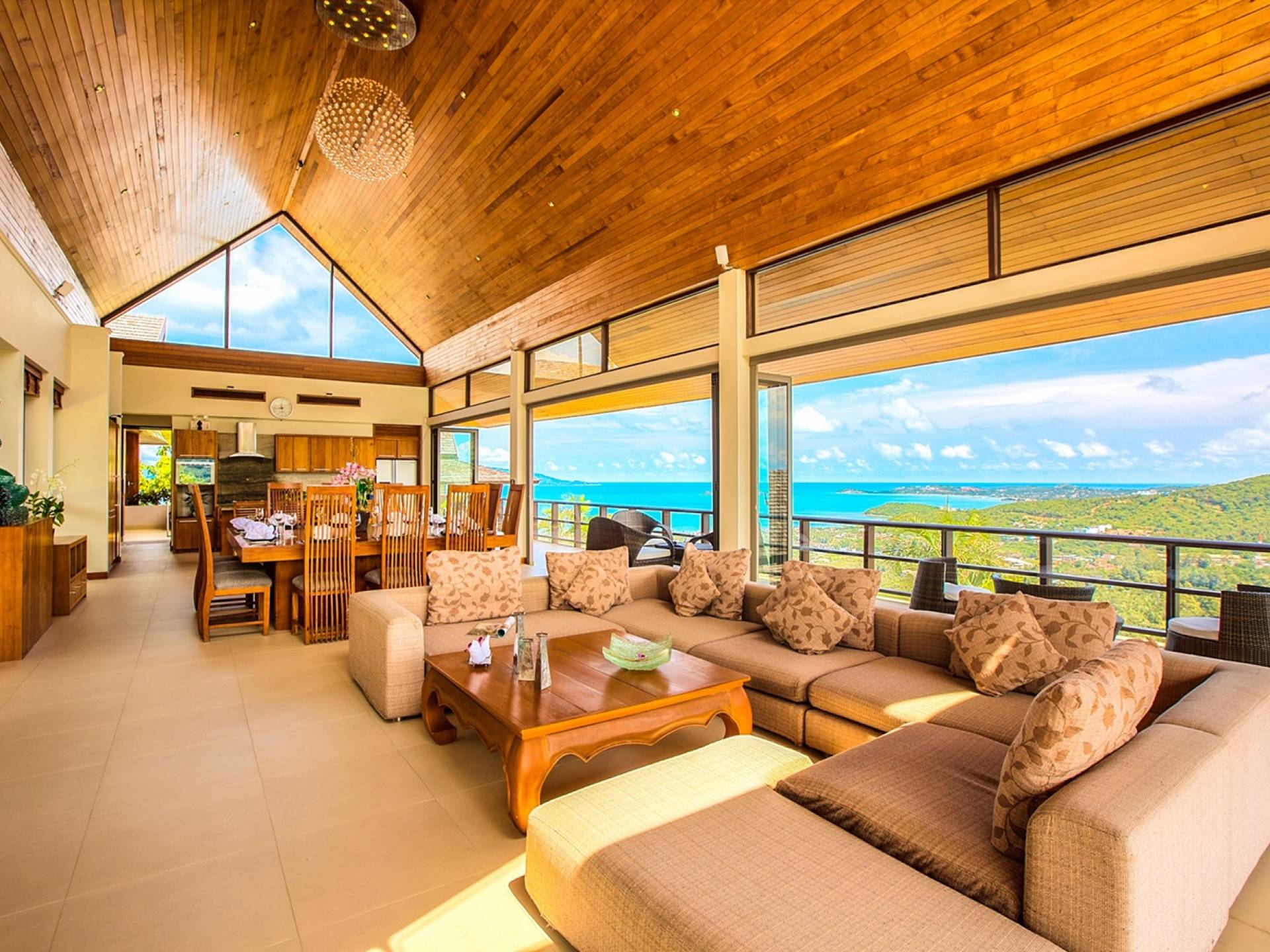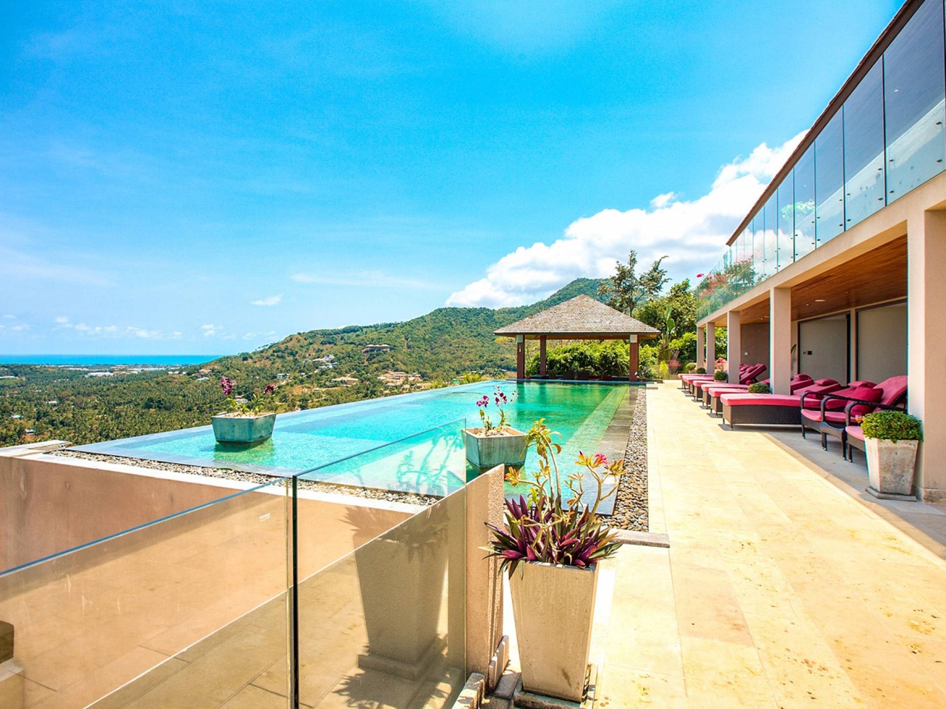 Villa Grand View Samui es una villa superior de 5 dormitorios en la cima de una montaña entre las pintorescas colinas de Bo Phut que ofrece un estilo de vida elegante con impresionantes vistas panorámicas al mar. Relájese en una terraza espaciosa y bellamente decorada o sumérjase en la piscina infinita de 16 metros rodeada de vistas desde la infestada vida floral de Koh Samui hasta las aguas cristalinas y las playas de arena blanca de Koh Phangan.