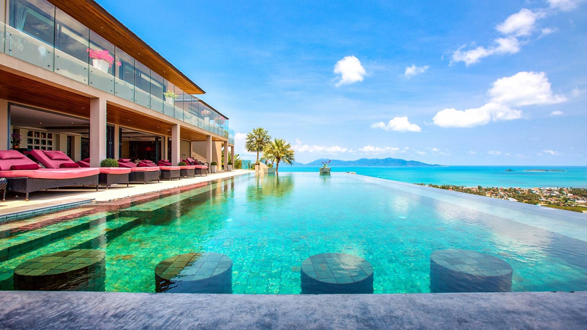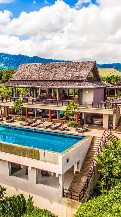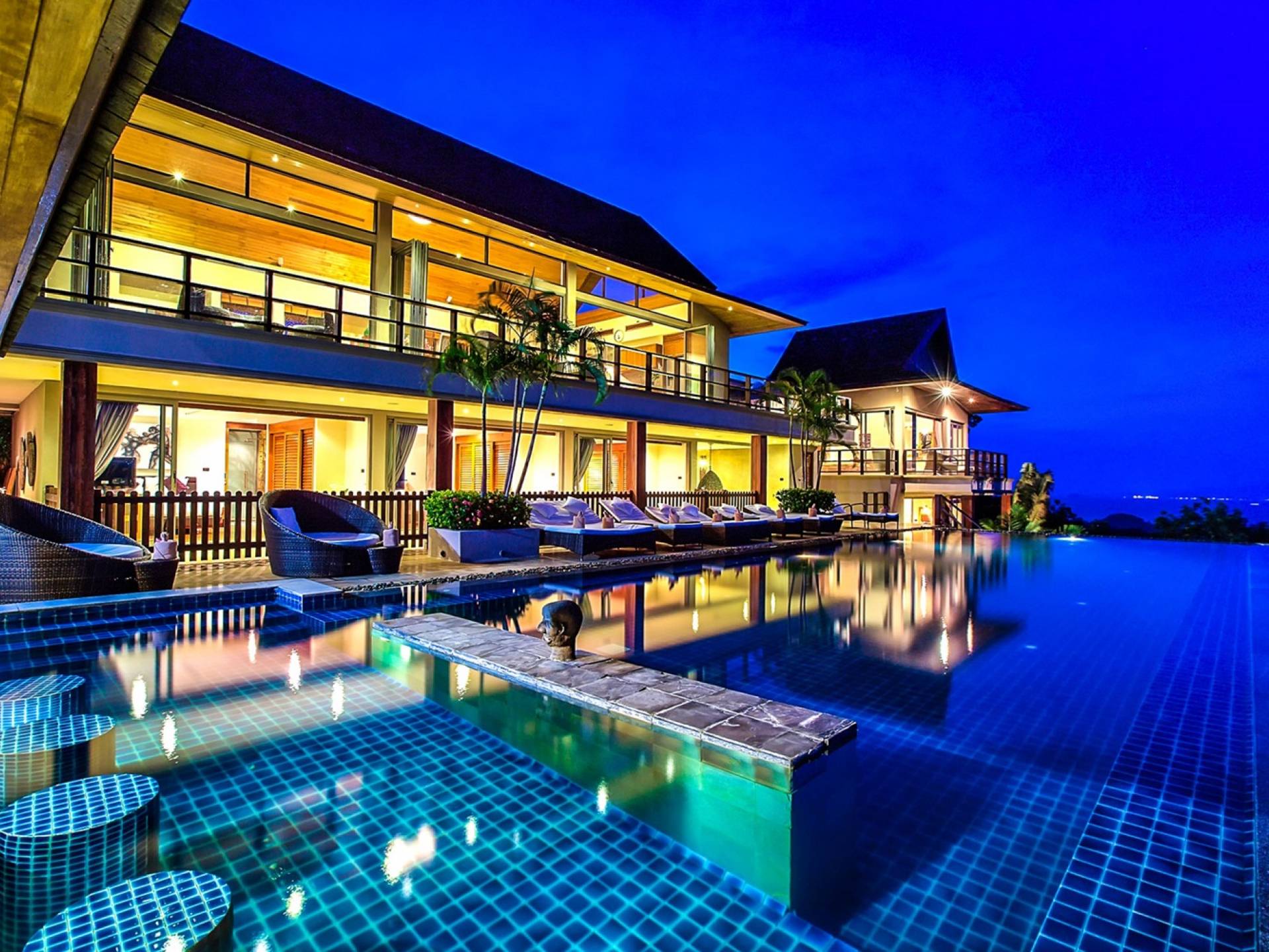 Grand Villas Samui son 2 villas de lujo en alquiler, cada una con 5 habitaciones y una piscina privada. Grand Villas Samui consta de Villa Grand Vista y Villa Grand View. Las villas están ubicadas en las colinas de Bo Phut y ofrecen impresionantes vistas al mar.