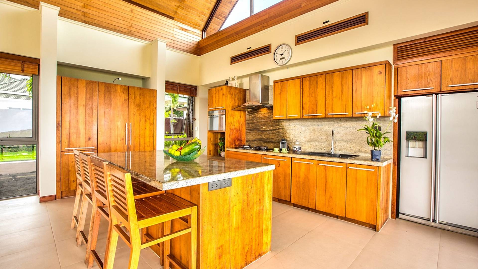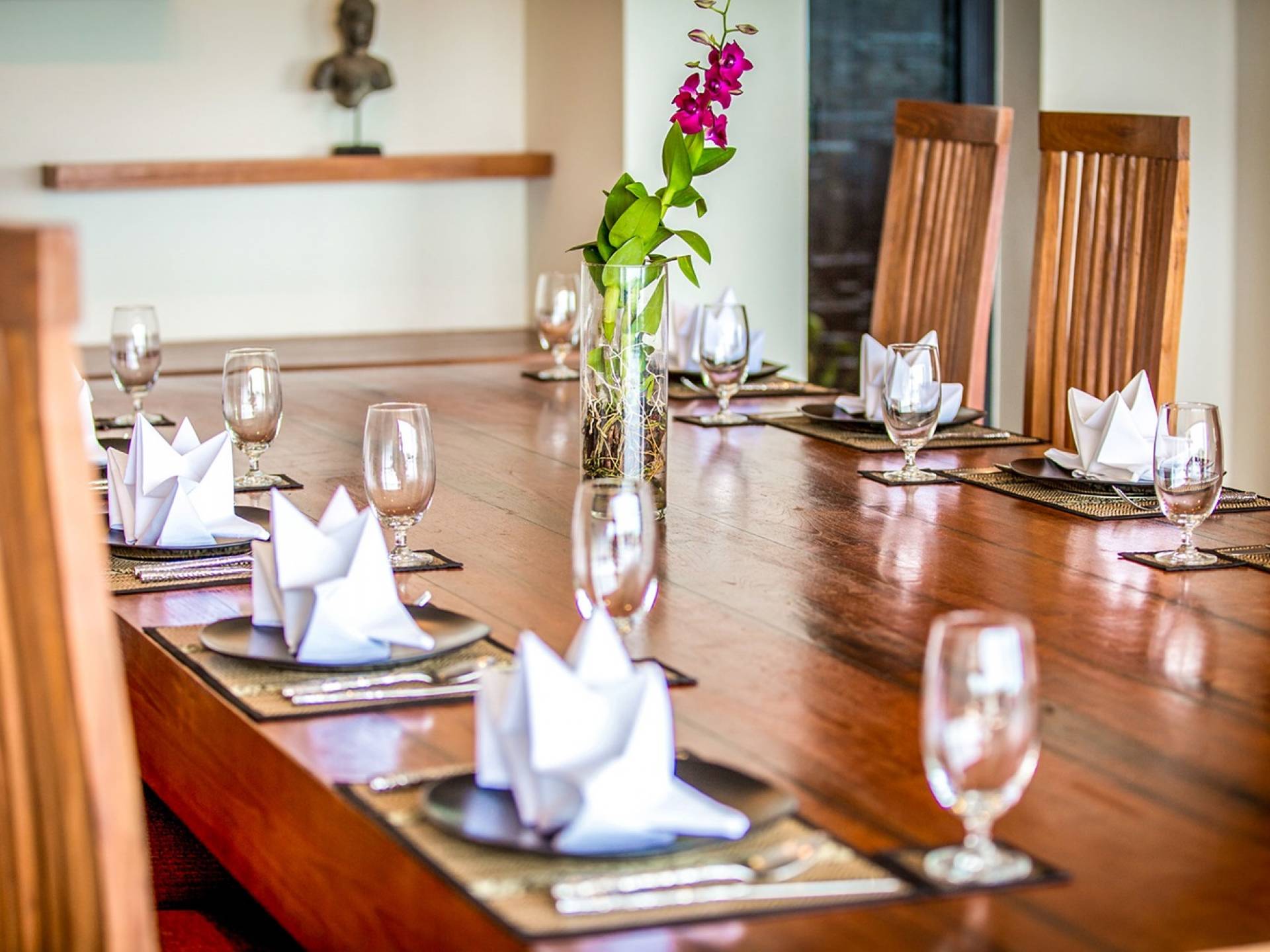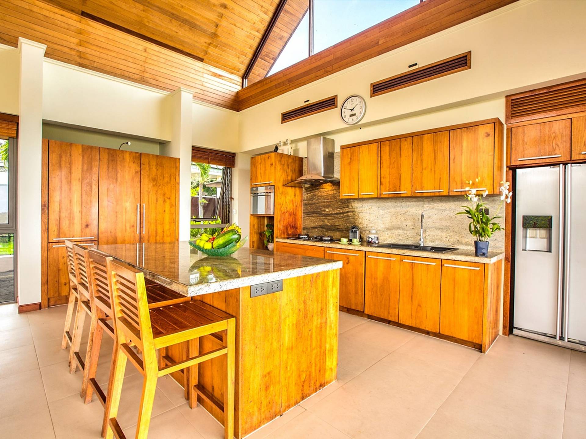 Para aquellos que buscan entretenerse, Villa Grand Vista Samui tiene una gran área de cocina equipada con todos los electrodomésticos necesarios, como enfriador de vinos, placas de cocción, encimeras de granito, horno y fregadero de dos senos. En el gran comedor, hay una hermosa mesa de comedor grande de teca y la habitación está marcada por una impresionante lámpara de araña de cristal como pieza central.