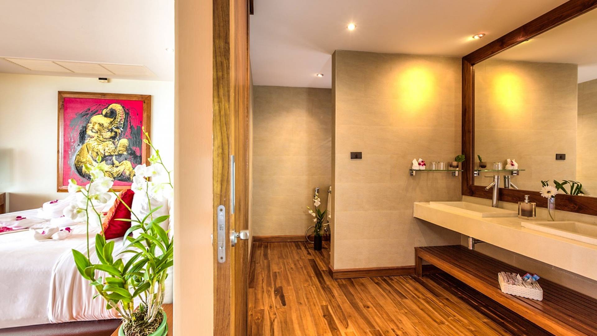 Las 5 habitaciones han sido equipadas con lujosas camas tamaño king, aire acondicionado, caja fuerte, mini refrigeradores y acabados con elegantes adornos y obras de arte tailandeses. Todas las impresionantes suites cuentan con duchas de lluvia de flujo libre y bañeras de terrazo y accesorios de acero inoxidable pulido.