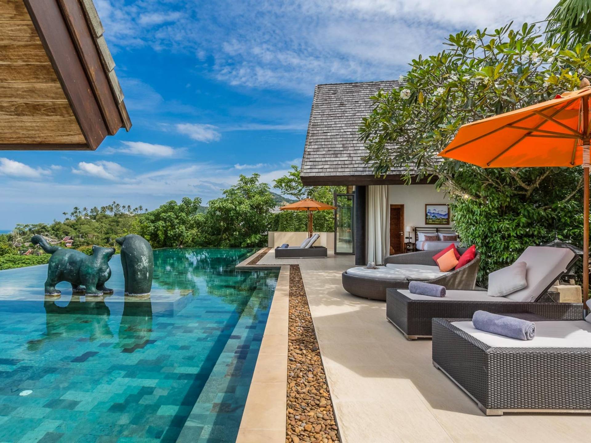 Purana Residence at Panacea Retreat Samui es una villa de lujo en alquiler con 4 dormitorios y piscina privada. Utilizando su punto de vista divino, Purana Residence captura impresionantes vistas del océano desde su posición panorámica dentro del prestigioso Panacea Retreat en la popular costa norte de Samui. La residencia está perfectamente diseñada para acomodar hasta 8 personas, una excelente opción para familias y grupos de amigos que buscan unas vacaciones de lujo y privadas llenas de momentos relajantes.