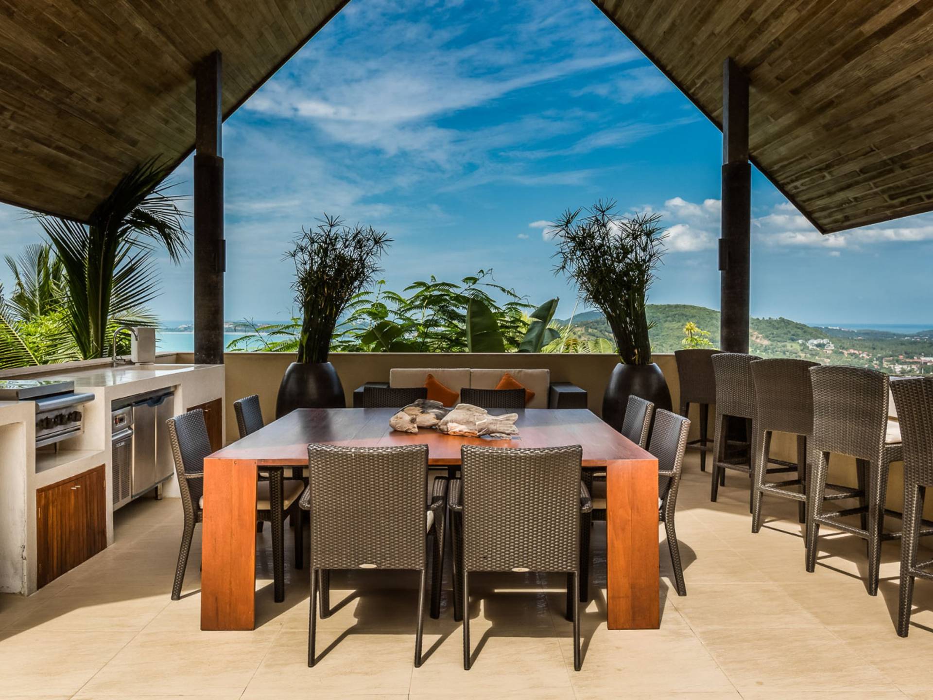 La elegancia contemporánea de la villa de lujo viene impregnada de la deslumbrante fragancia de la naturaleza prístina que la rodea. Una combinación de montañas majestuosas, colinas de cocoteros y aguas del océano azul profundo es lo que hace que este alojamiento de lujo sea extraordinariamente hermoso. Purana Residence, que forma parte del impresionante Panacea Retreat en la popular costa norte de Samui, se encuentra en lo alto de una ladera boscosa con amplias vistas hasta impresionantes tramos de la playa de arena suave. Purana significa "historias" en sánscrito antiguo, y tan pronto como se acerque a esta formidable villa de vacaciones en alquiler, comienza una historia de intriga y lujo. Al ingresar al complejo, prevalece una sensación de exclusividad y opulencia con paredes externas de piedra natural que agregan privacidad absoluta al entorno, mientras que los jardines tropicales cuidadosamente cuidados mejoran el entorno de vida en general.