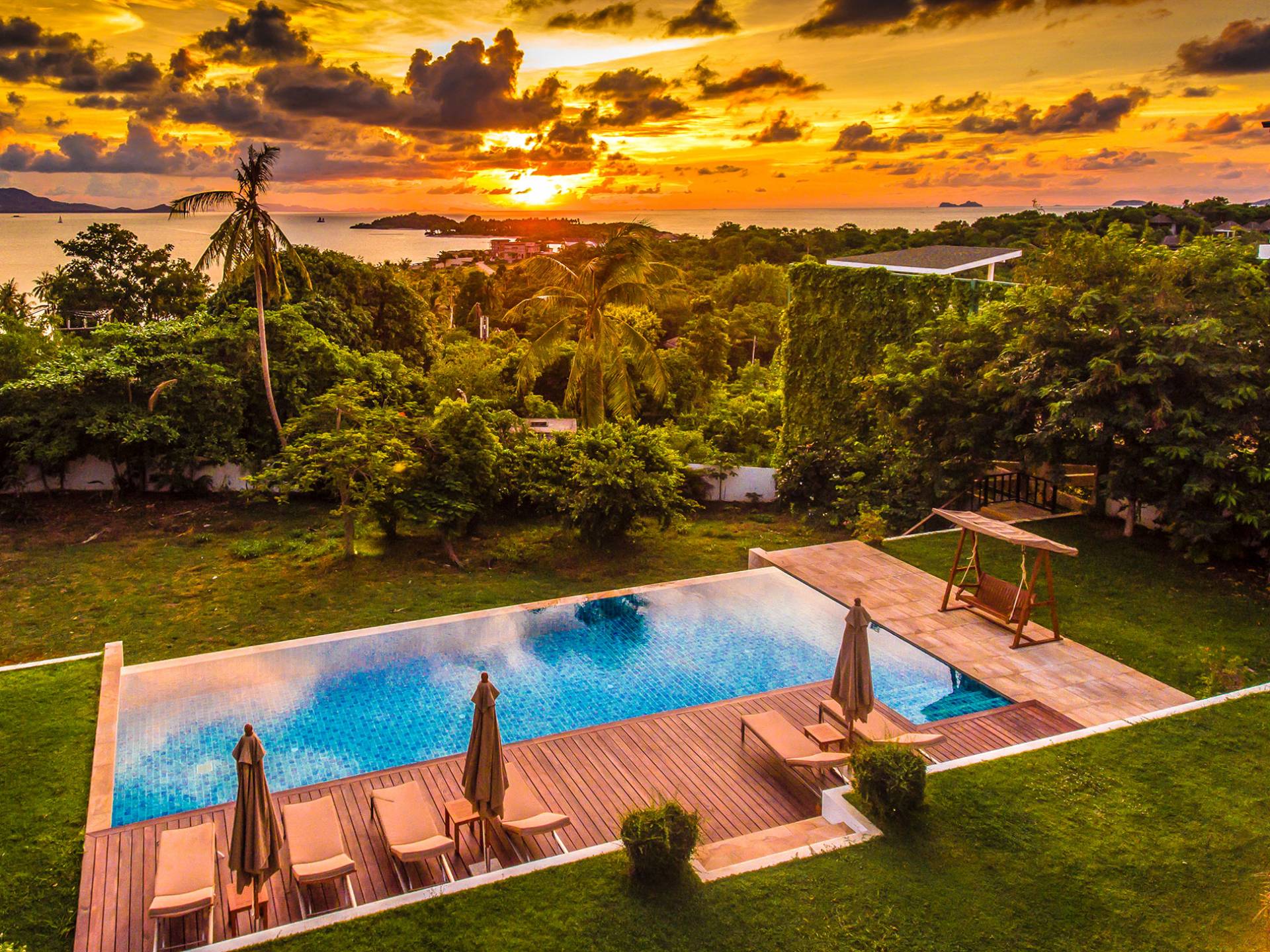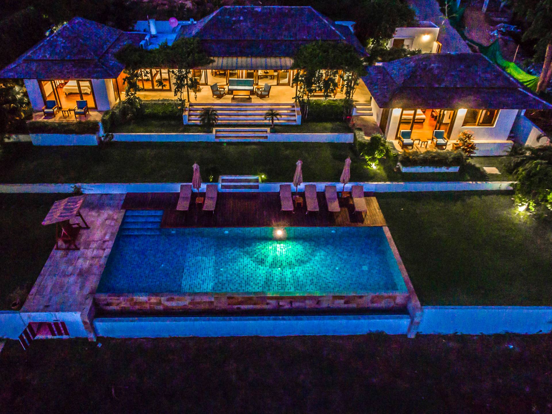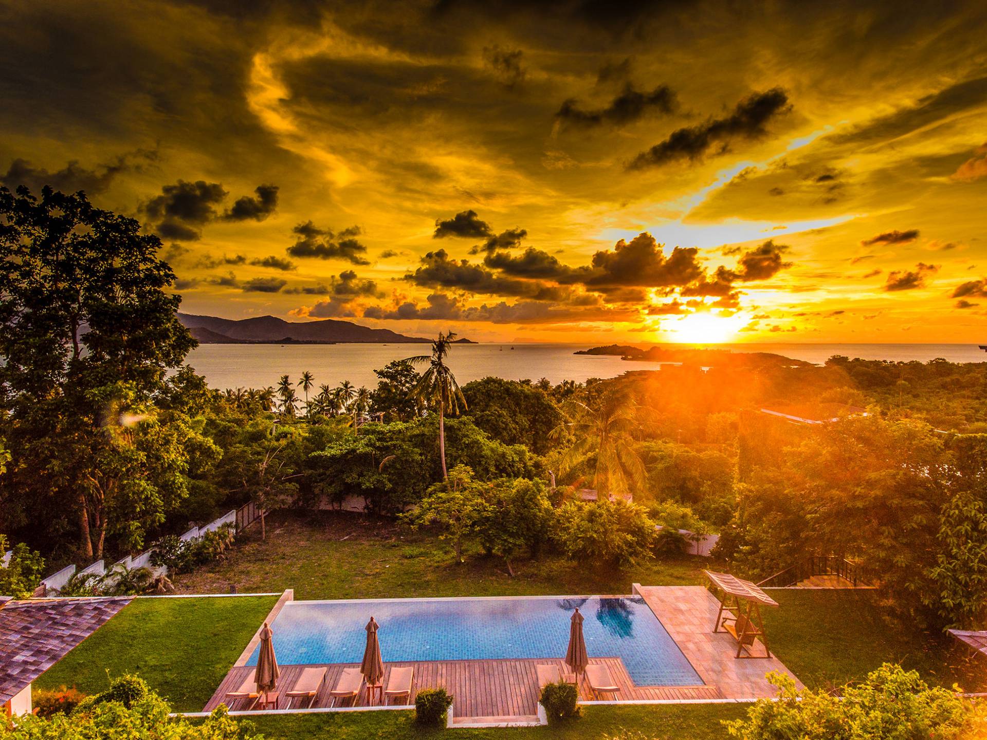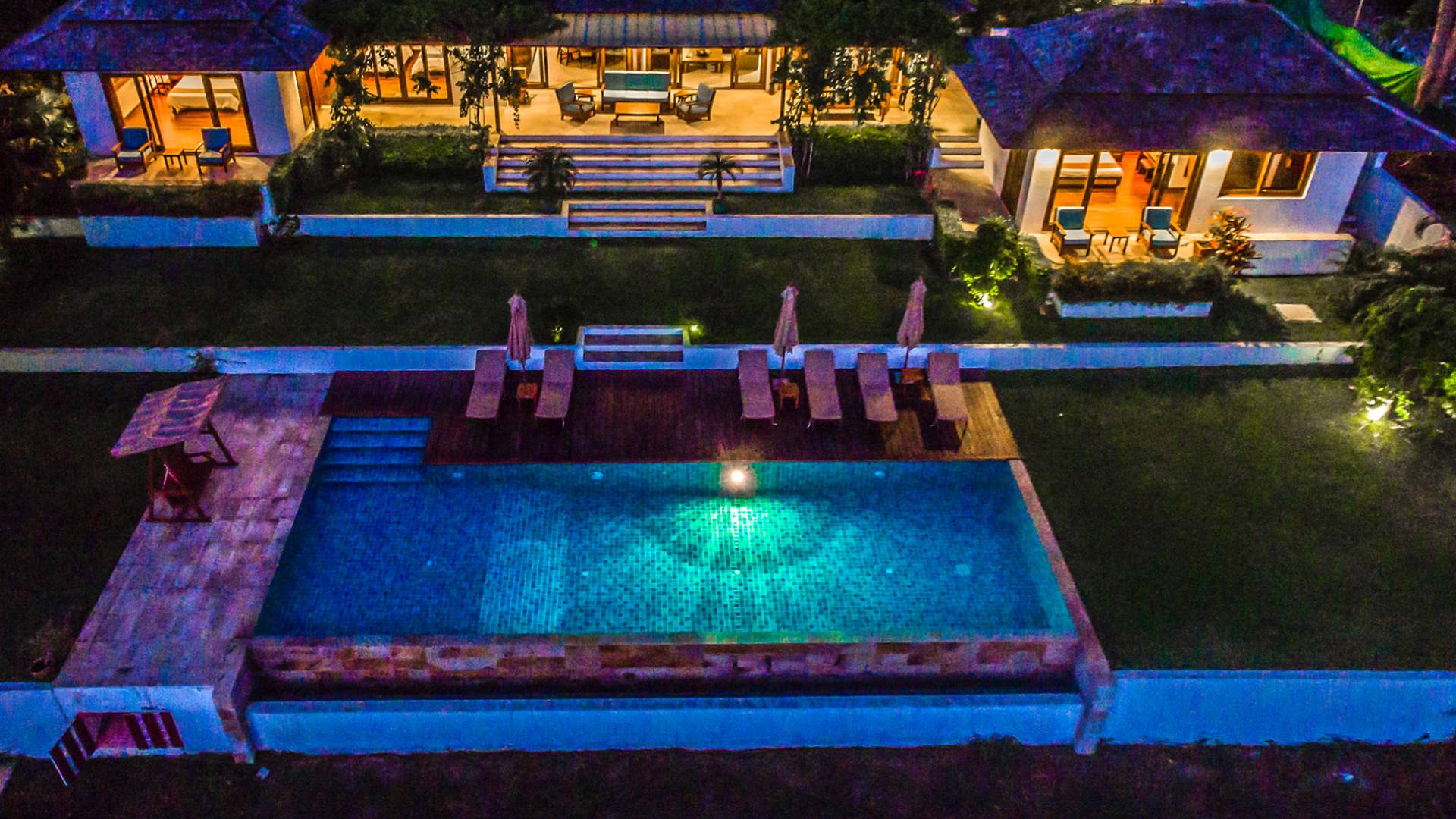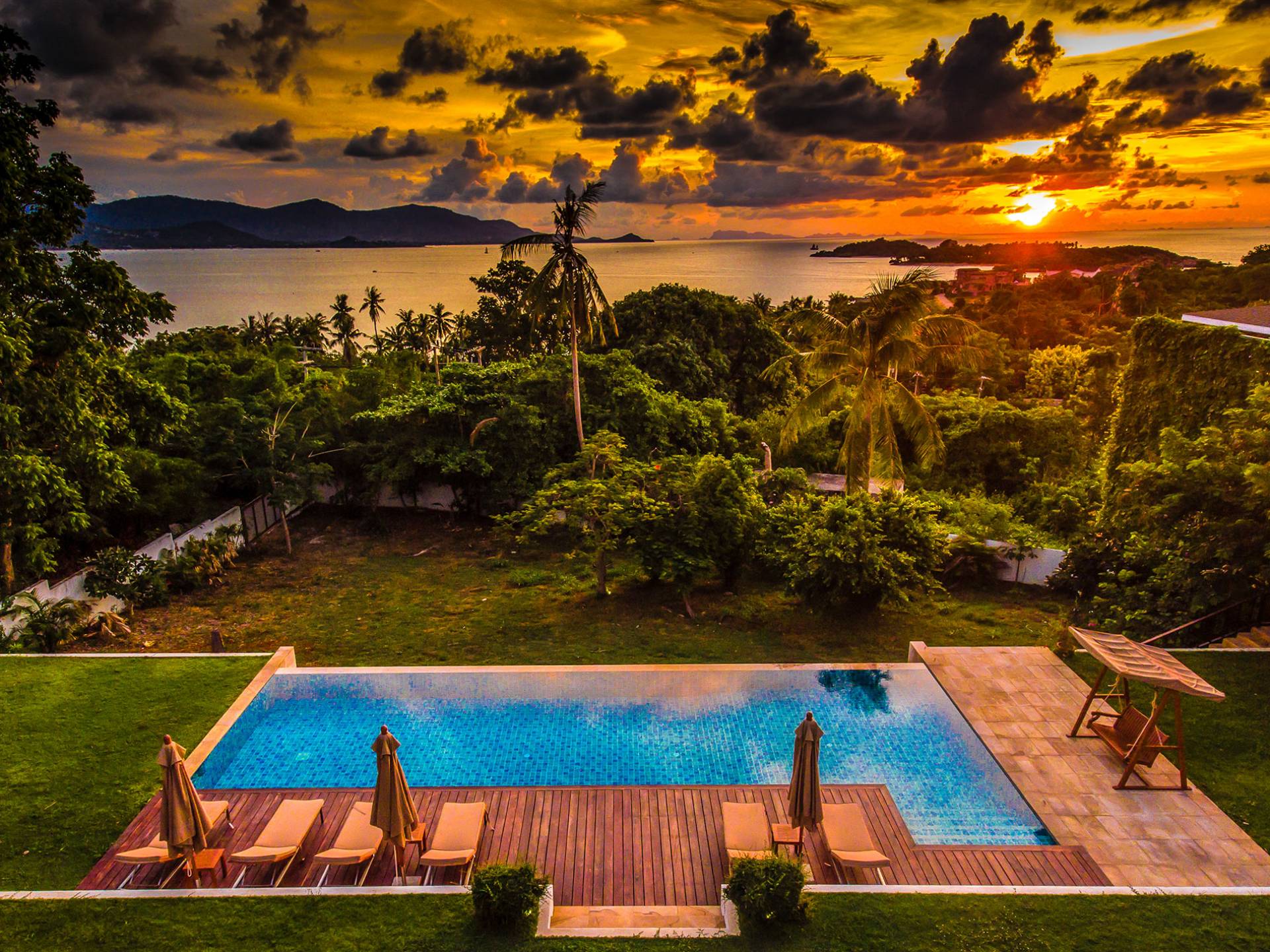 Con muebles de exterior de teca de alta calidad, terrazas abiertas, una enorme piscina de 15 metros rodeada por un gran jardín, Baan Apsara le ofrece unas vacaciones exclusivas, relajantes y mágicas con fantásticas vistas sobre el Golfo de Tailandia y los alrededores. isla de Koh Phangan.