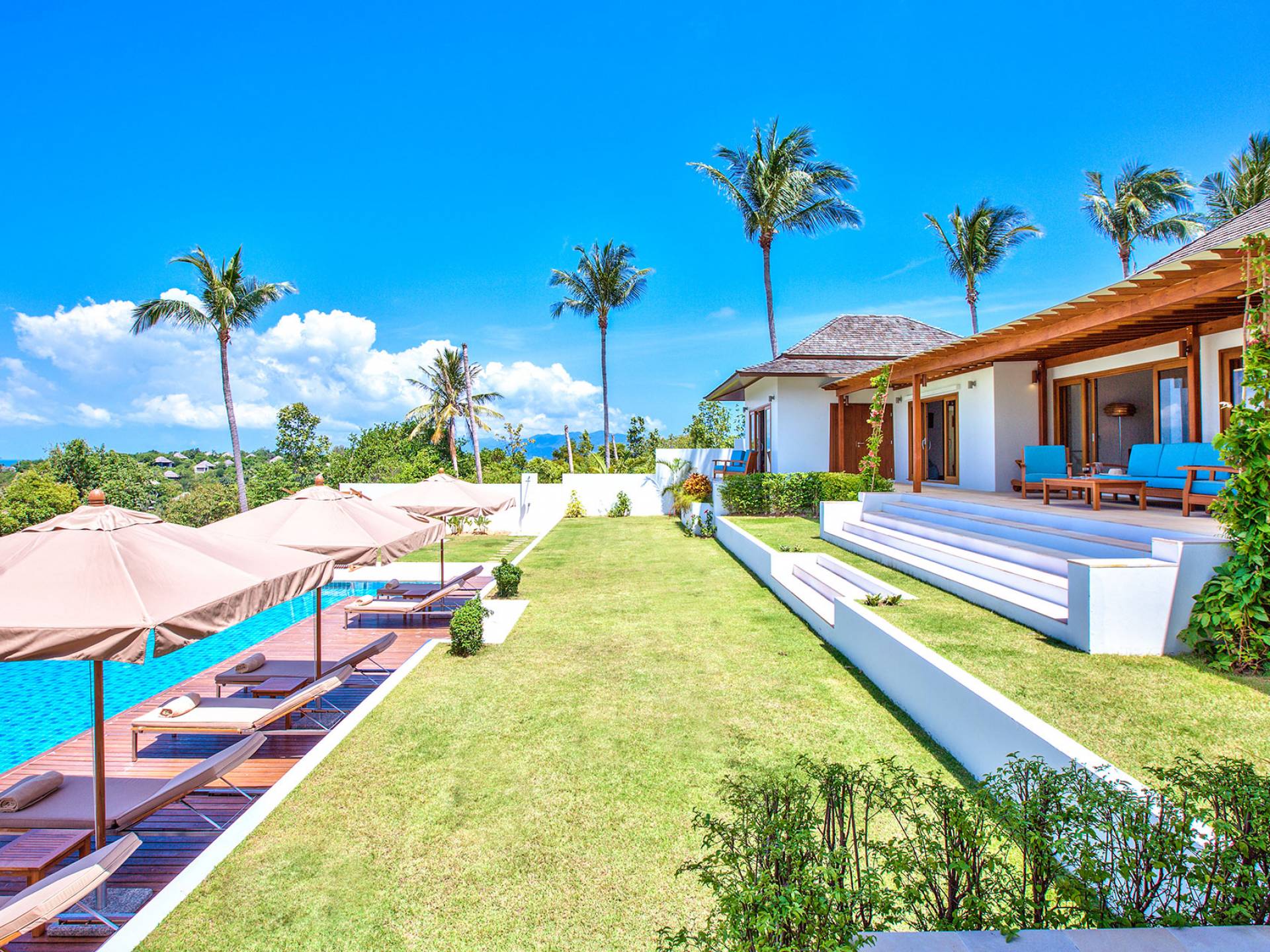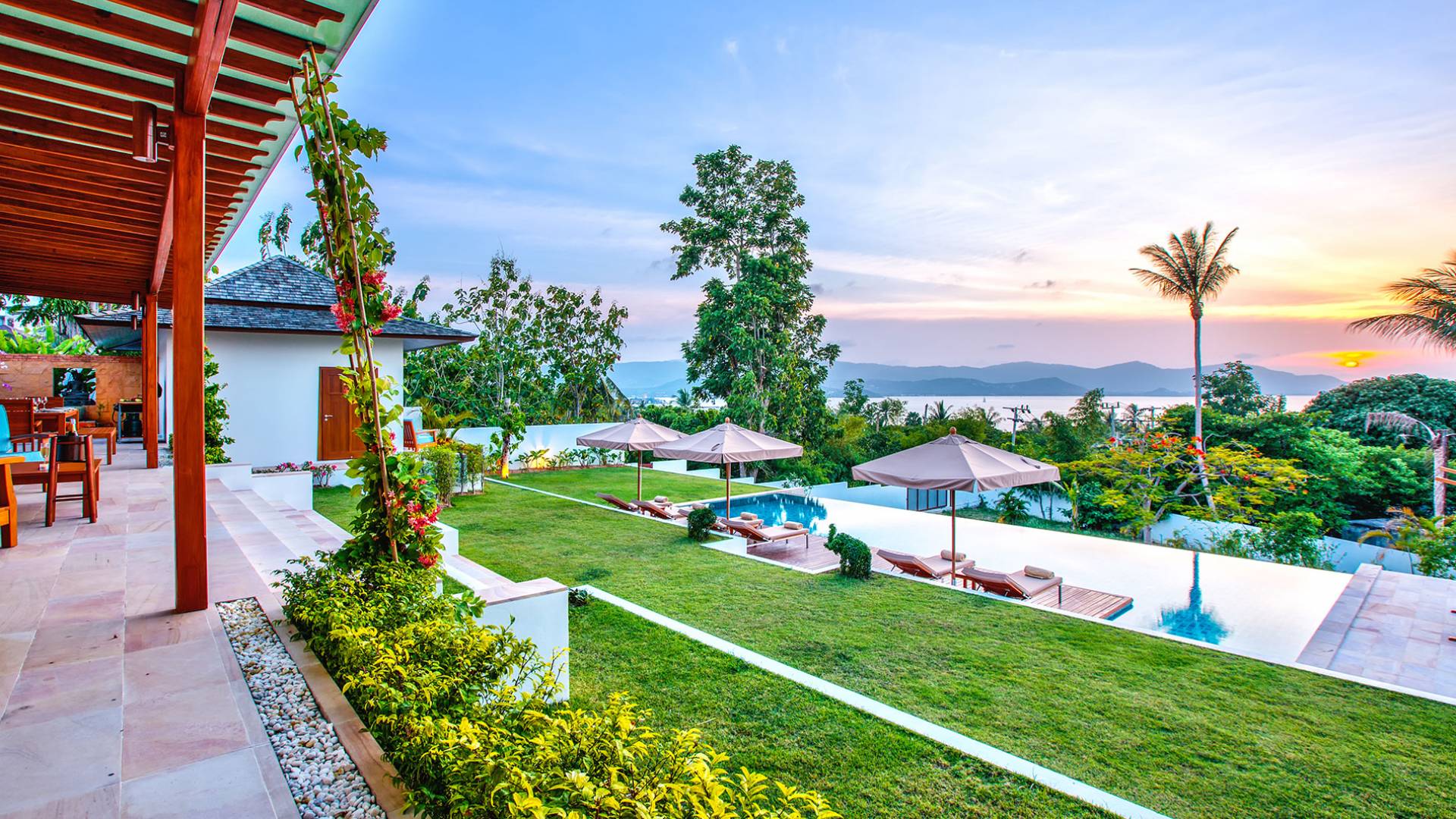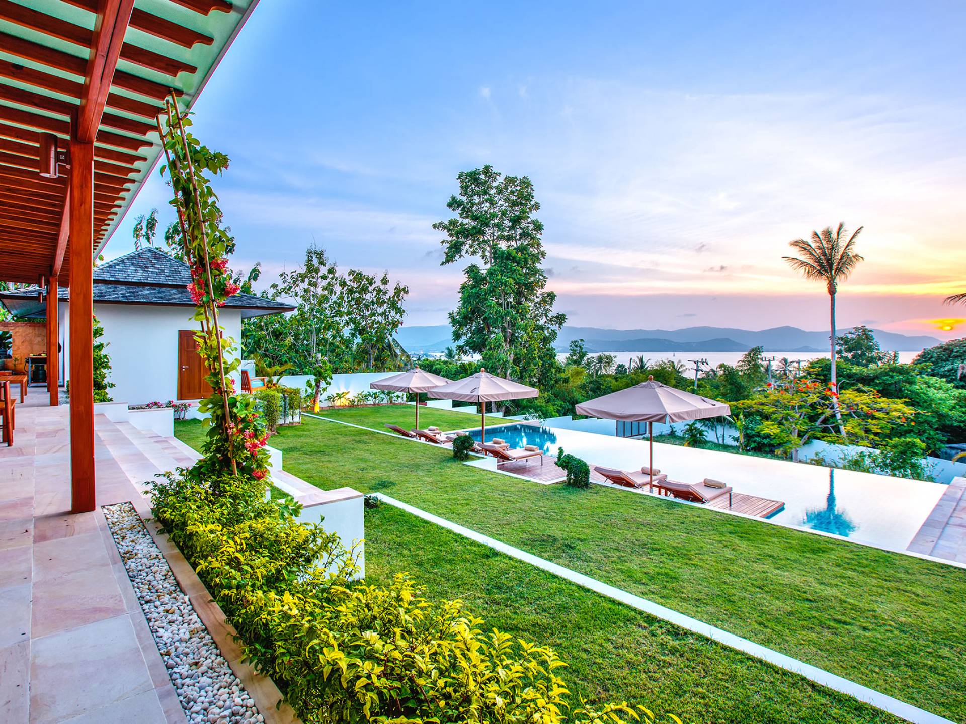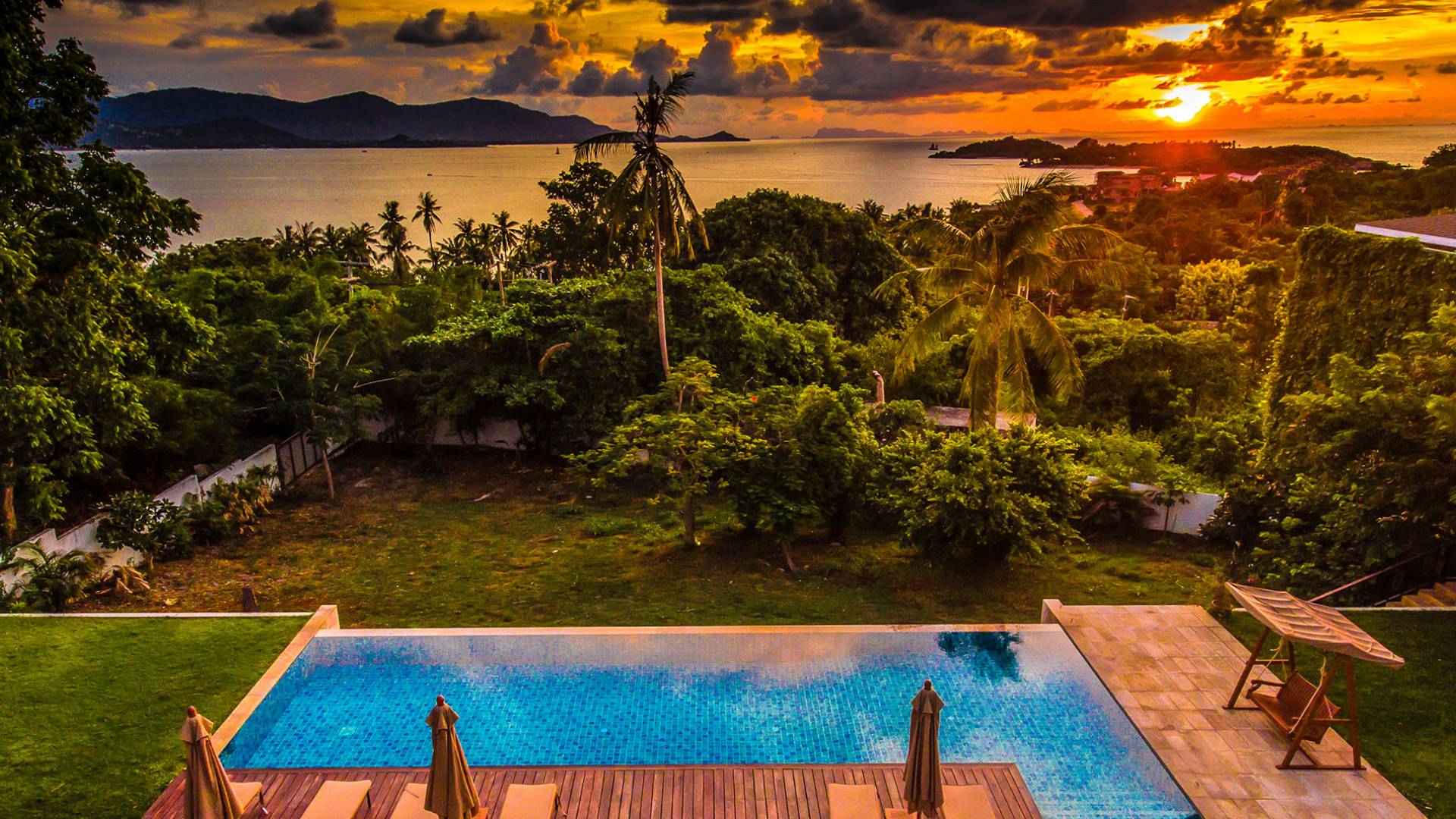 Con muebles de exterior de teca de alta calidad, terrazas abiertas, una enorme piscina de 15 metros rodeada por un gran jardín, Baan Apsara le ofrece unas vacaciones exclusivas, relajantes y mágicas con fantásticas vistas sobre el Golfo de Tailandia y los alrededores. isla de Koh Phangan.