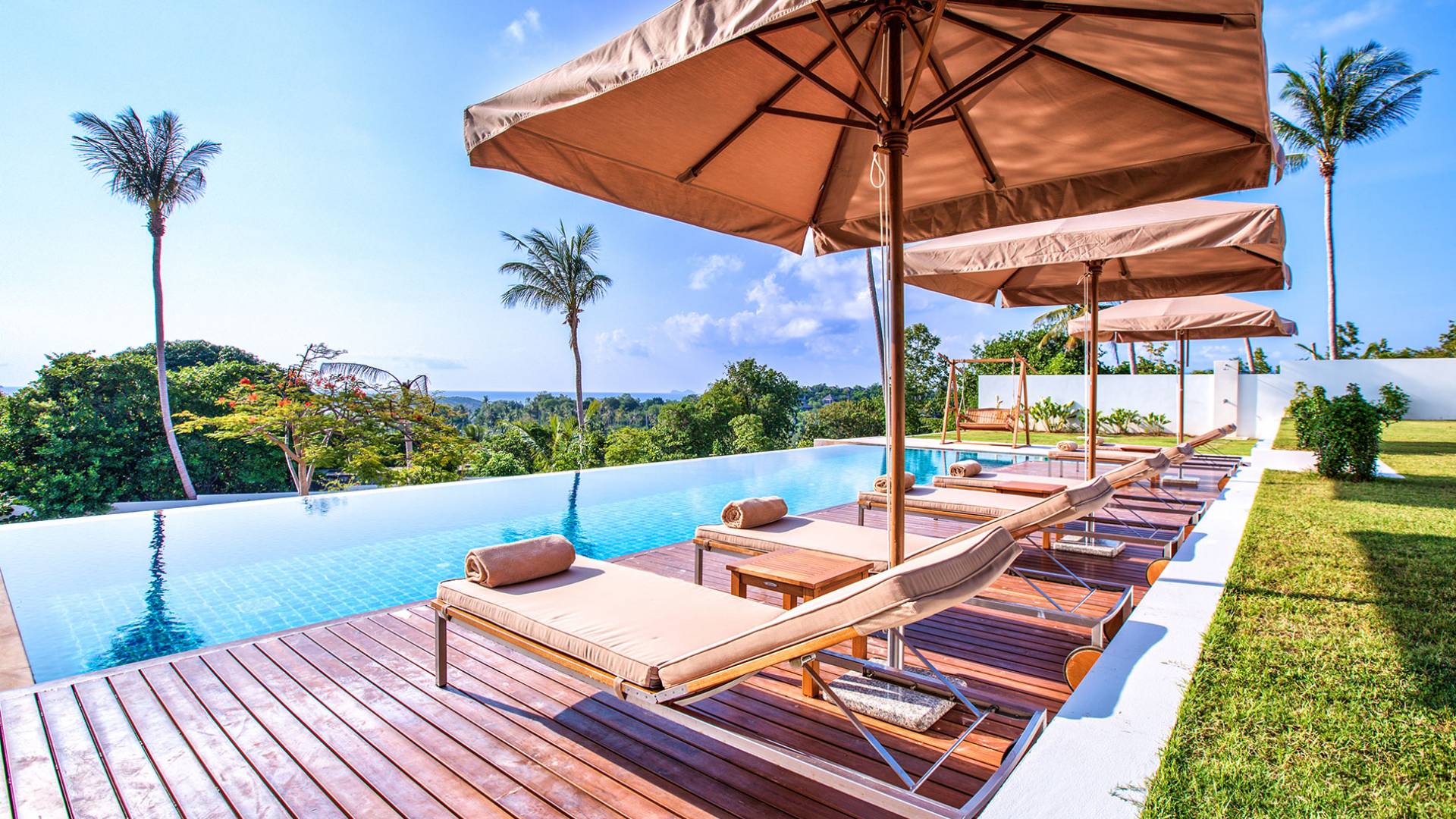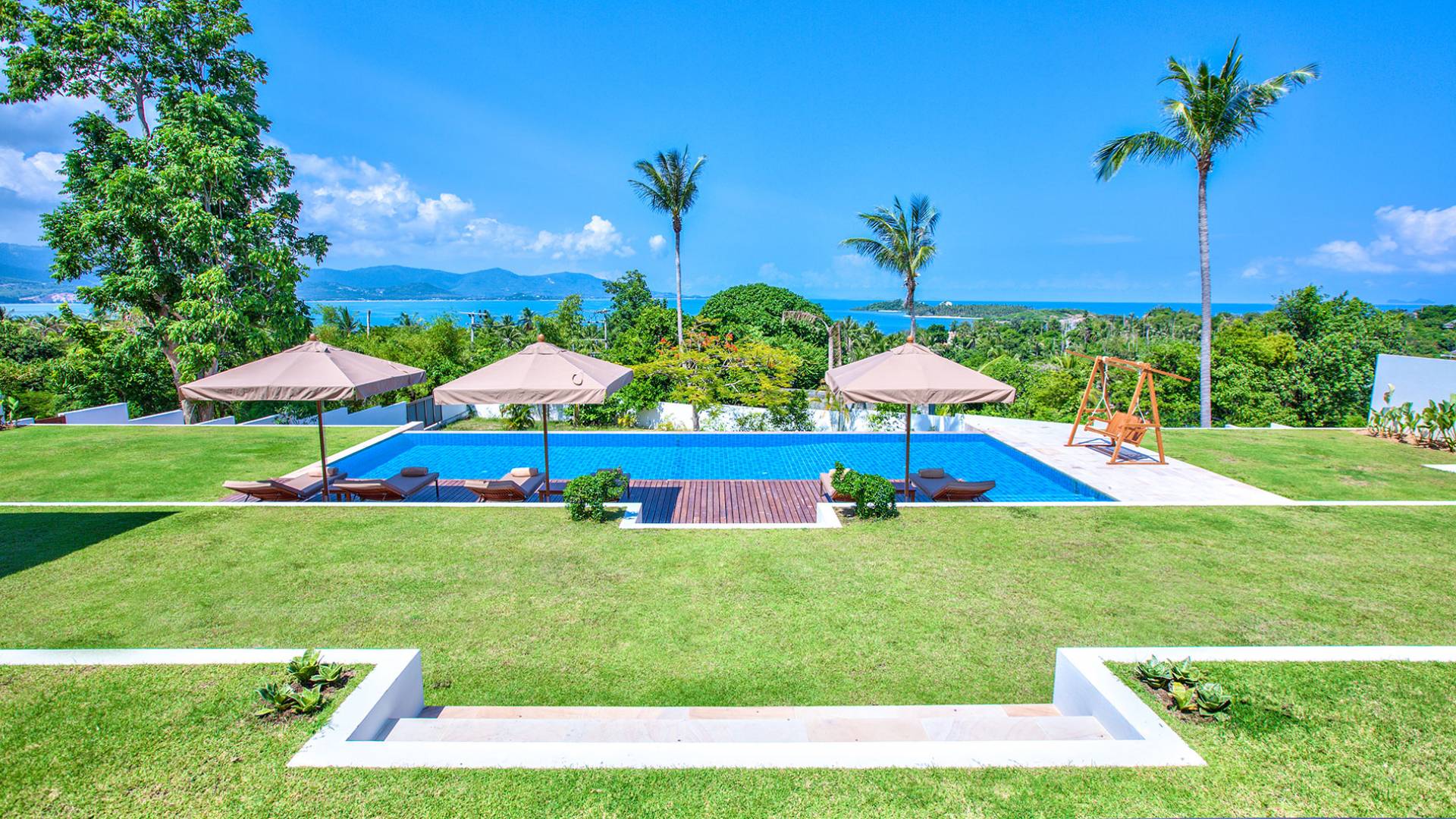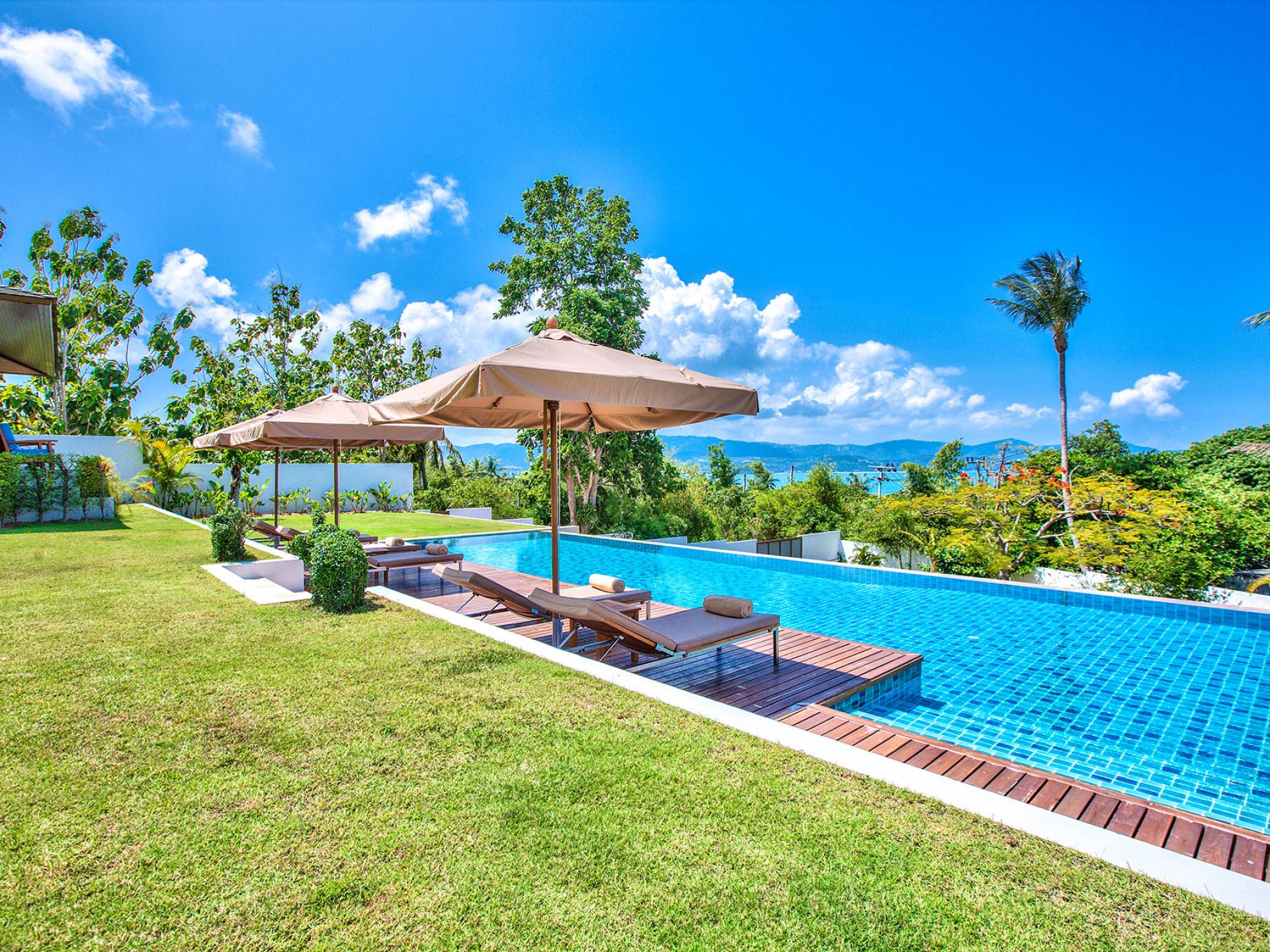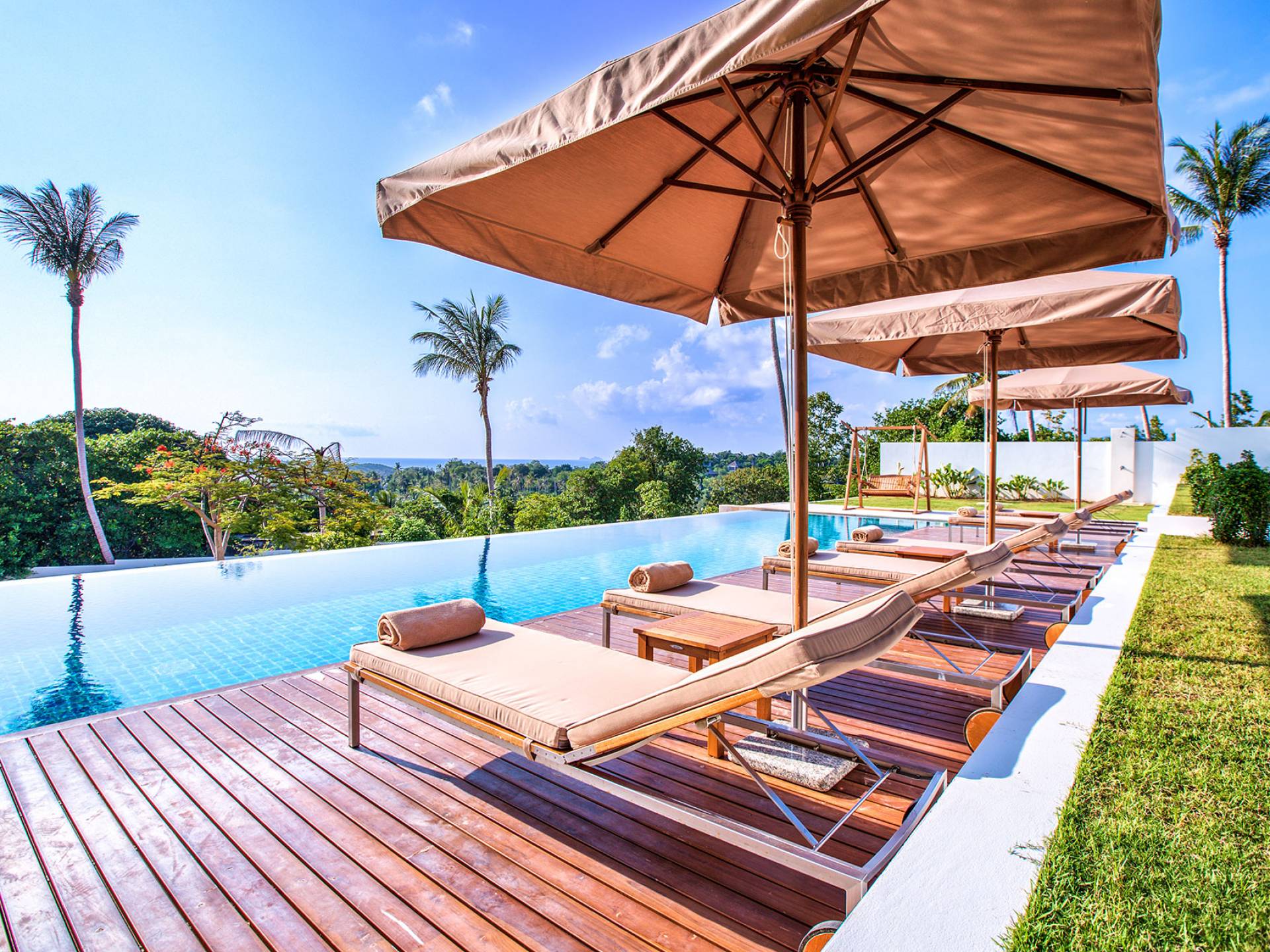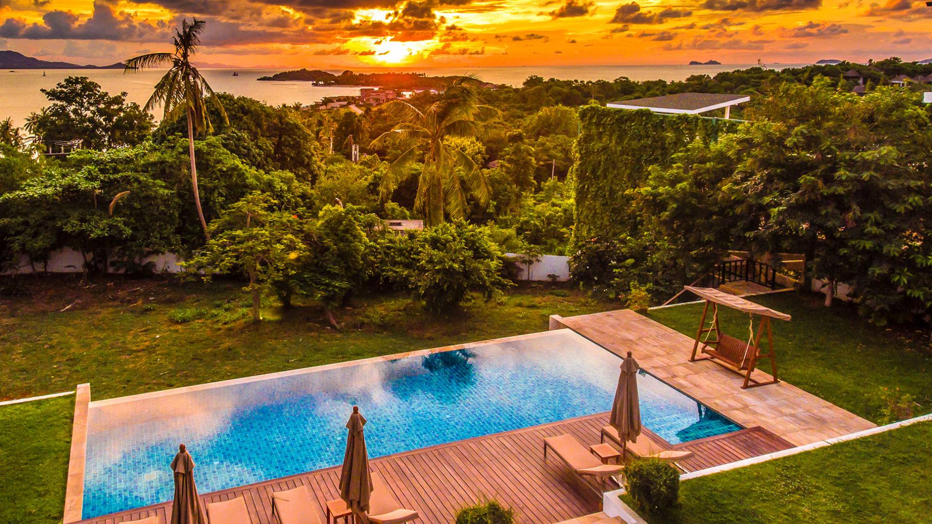 Con muebles de exterior de teca de alta calidad, terrazas abiertas, una enorme piscina de 15 metros rodeada por un gran jardín, Baan Apsara le ofrece unas vacaciones exclusivas, relajantes y mágicas con fantásticas vistas sobre el Golfo de Tailandia y los alrededores. isla de Koh Phangan.