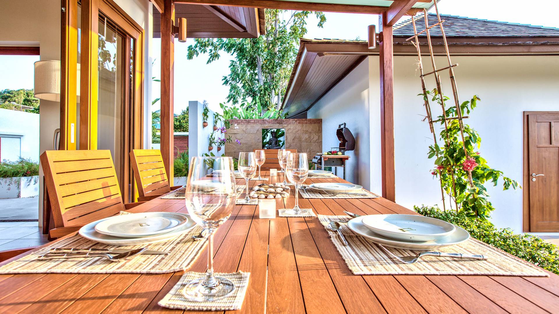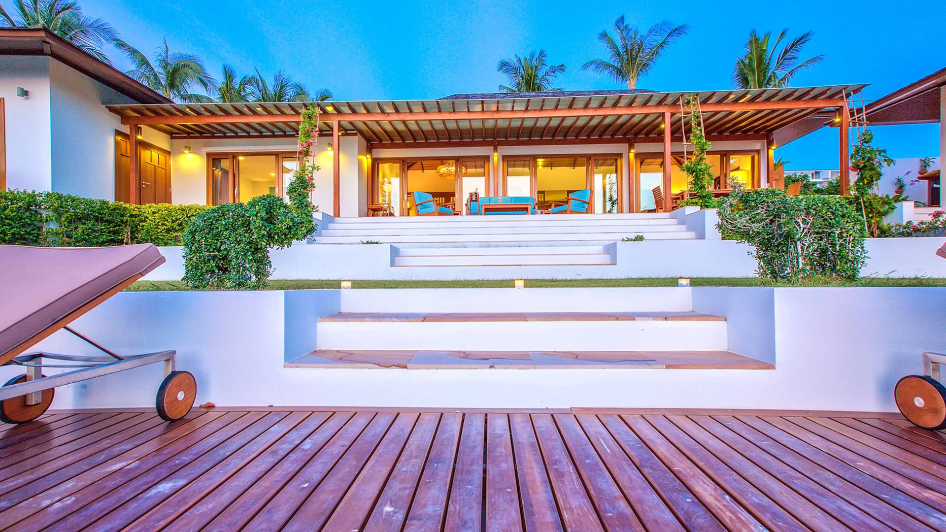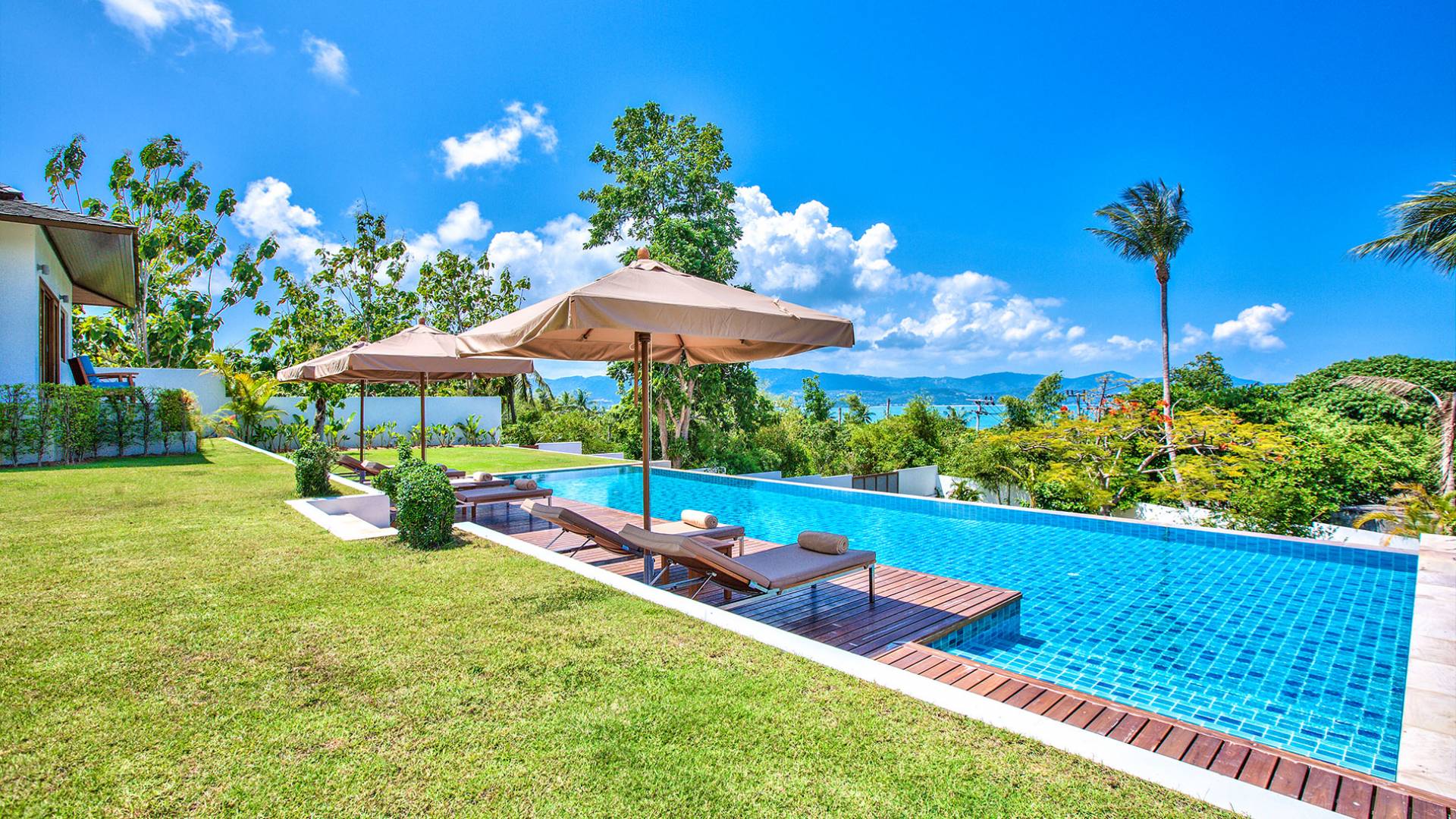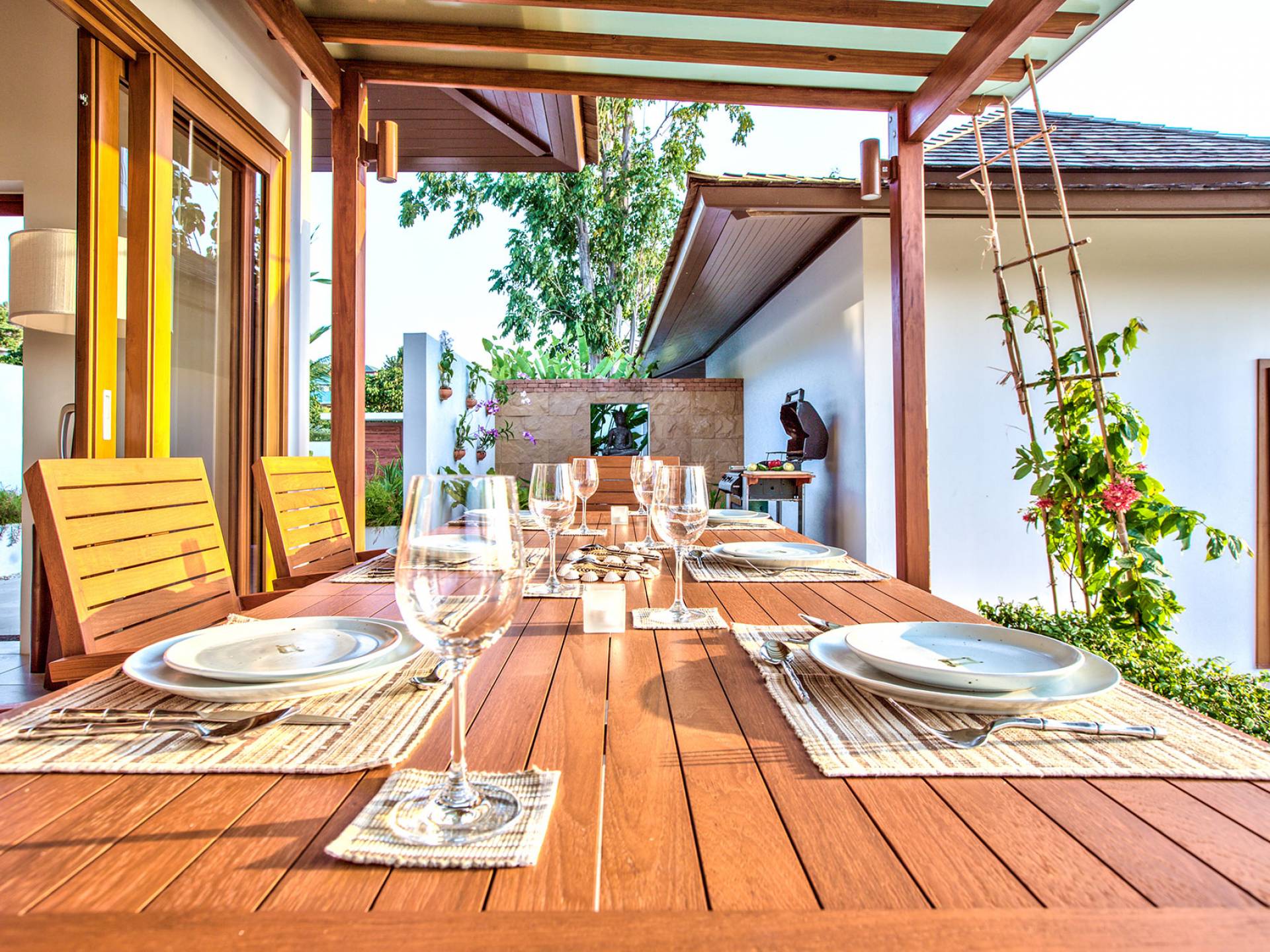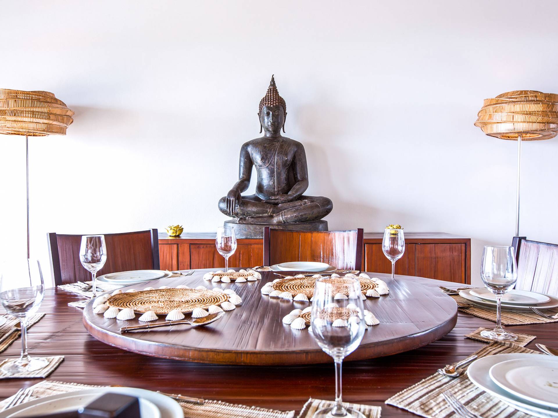 Con muebles de exterior de teca de alta calidad, terrazas abiertas, una enorme piscina de 15 metros rodeada por un gran jardín, Baan Apsara le ofrece unas vacaciones exclusivas, relajantes y mágicas con fantásticas vistas sobre el Golfo de Tailandia y los alrededores. isla de Koh Phangan.