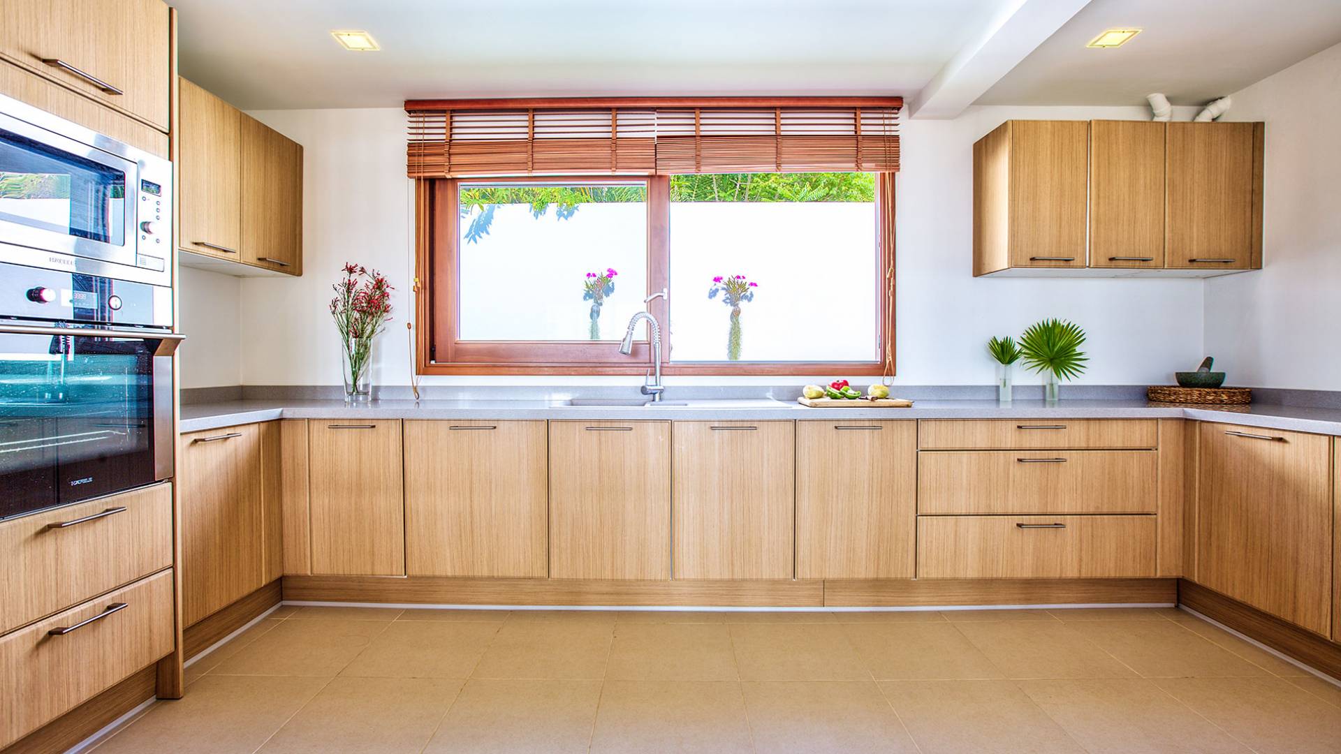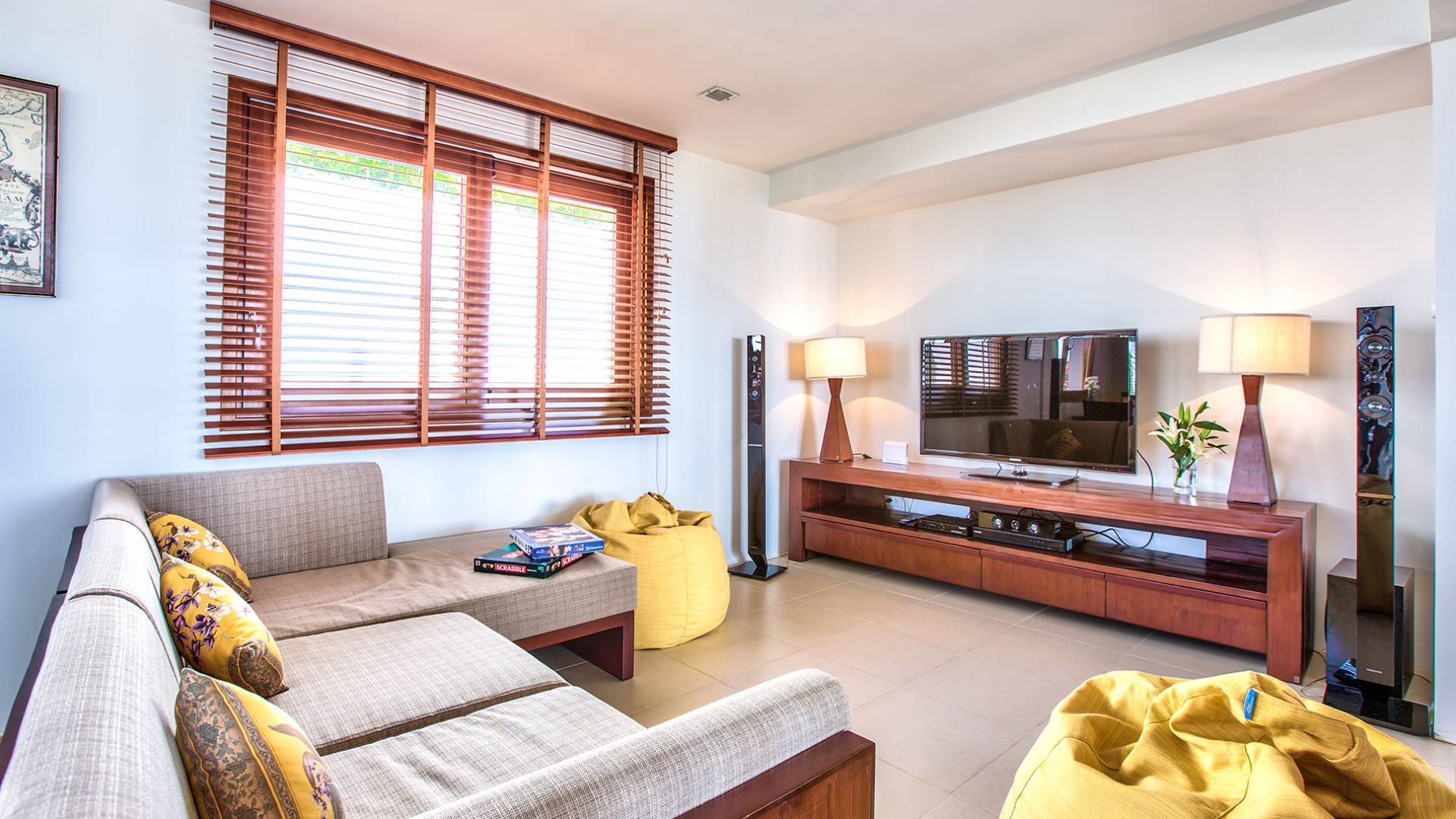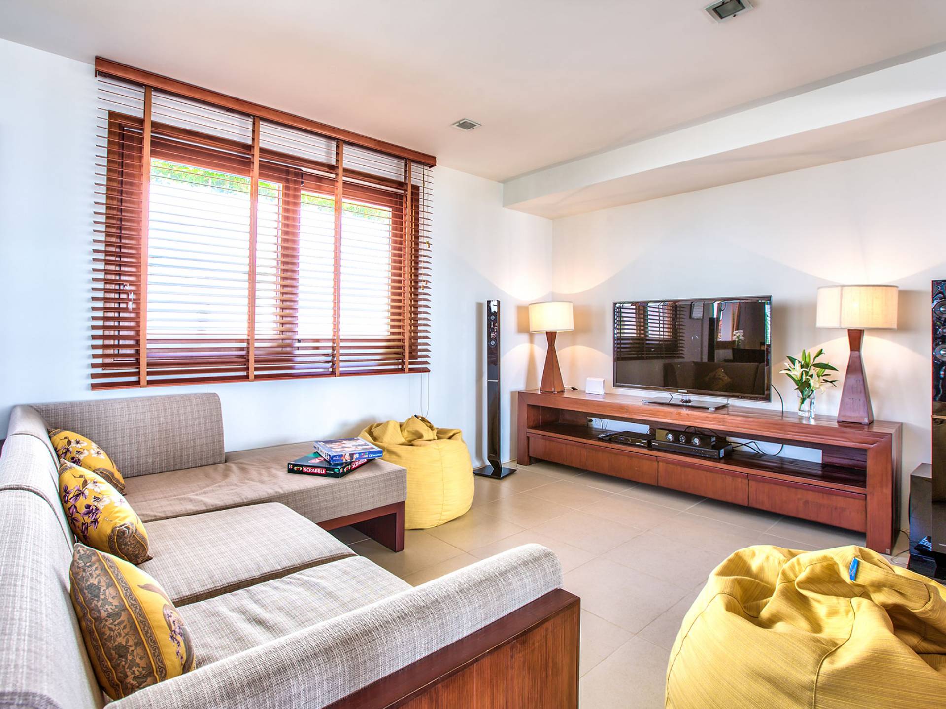 La sala de estar es espaciosa con un techo alto de madera y consta de una gran sala de estar y un comedor. Junto a la sala de estar hay una sala de televisión con un cómodo sofá, pufs y un escritorio. Esta área independiente ofrece un gran televisor de pantalla plana con sistema de Home Theatre, receptor de TV vía satélite y una selección de juegos de mesa que lo invitan a pasar una agradable velada familiar juntos. También junto a la sala de estar, hay una gran cocina independiente con todas las comodidades y electrodomésticos modernos. Verdaderamente, un hogar lejos del hogar.