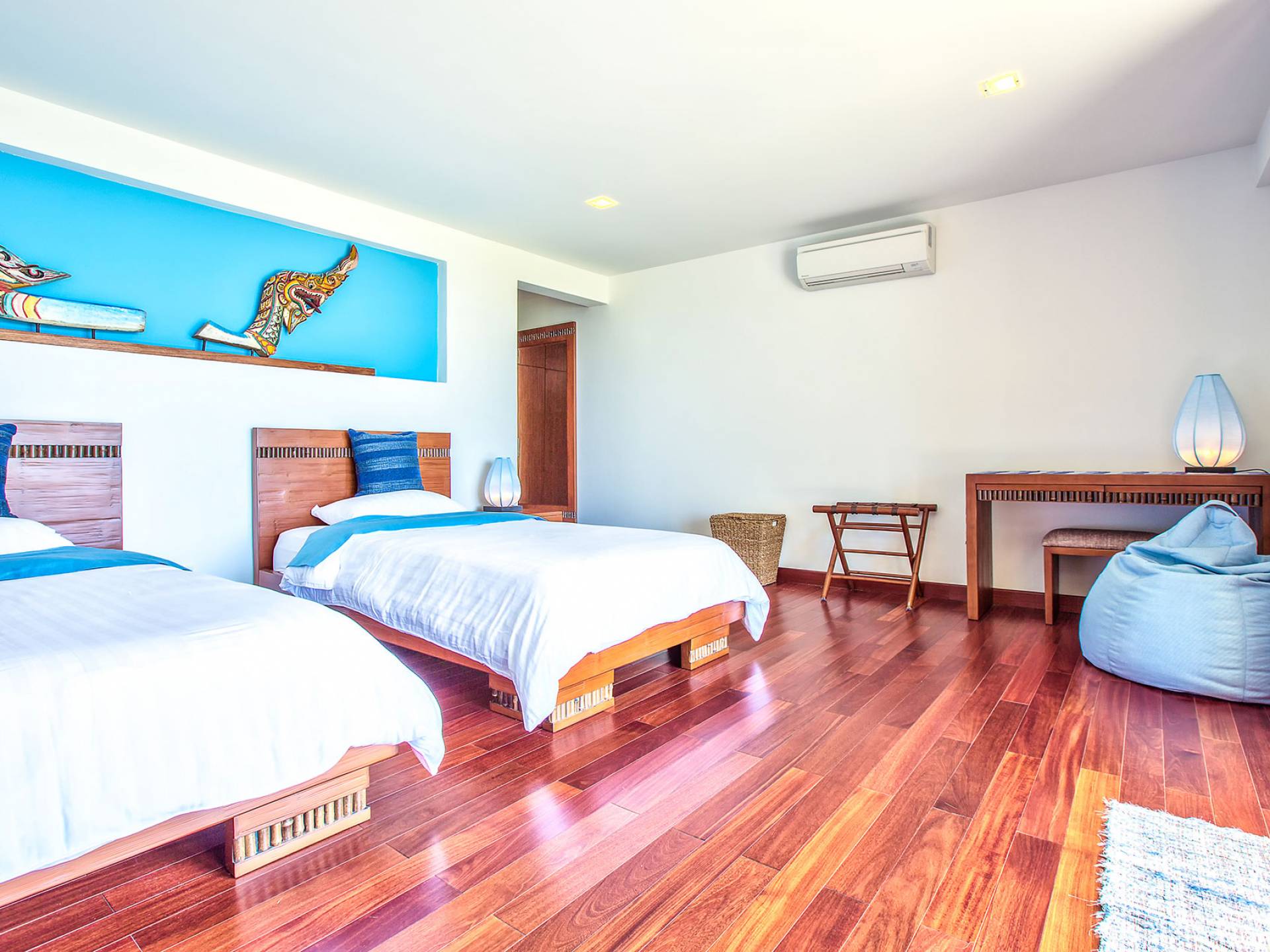 Villa Baan Apsara Samui comprende un área de poco más de 260 metros cuadrados y tiene capacidad para 6 personas cómodamente en sus tres grandes habitaciones con baño (dos habitaciones dobles y una cama individual). Dos dormitorios tienen una puerta interconectada, ideal para huéspedes con niños. Se pueden proporcionar dos camas adicionales para acomodar a 2 huéspedes adicionales, lo que permite que 8 huéspedes se queden en la villa. Todas las habitaciones tienen aire acondicionado y una terraza para pasar las agradables noches con un buen libro y un cóctel, mientras disfruta de las magníficas vistas del atardecer.