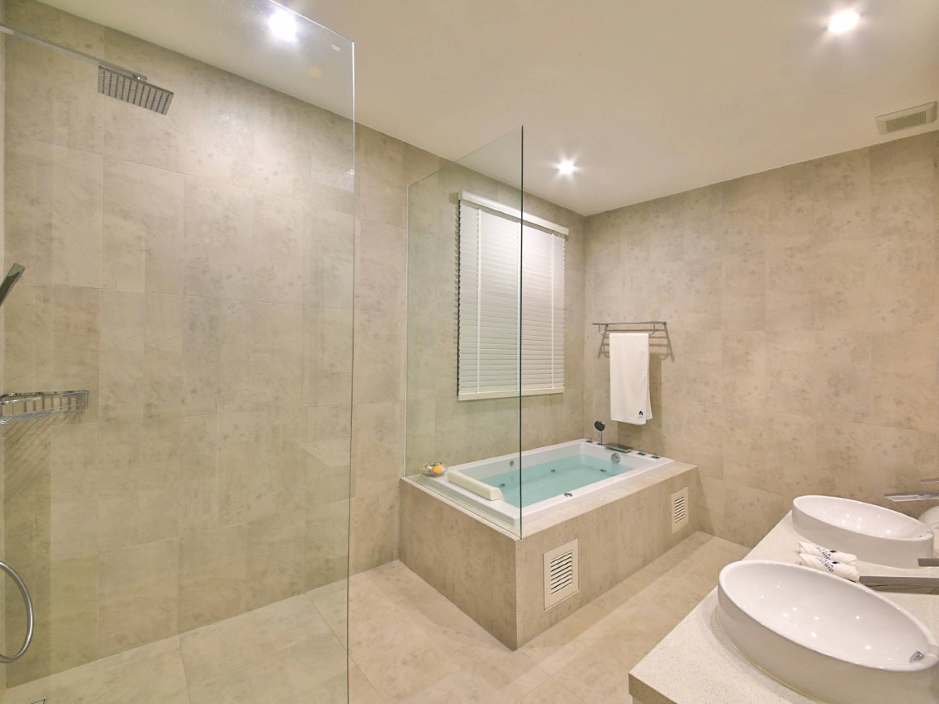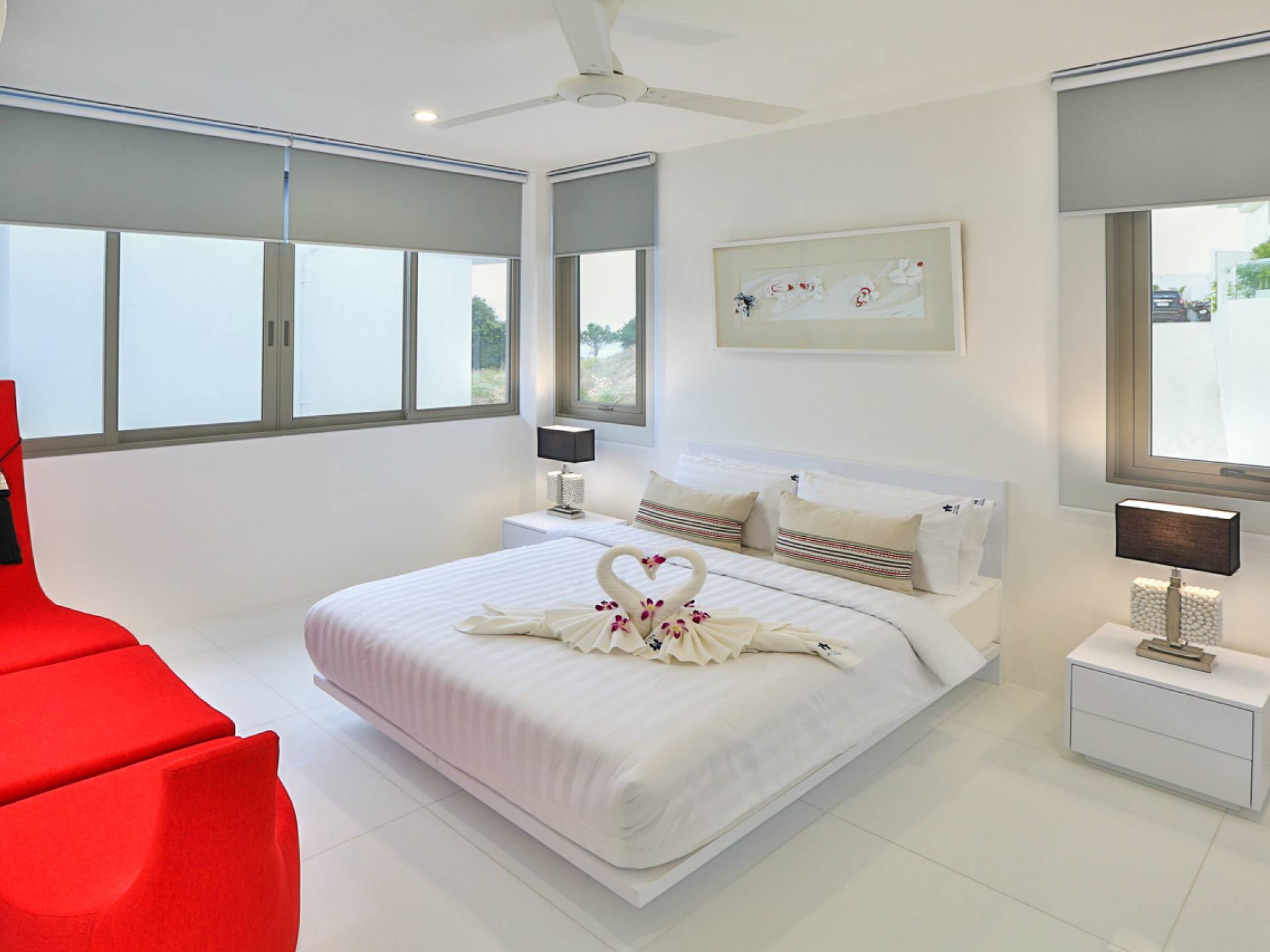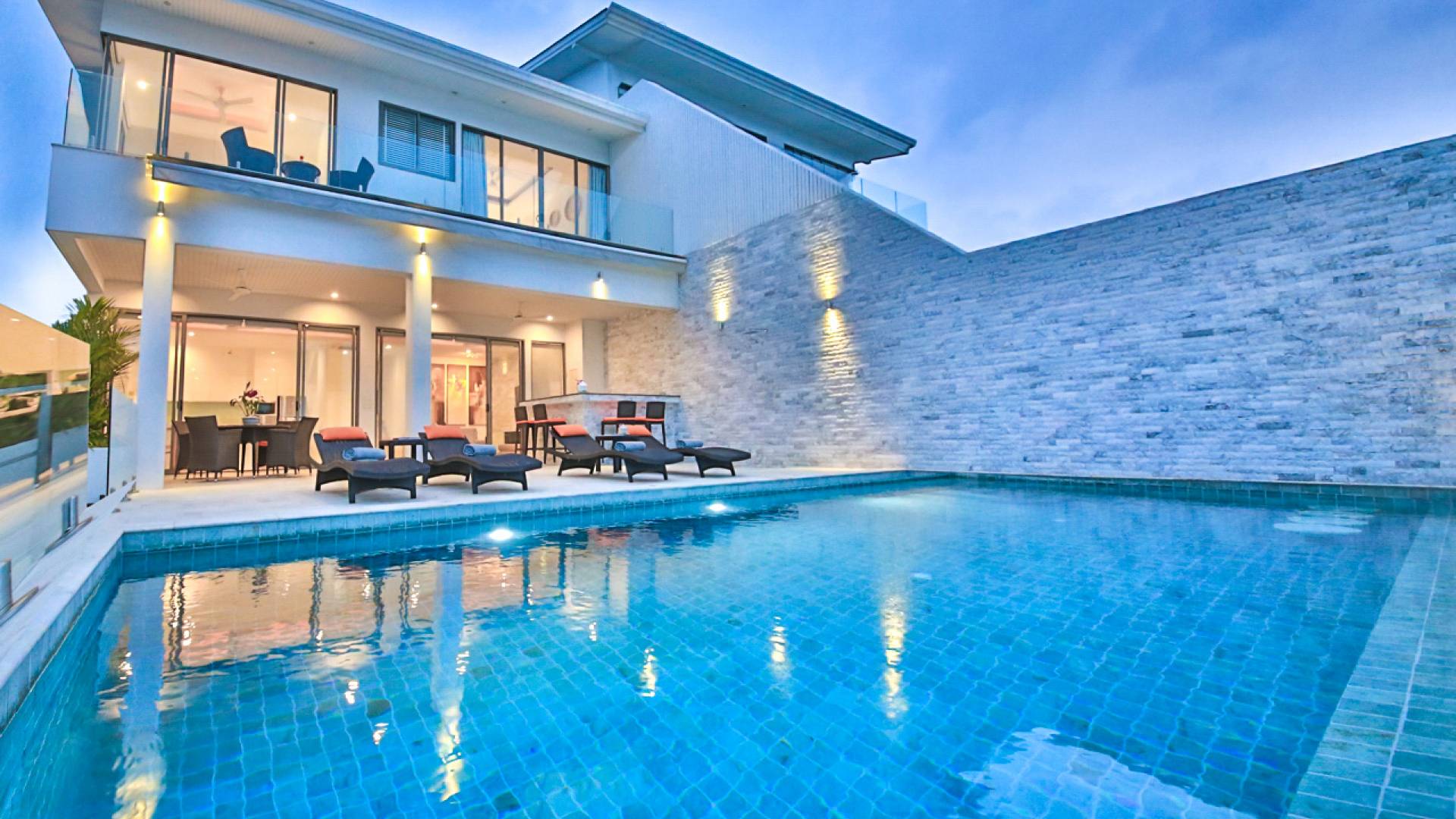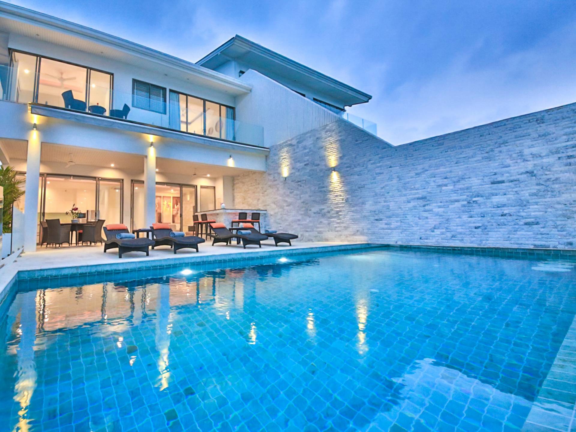 No querrás apartar la mirada, pero solo por un momento date la vuelta y observa todos los aspectos de tu villa. El gran patio junto a la piscina está pavimentado con adoquines de travertino antideslizantes. Alrededor del patio, también verá un bar en la piscina, una barbacoa de gas, parlantes bluetooth para el sistema de sonido, tumbonas, muebles junto a la piscina, un toldo con control remoto y una ducha al aire libre. También hay escaleras que conducen a las habitaciones de la criada, una cocina separada para cocinar comida tailandesa y lavandería. Su mucama preparará el desayuno continental de cortesía todos los días, se abastecerá de agua fría de cortesía y se asegurará de que la villa se mantenga excepcionalmente limpia y ordenada durante su estadía.
