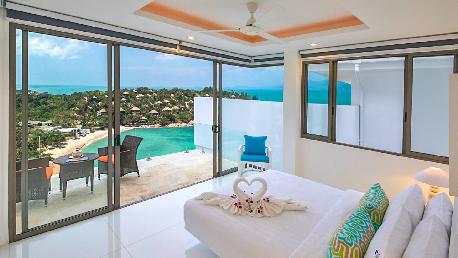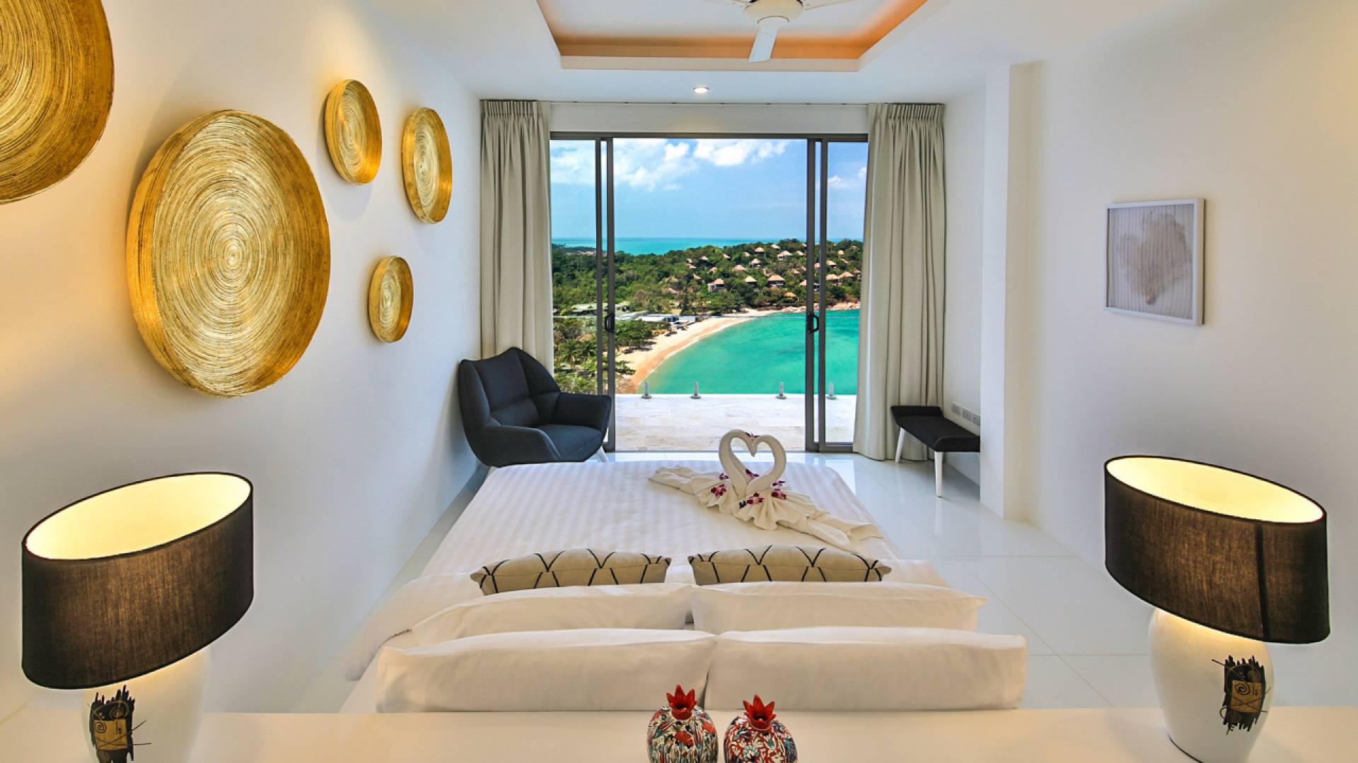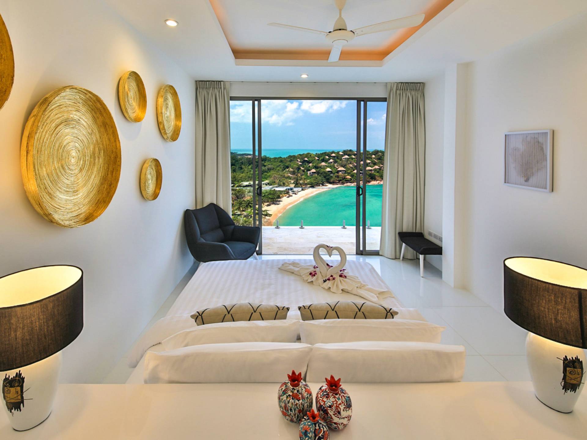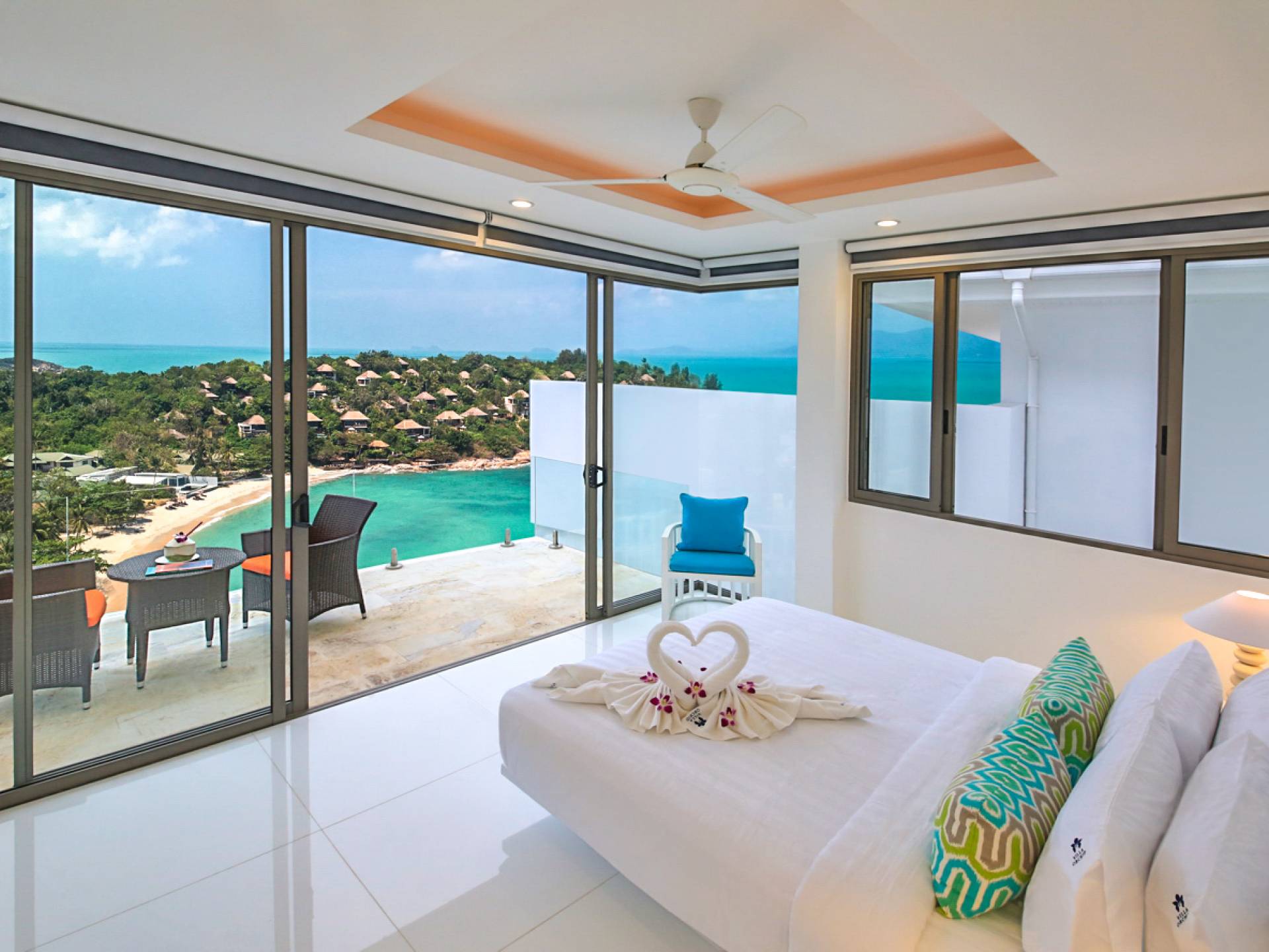 Es natural que inicialmente se dirija directamente hacia el patio, la piscina privada de 9 x 4 metros y la enorme extensión de océano turquesa que se extiende sin fin ante usted. Y cuando miras hacia abajo a la derecha, ves la costa arenosa de la bahía de Tong Son. Pocos lugareños y aún menos visitantes conocen esta bahía y está justo a la vuelta de la esquina. Y a su izquierda, comenzará a contemplar la playa de Big Buddha, de varios kilómetros de largo, que se extiende junto con el pueblo de Bangrak y hasta el famoso Fisherman's Village y su gran cantidad de restaurantes, cafés, bares, puestos de mercado y tiendas.