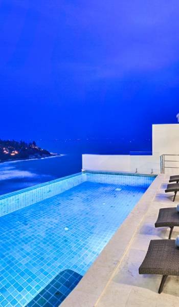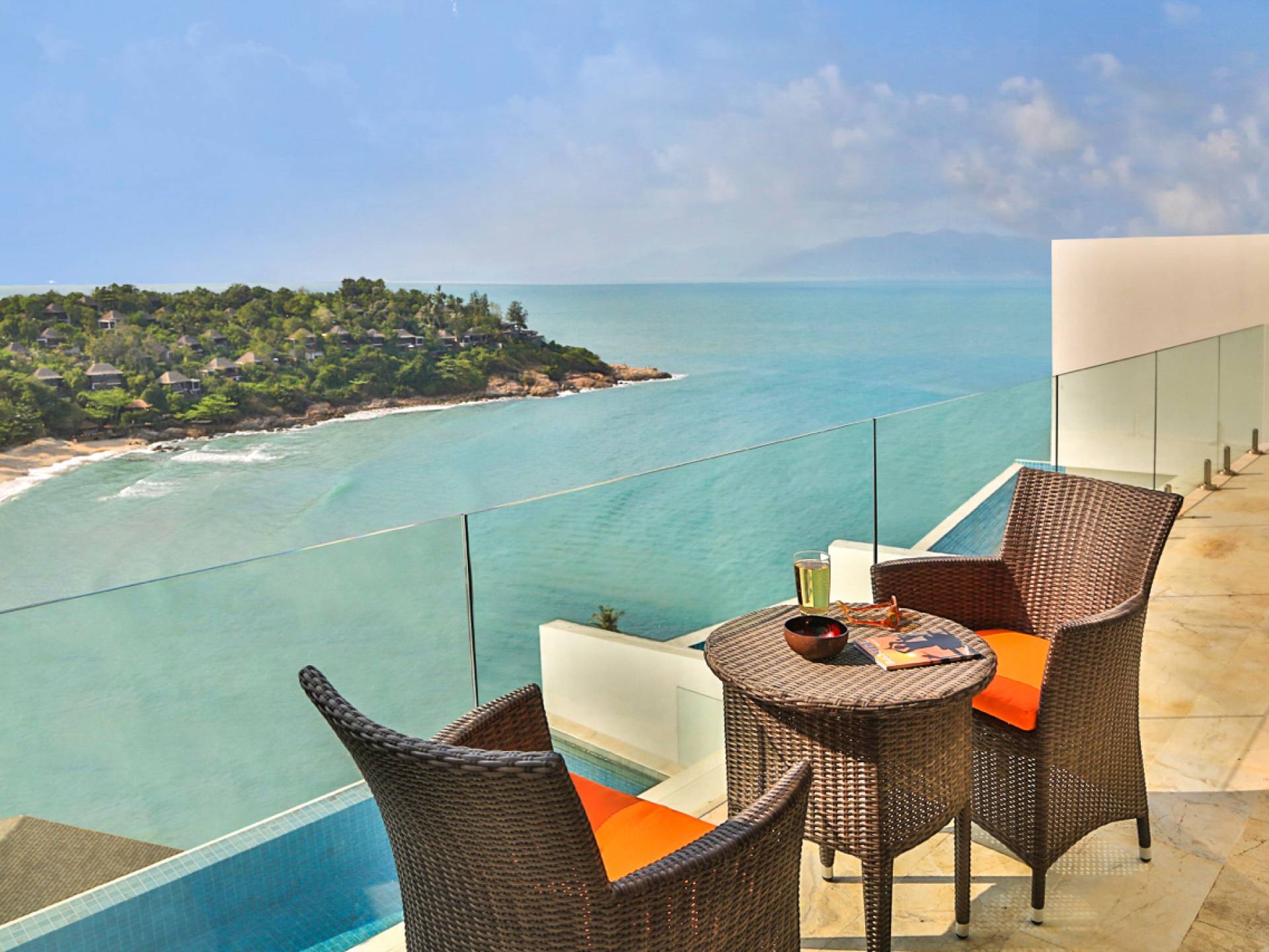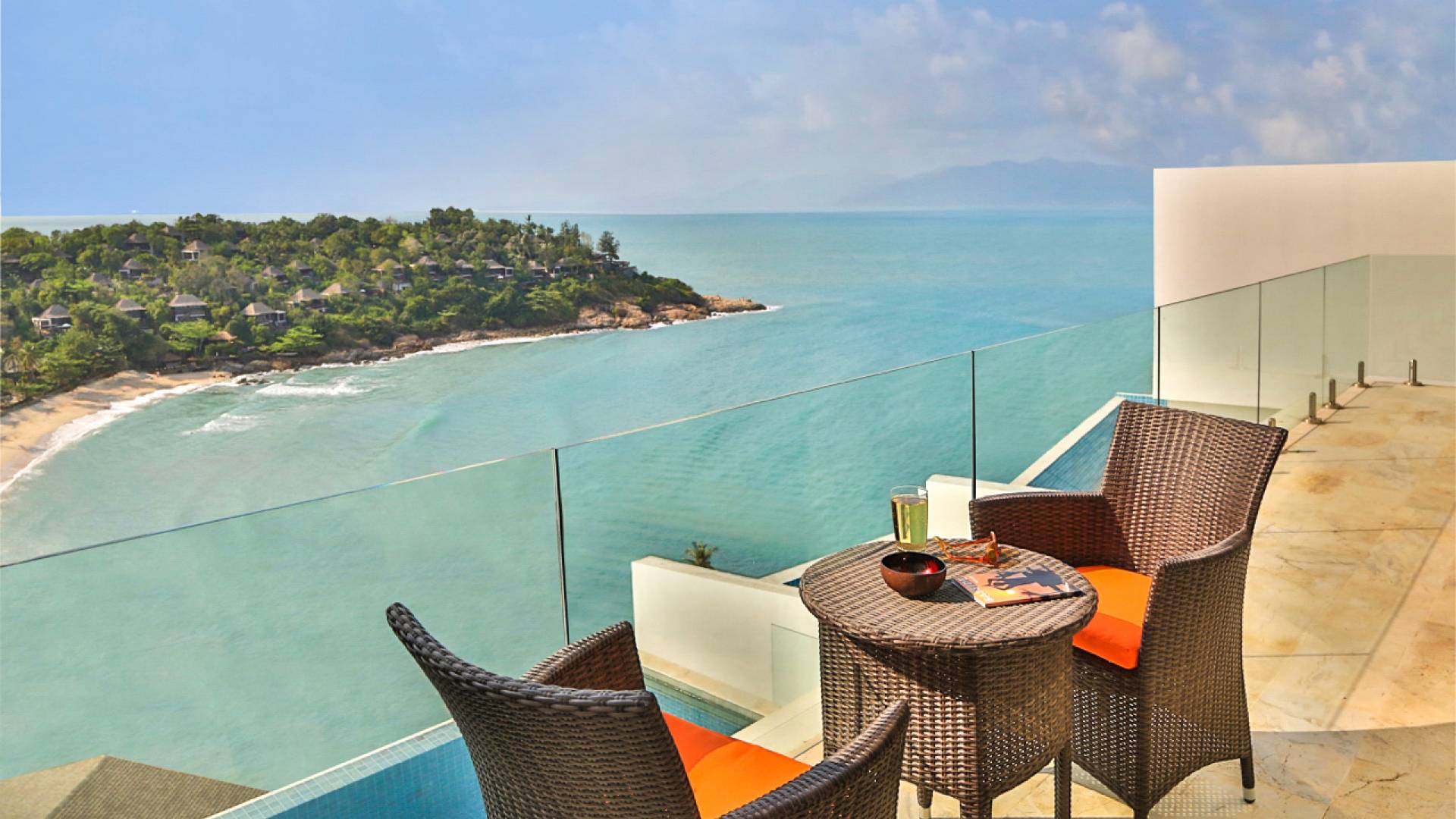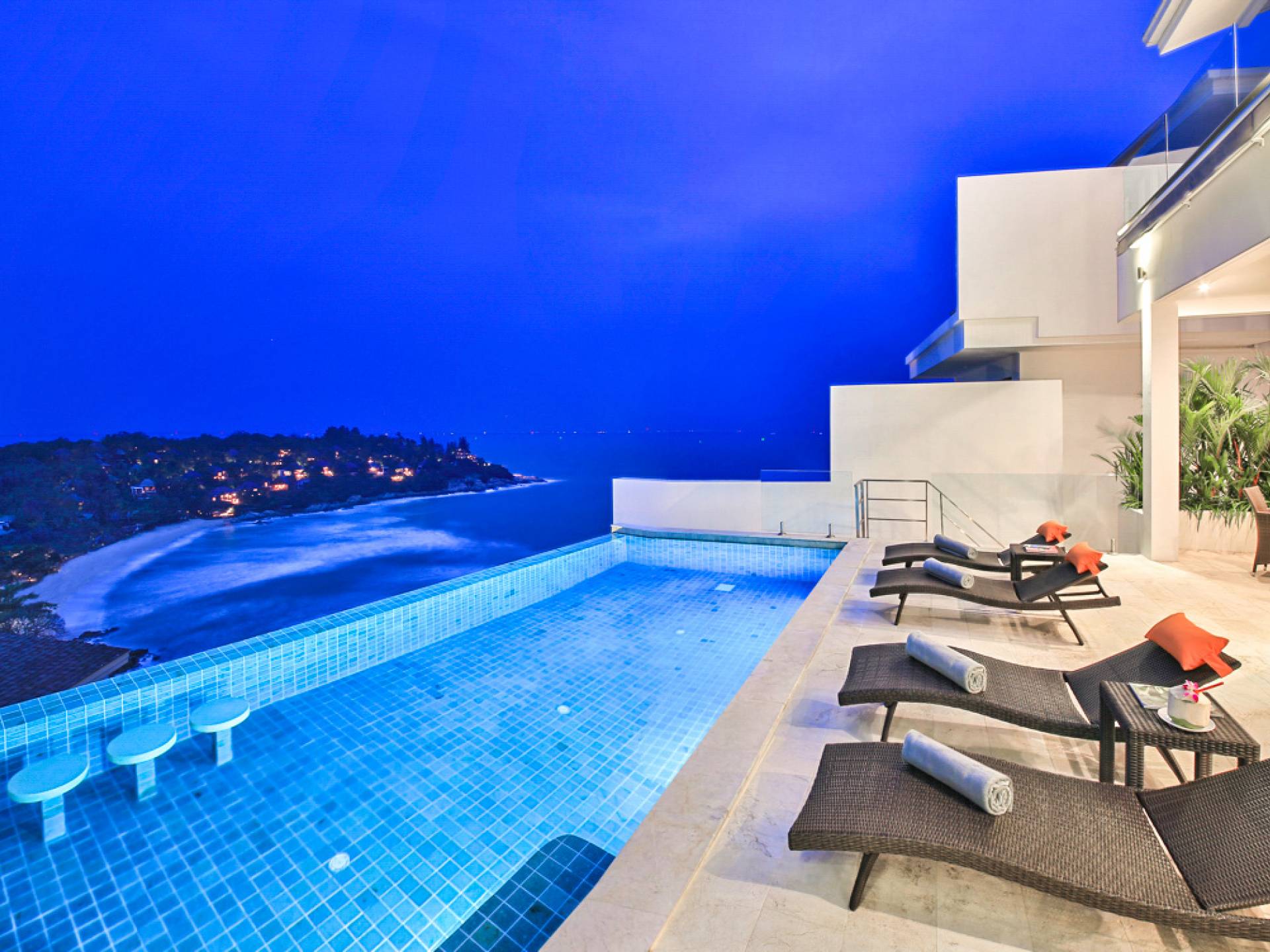 Es natural que inicialmente se dirija directamente hacia el patio, la piscina privada de 9 x 4 metros y la enorme extensión de océano turquesa que se extiende sin fin ante usted. Y cuando miras hacia abajo a la derecha, ves la costa arenosa de la bahía de Tong Son. Pocos lugareños y aún menos visitantes conocen esta bahía y está justo a la vuelta de la esquina. Y a su izquierda, comenzará a contemplar la playa de Big Buddha, de varios kilómetros de largo, que se extiende junto con el pueblo de Bangrak y hasta el famoso Fisherman's Village y su gran cantidad de restaurantes, cafés, bares, puestos de mercado y tiendas.