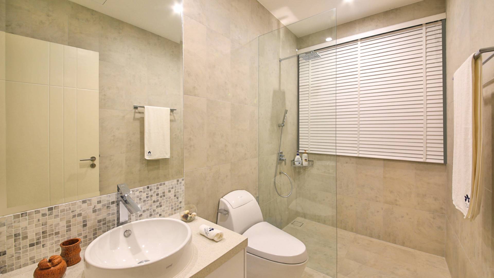 Sube un tramo de escaleras y tienes tres habitaciones dobles con baño. Todas tienen aire acondicionado, armarios empotrados y mucho espacio en los armarios y el dormitorio principal también puede presumir de una bañera de hidromasaje. Dos de los dormitorios tienen la misma vista gloriosa, desde un balcón, que vio en el patio y dos de los dormitorios tienen persianas con control remoto, mientras que el tercero tiene cortinas pesadas del piso al techo y todas bloquean la luz del sol de la mañana si usted sentirse como una mentira en ocasiones.