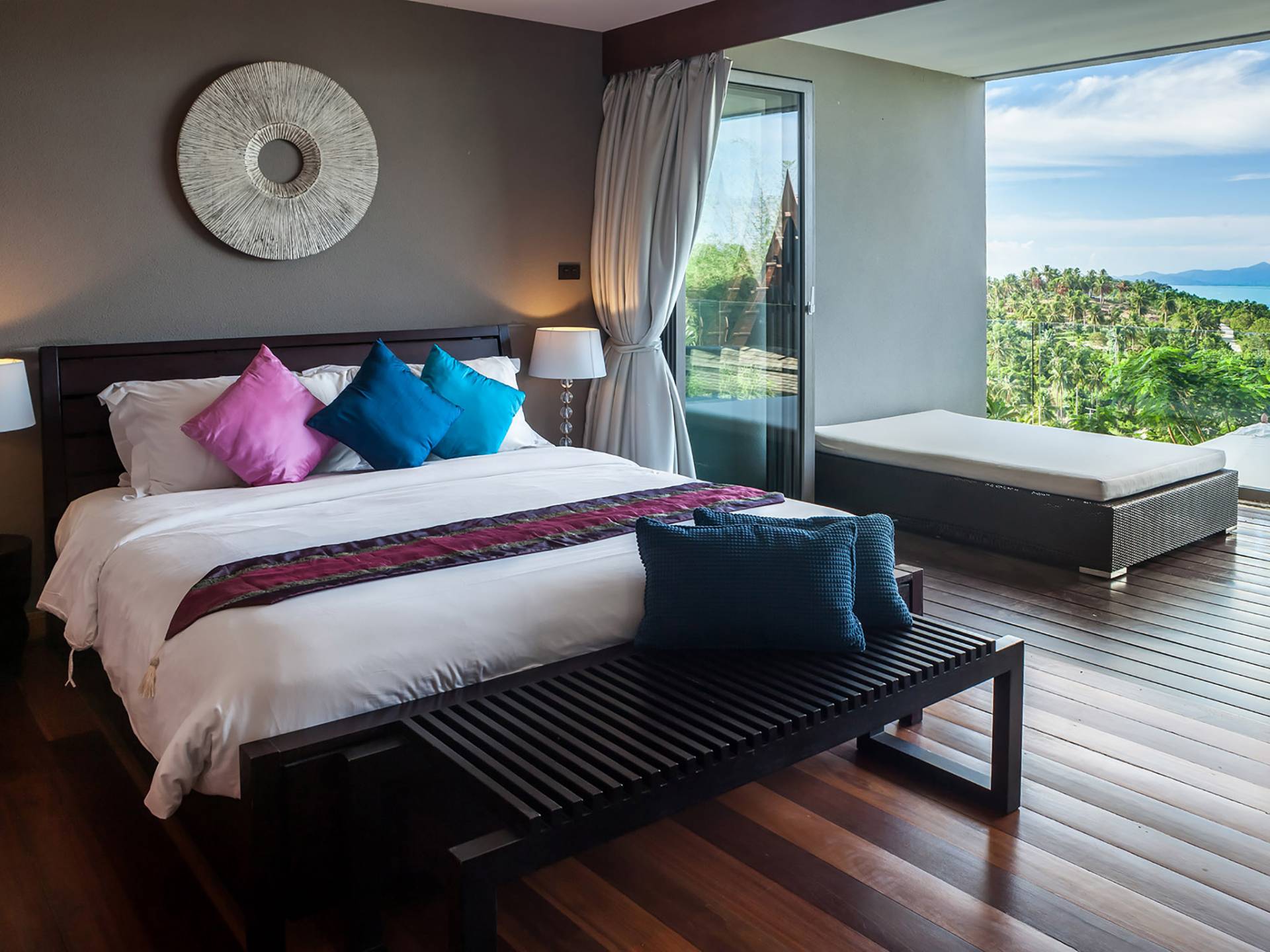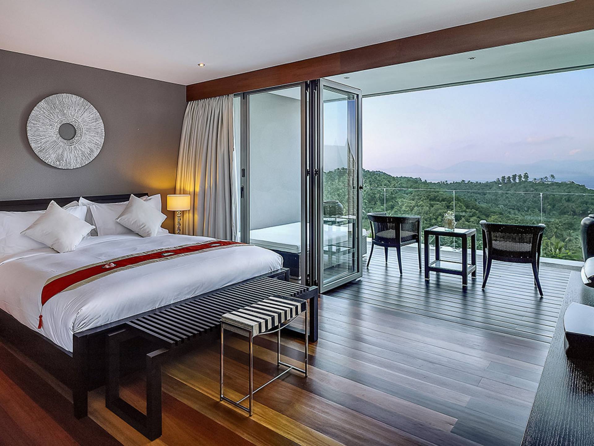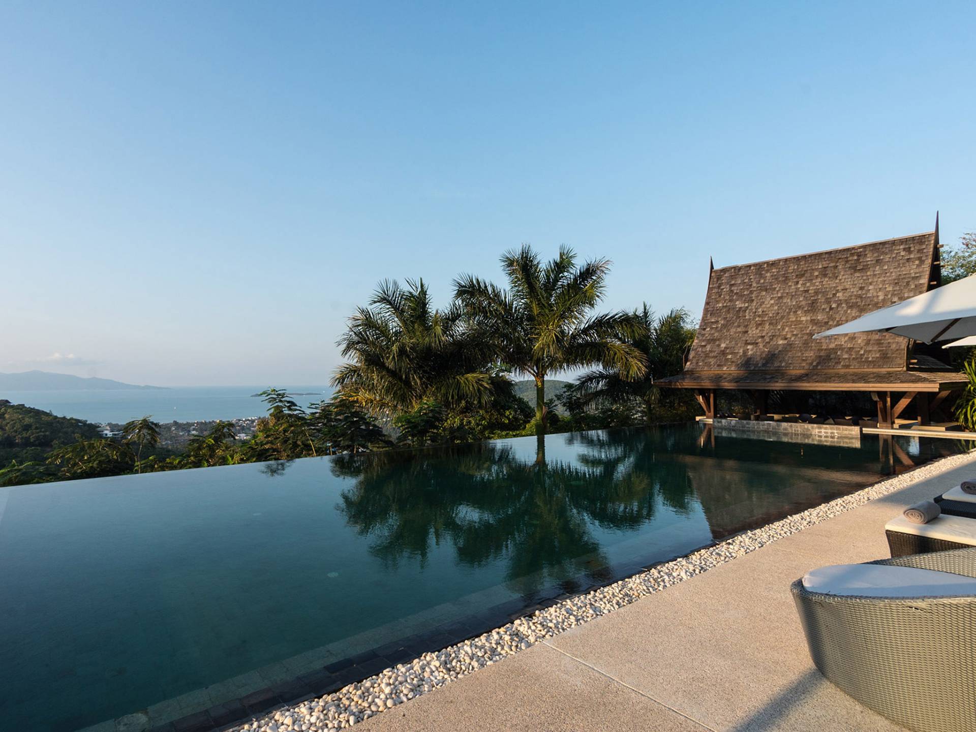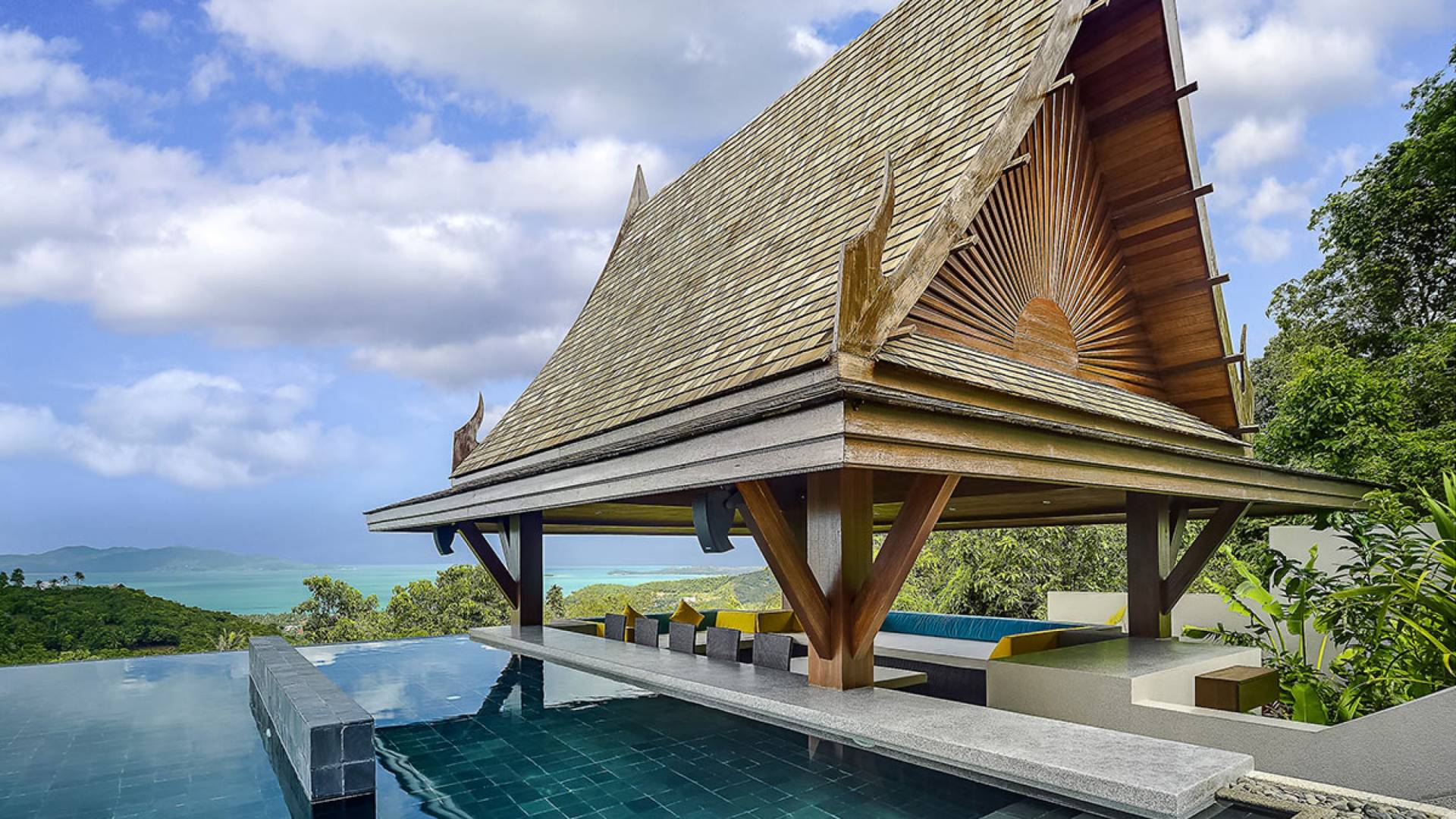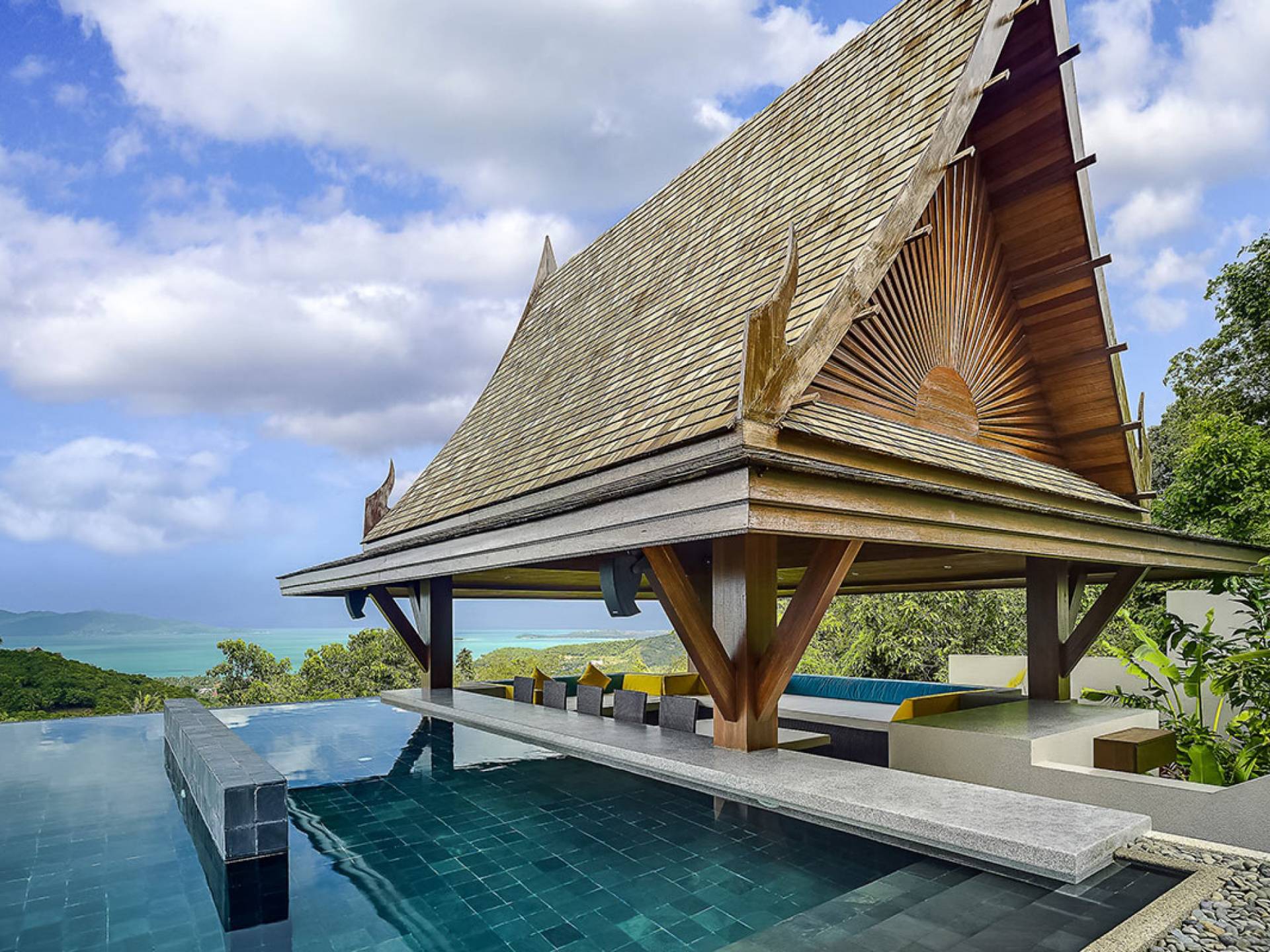 Villa Suralai Samui es una villa de lujo en alquiler con 6 dormitorios y piscina privada. El epicentro del lujo en un refugio tropical aislado con vistas impresionantes se encuentra en Villa Suralai en Samui. Ubicada elegantemente sobre exuberantes colinas verdes, la villa de lujo de la maravilla de la belleza ofrece vistas panorámicas a las aguas azul pavo real del océano que se encuentra debajo. Muy cómodamente, Villa Suralai puede albergar todo tipo de grupos de hasta 12 personas.