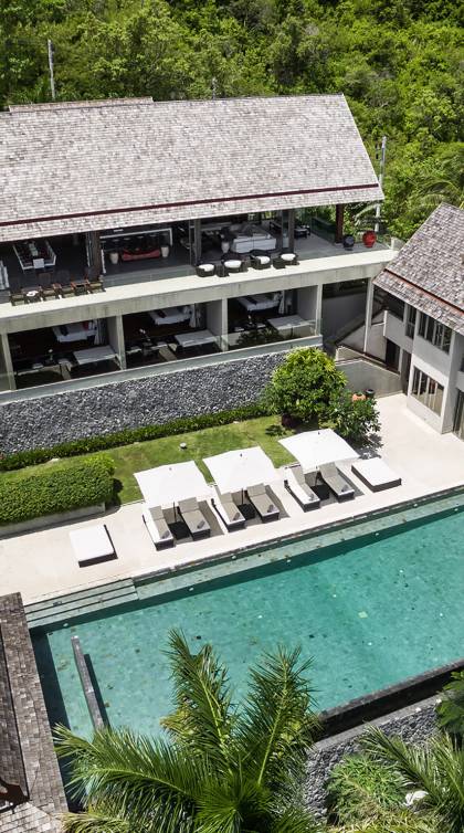 Villa Suralai es una villa de estilo contemporáneo de 6 dormitorios ubicada en un lugar asombrosamente hermoso y tranquilo. Sentado elegantemente sobre el océano azul zafiro, con una larga piscina infinita privada, alberga las áreas de estar y comedor abiertas, una elegante cocina totalmente equipada, habitaciones grandes y cómodas y un gimnasio privado. El impresionante diseño interior está bellamente adornado con llamativos paneles de madera de color miel, muebles de excelente calidad, mármol pulido y obras de arte excepcionales.