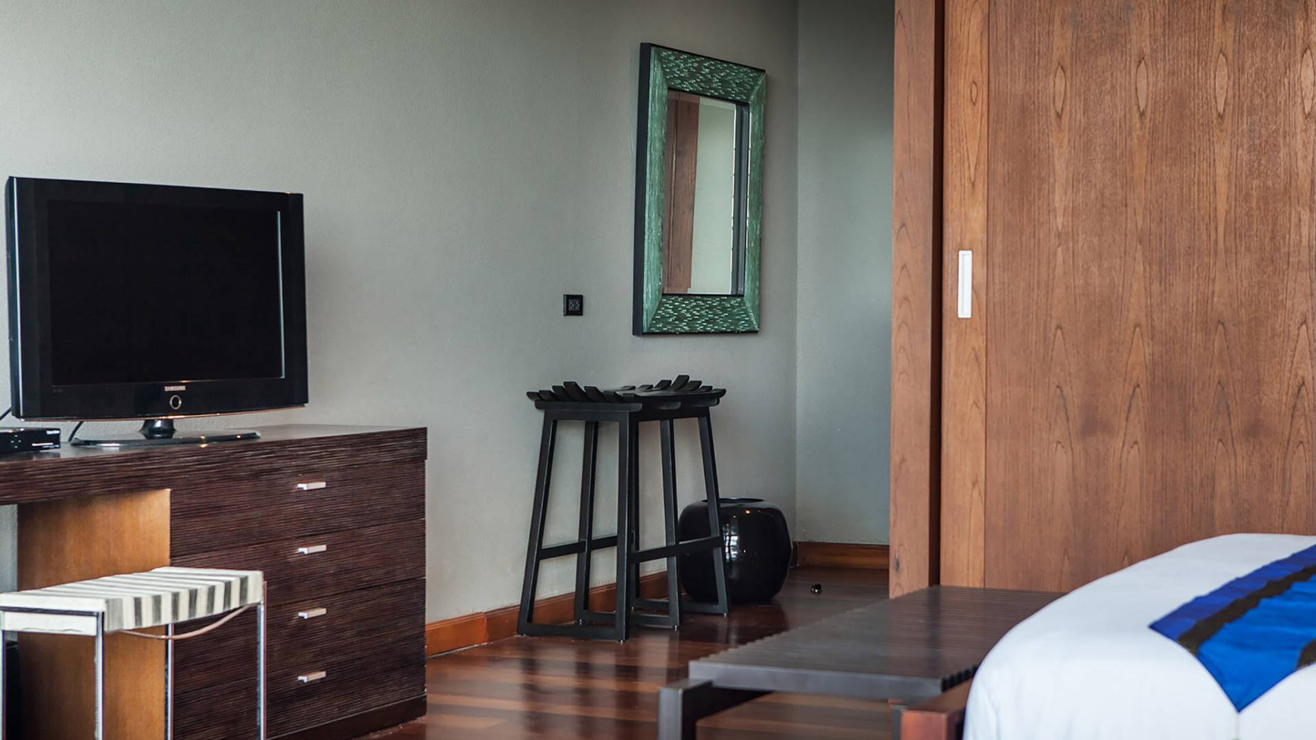Cada una de las seis habitaciones superiores cuenta con una cama king-size, además de la Garden Room 3, que contiene dos camas individuales y una individual. Todas las habitaciones están equipadas con su propio balcón o terraza privada, amplia iluminación natural, baños en suite, duchas, bañeras separadas, televisores con pantalla de plasma de 30 pulgadas, internet inalámbrico, base para iPod y sistema de sonido envolvente, caja de seguridad. para guardar pertenencias valiosas y vistas ininterrumpidas al mar. Los dos dormitorios principales cuentan cada uno con un vestidor, uno de los cuales tiene un sofá cama donde los niños pequeños pueden dormir.