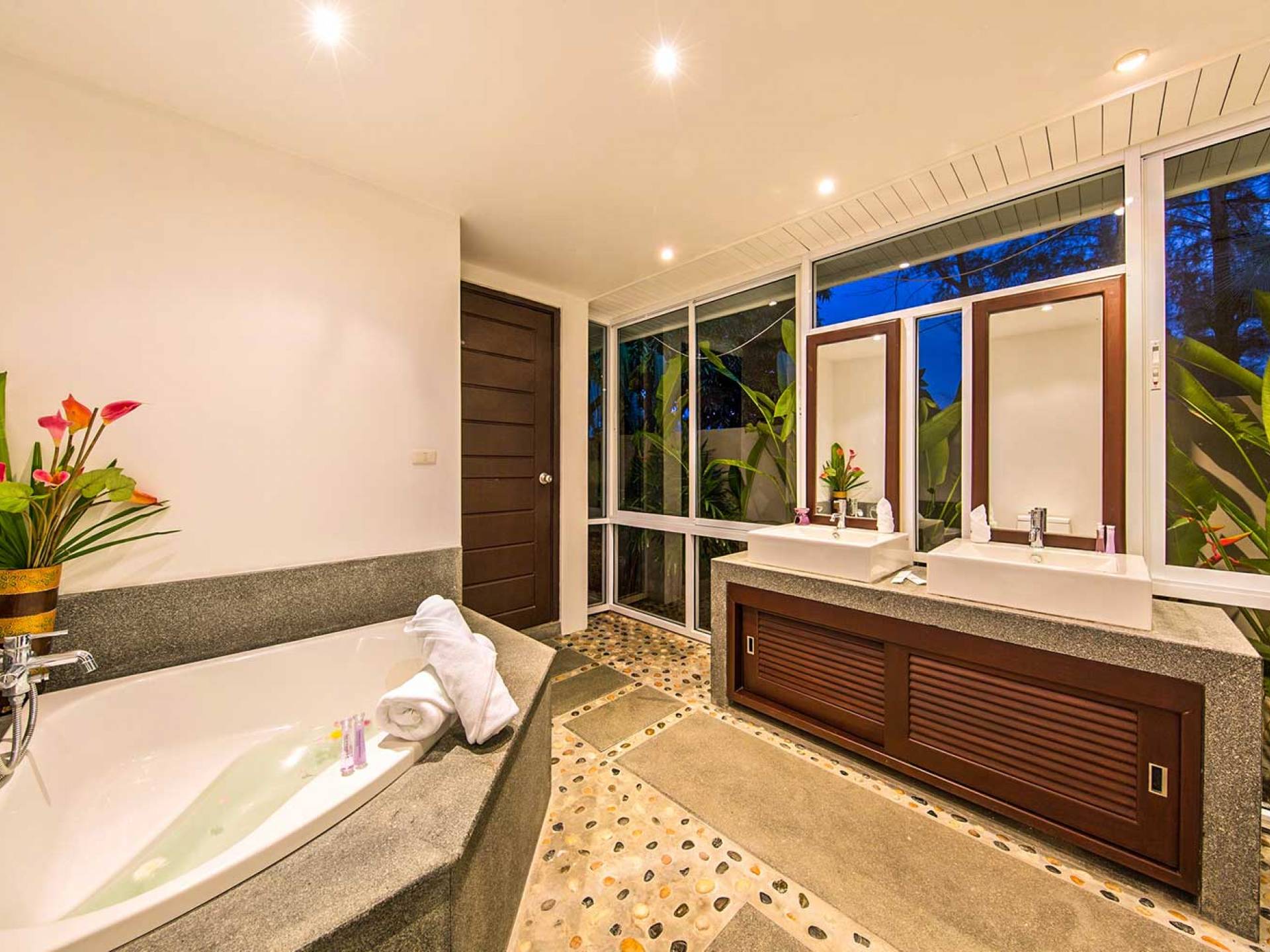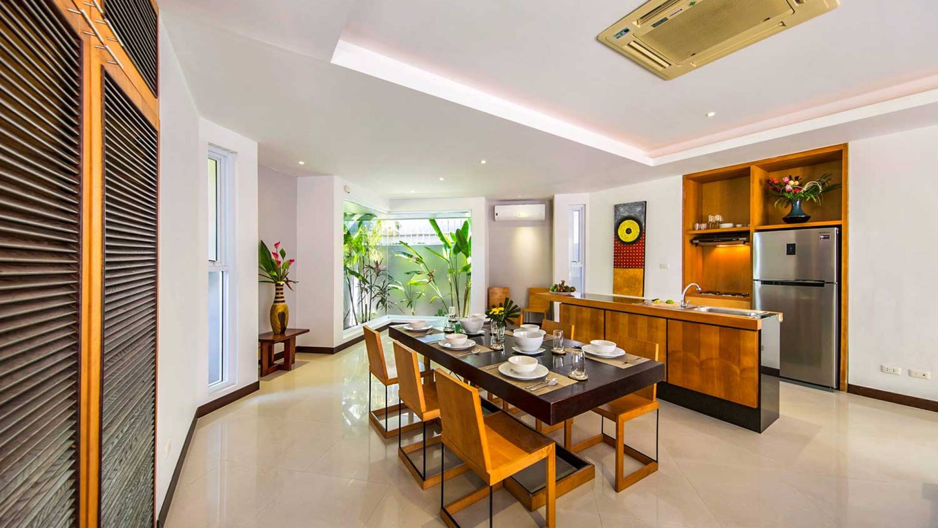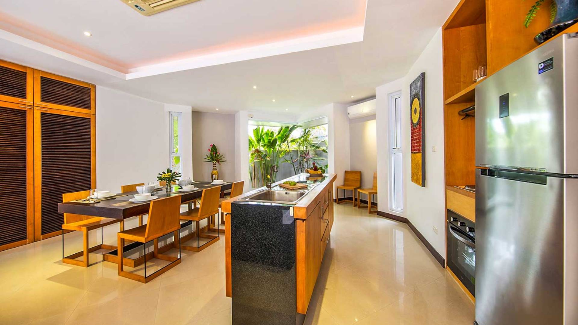 Cada villa privada ofrece sus propios terrenos totalmente seguros, con un jardín tropical y una amplia piscina privada; todas bellamente decoradas y totalmente equipadas con comodidades modernas. Además de las amplias habitaciones con aire acondicionado que cuentan con baños privados en suite, hay un espacio habitable de planta abierta; la sala de estar con sofá y TV LCD con una cocina totalmente equipada y un comedor.