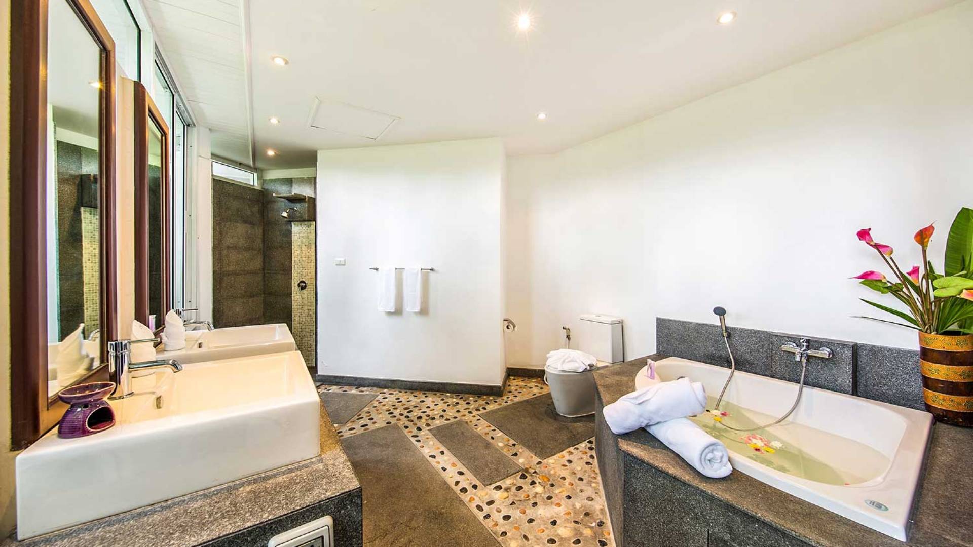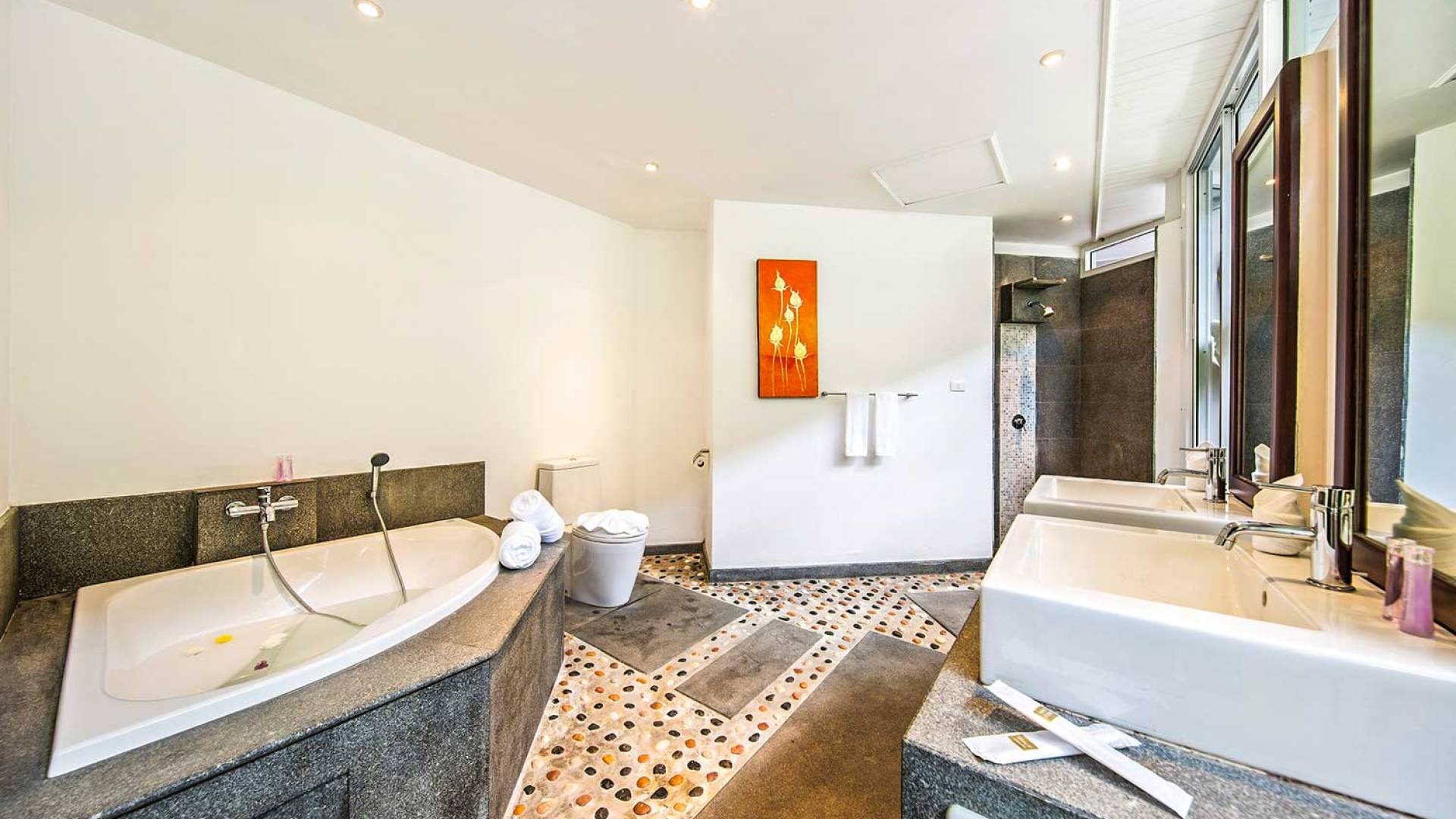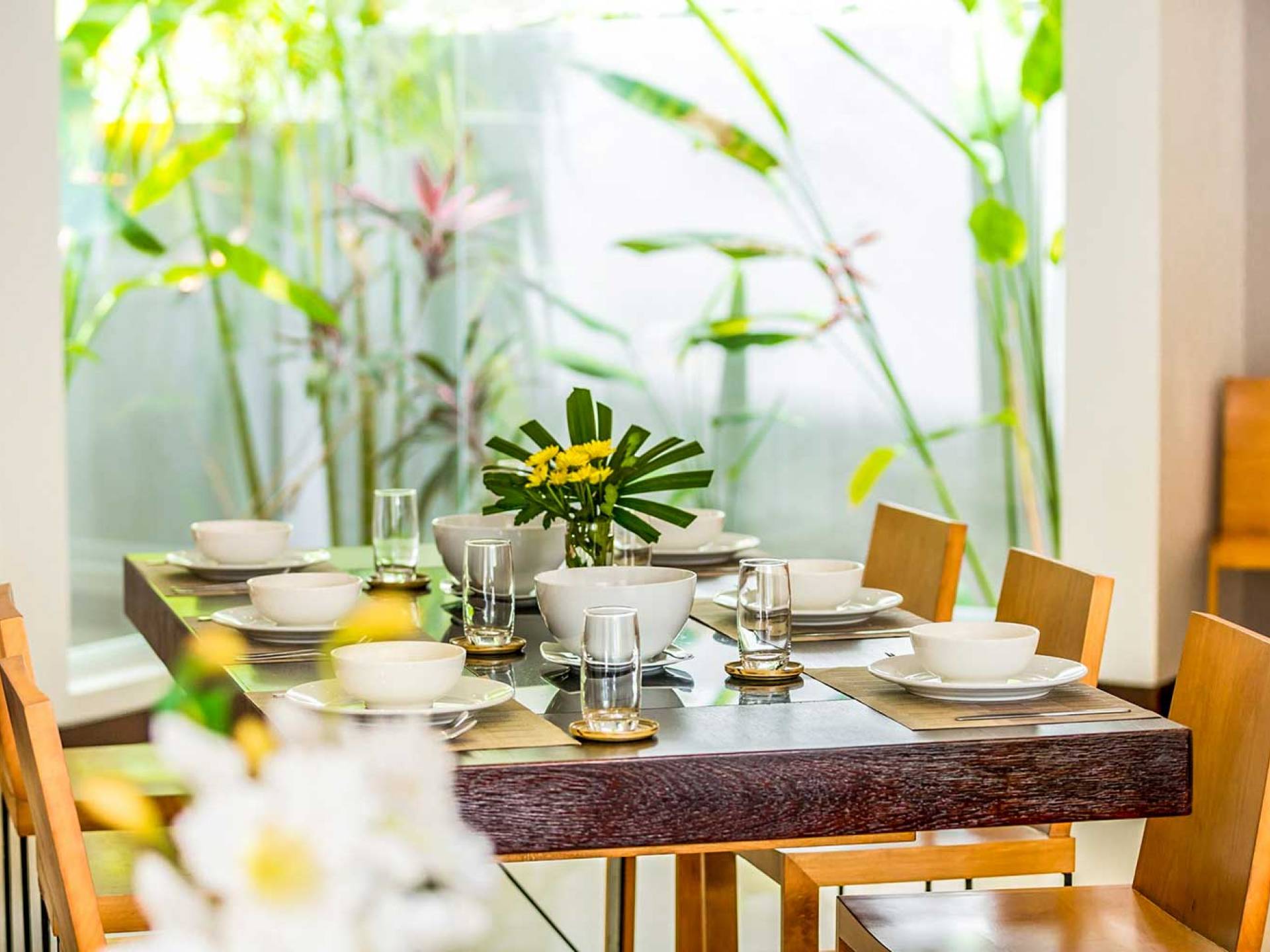 Cada villa privada ofrece sus propios terrenos totalmente seguros, con un jardín tropical y una amplia piscina privada; todas bellamente decoradas y totalmente equipadas con comodidades modernas. Además de las amplias habitaciones con aire acondicionado que cuentan con baños privados en suite, hay un espacio habitable de planta abierta; la sala de estar con sofá y TV LCD con una cocina totalmente equipada y un comedor.