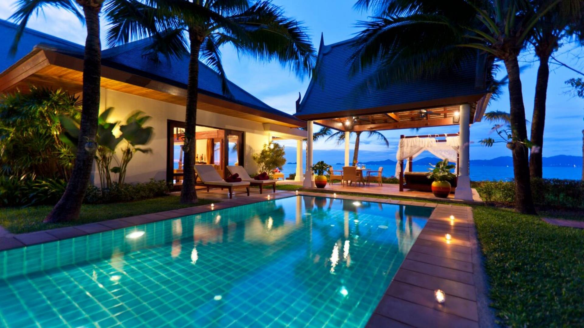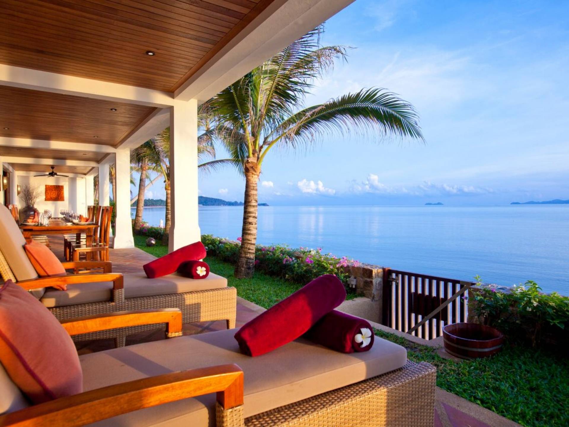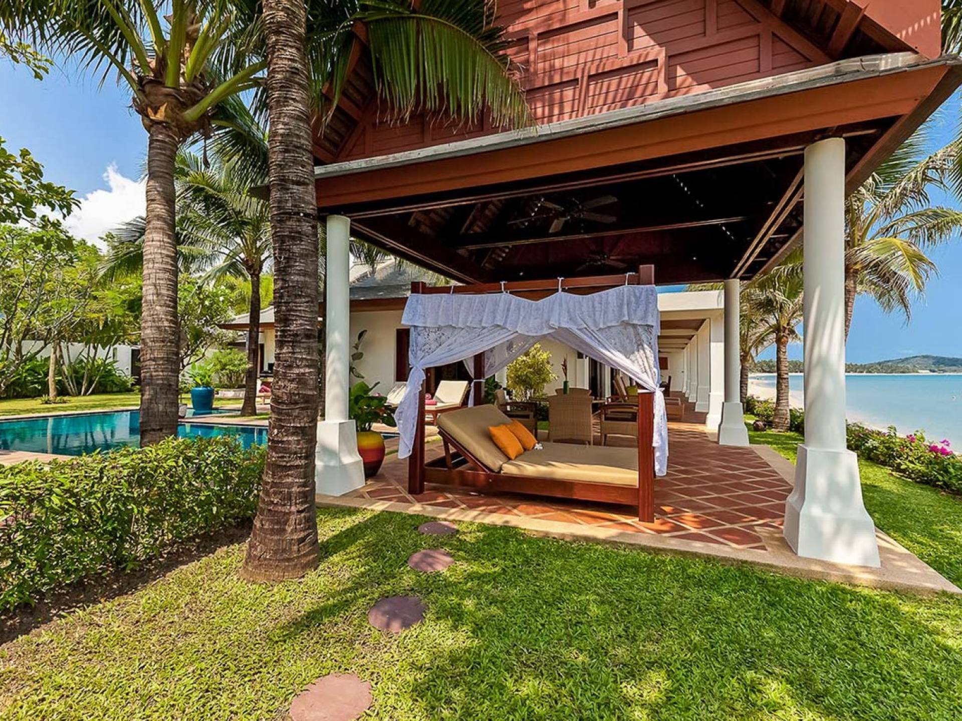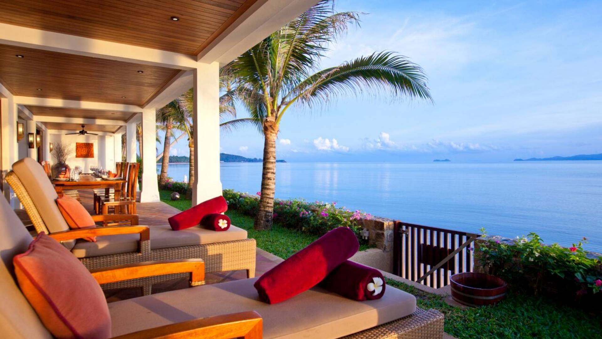 Miskawaan Villas Samui, que significa Jardín de Buda, es una colección de 11 villas de lujo frente al mar; Diez están ubicadas con vistas a las impresionantes arenas doradas de Maenam y una se encuentra en la prístina playa de Bangrak. Miskawaan Villas Samui ofrece la escapada ideal para un retiro descalzo y una villa de lujo con sus amigos, familiares o socios comerciales. Villa Hibiscus en Miskawaan Villas Samui es una lujosa y exquisita villa frente al mar de 4 dormitorios con capacidad para 8 personas.