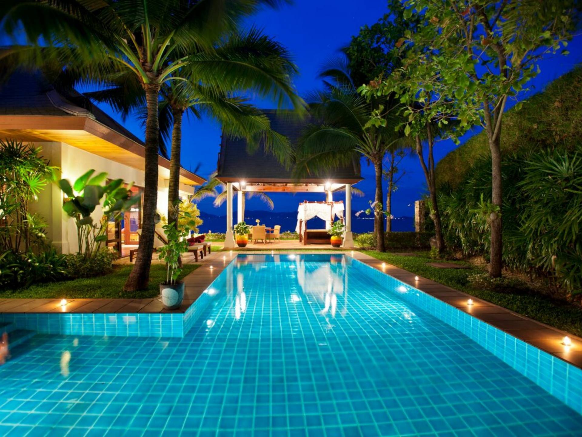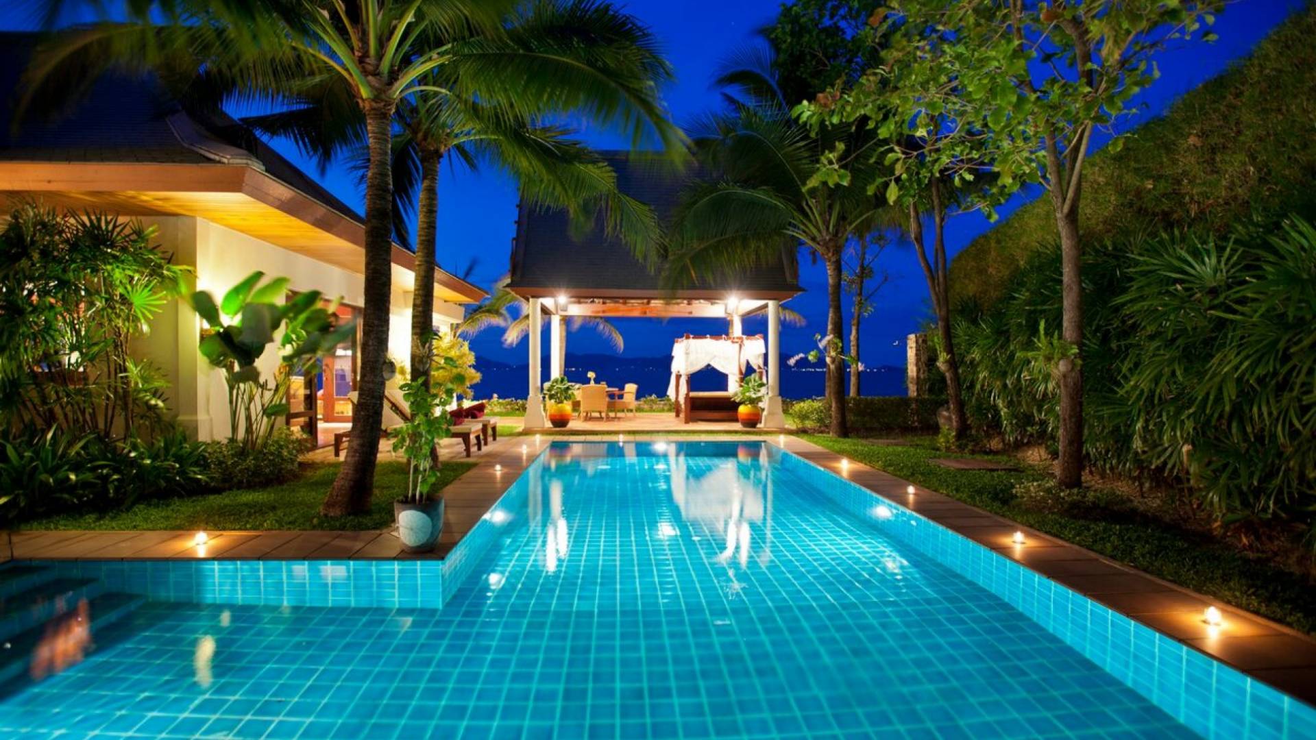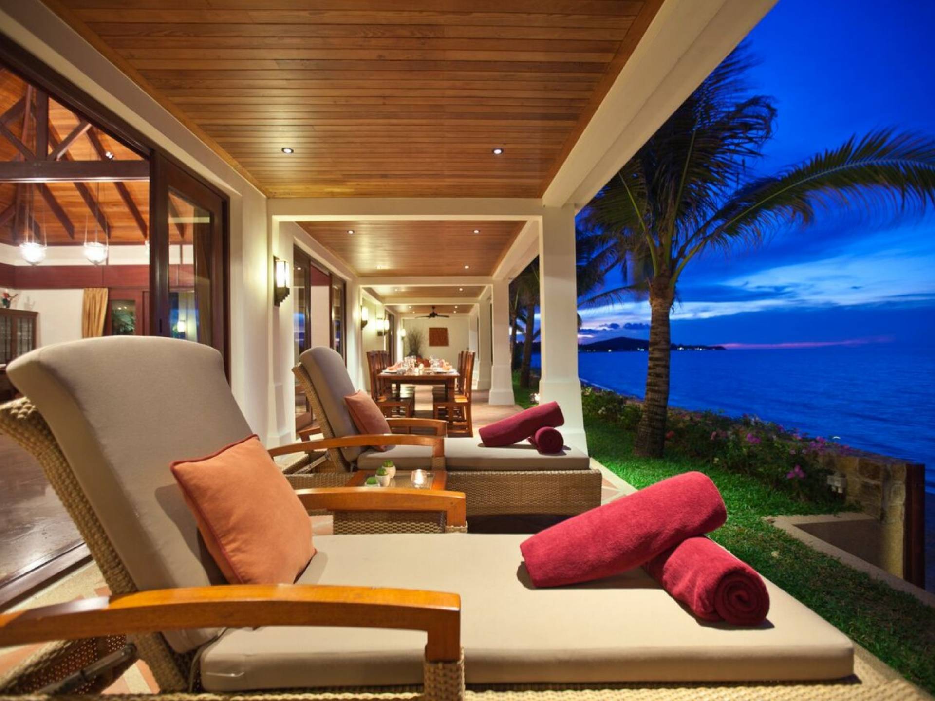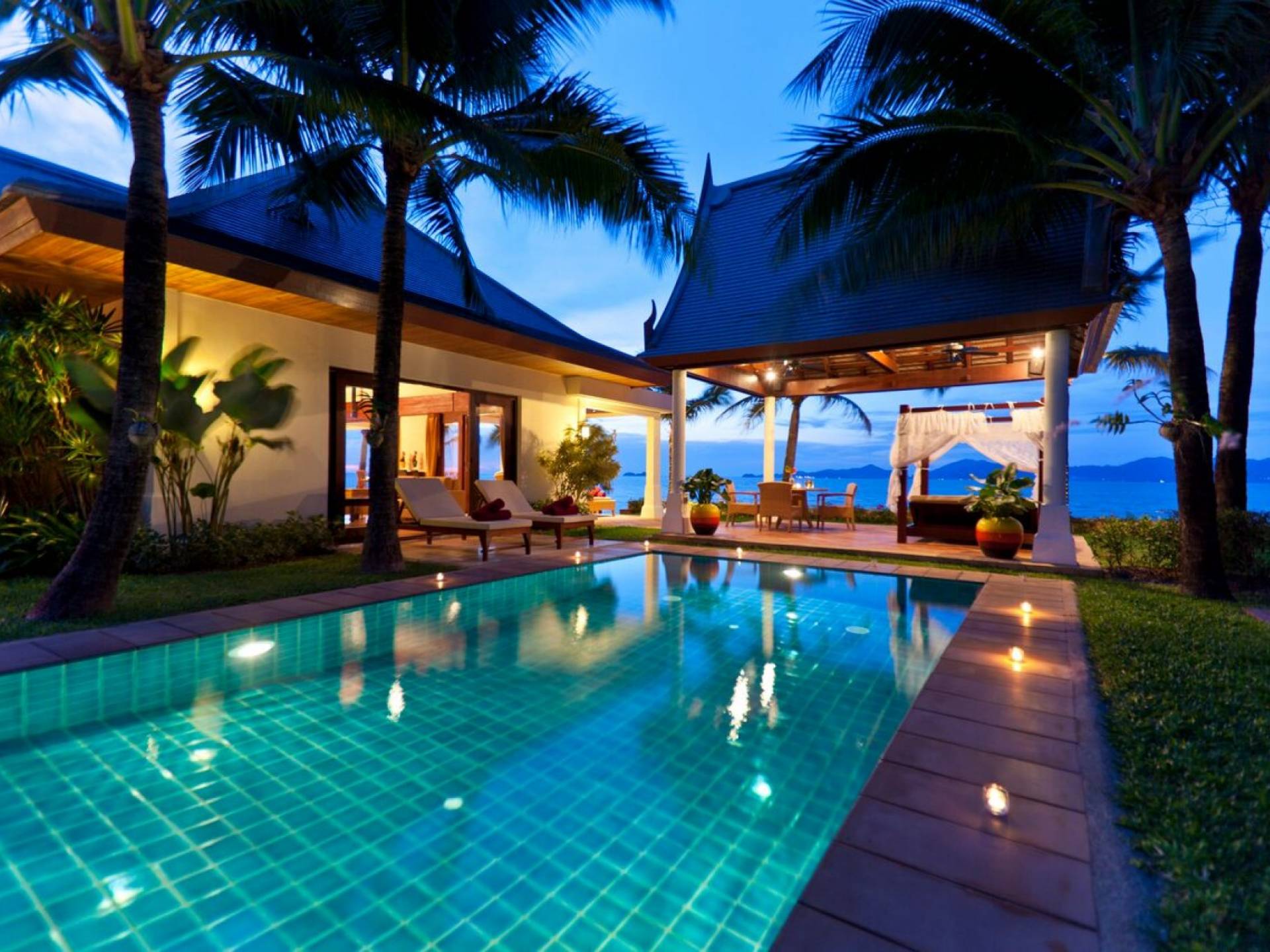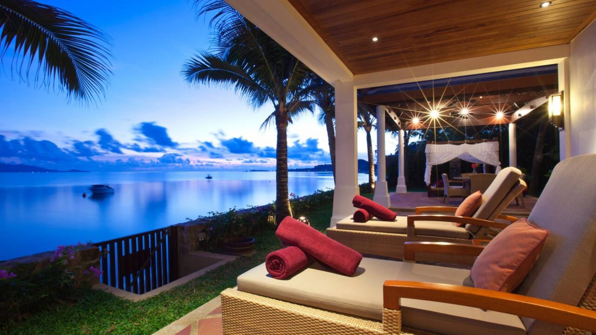 Miskawaan Villas Samui, que significa Jardín de Buda, es una colección de 11 villas de lujo frente al mar; Diez están ubicadas con vistas a las impresionantes arenas doradas de Maenam y una se encuentra en la prístina playa de Bangrak. Miskawaan Villas Samui ofrece la escapada ideal para un retiro descalzo y una villa de lujo con sus amigos, familiares o socios comerciales. Villa Hibiscus en Miskawaan Villas Samui es una lujosa y exquisita villa frente al mar de 4 dormitorios con capacidad para 8 personas.
