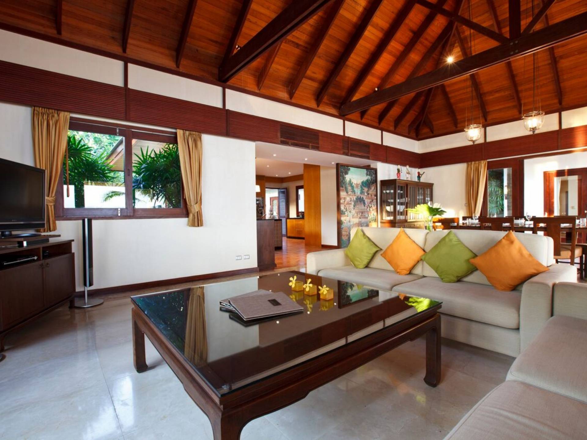 Villa Hibiscus en Miskawaan Villas Samui se beneficia de un gran jardín en la parte trasera de la villa junto a los 4 dormitorios. La villa Hibiscus se completa con un amplio salón, cocina totalmente equipada, comedor interior y zona de comedor al aire libre con sala tailandesa. Un administrador personal de la villa, un chef y una criada estarán a su disposición para satisfacer todos sus deseos.