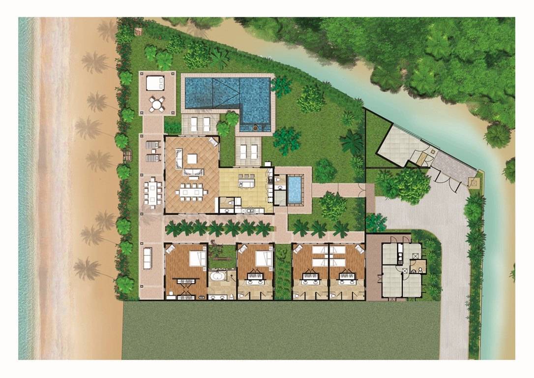 Cada habitación está convenientemente ubicada alrededor de su piscina privada; por lo tanto, puede disfrutar de una vista a la piscina y al mar directamente desde su habitación. Da unos pasos y te encontrarás en la suave arena de la playa justo en frente de tu villa, disfrutando de una fascinante puesta de sol mientras los colores se mezclan con el azul del mar. Respire aire fresco; esta es una experiencia que enganchará a todos sus sentidos.