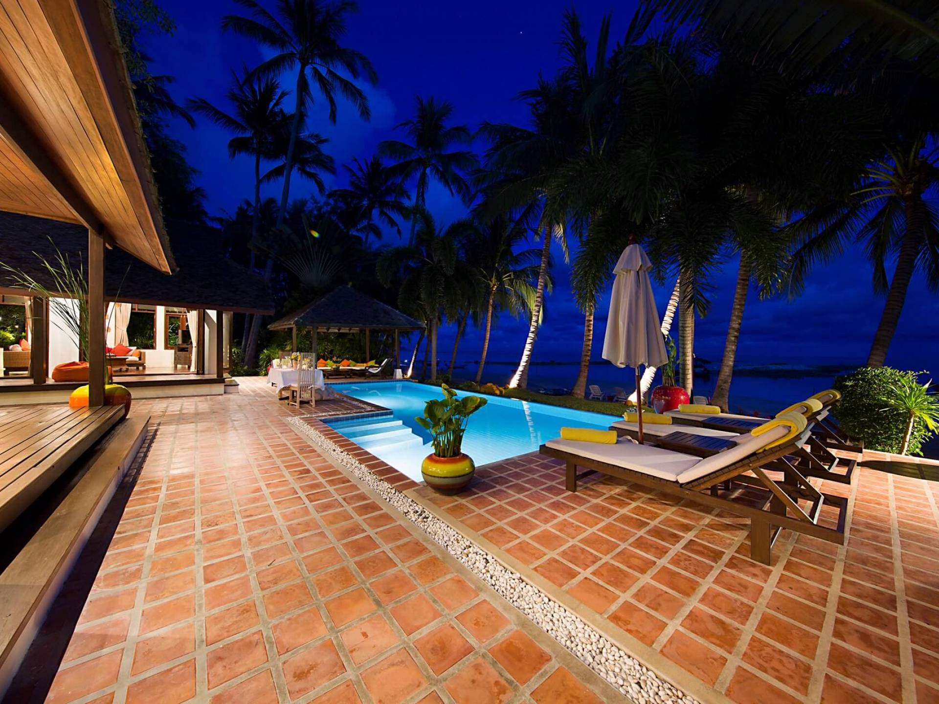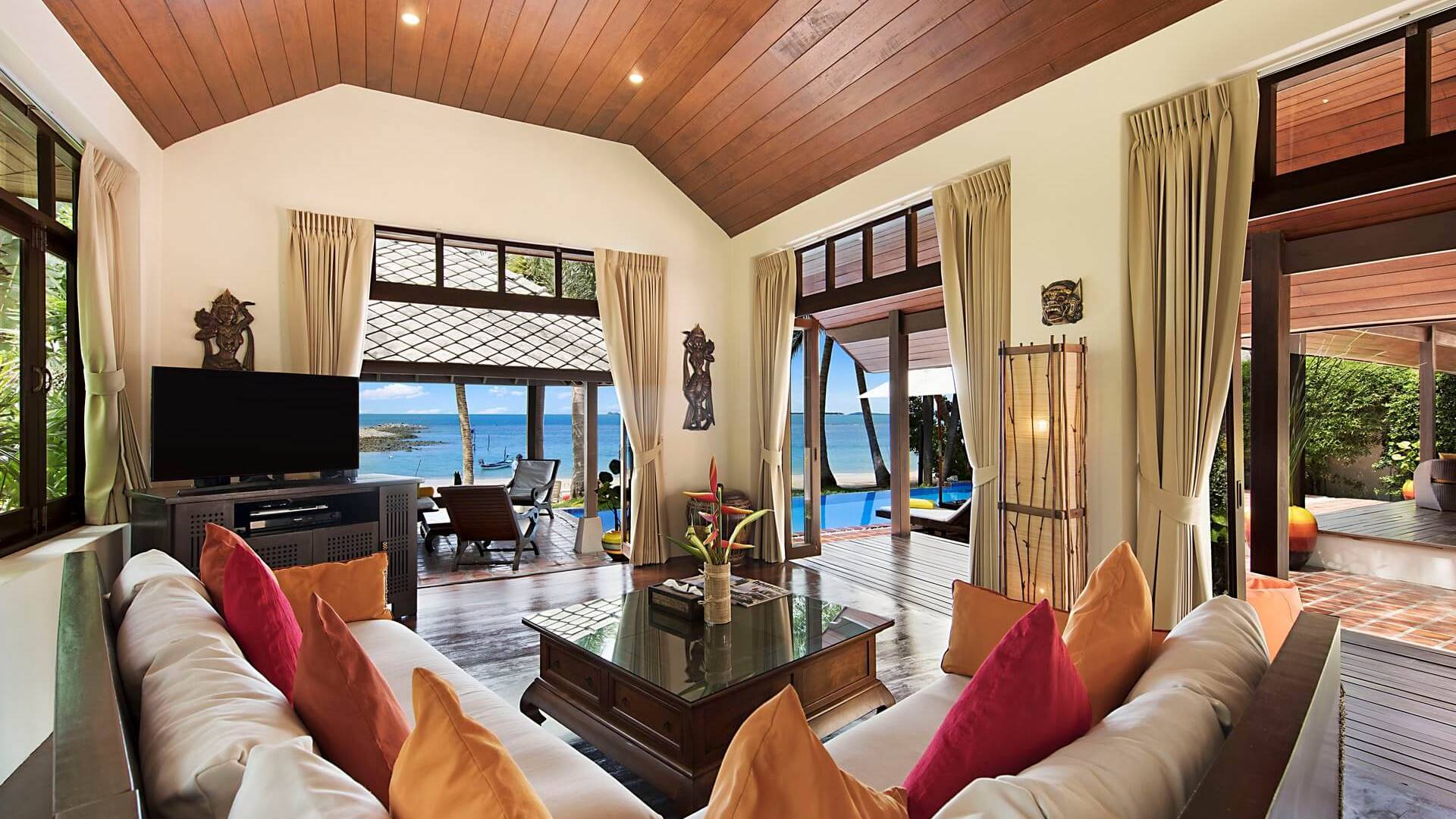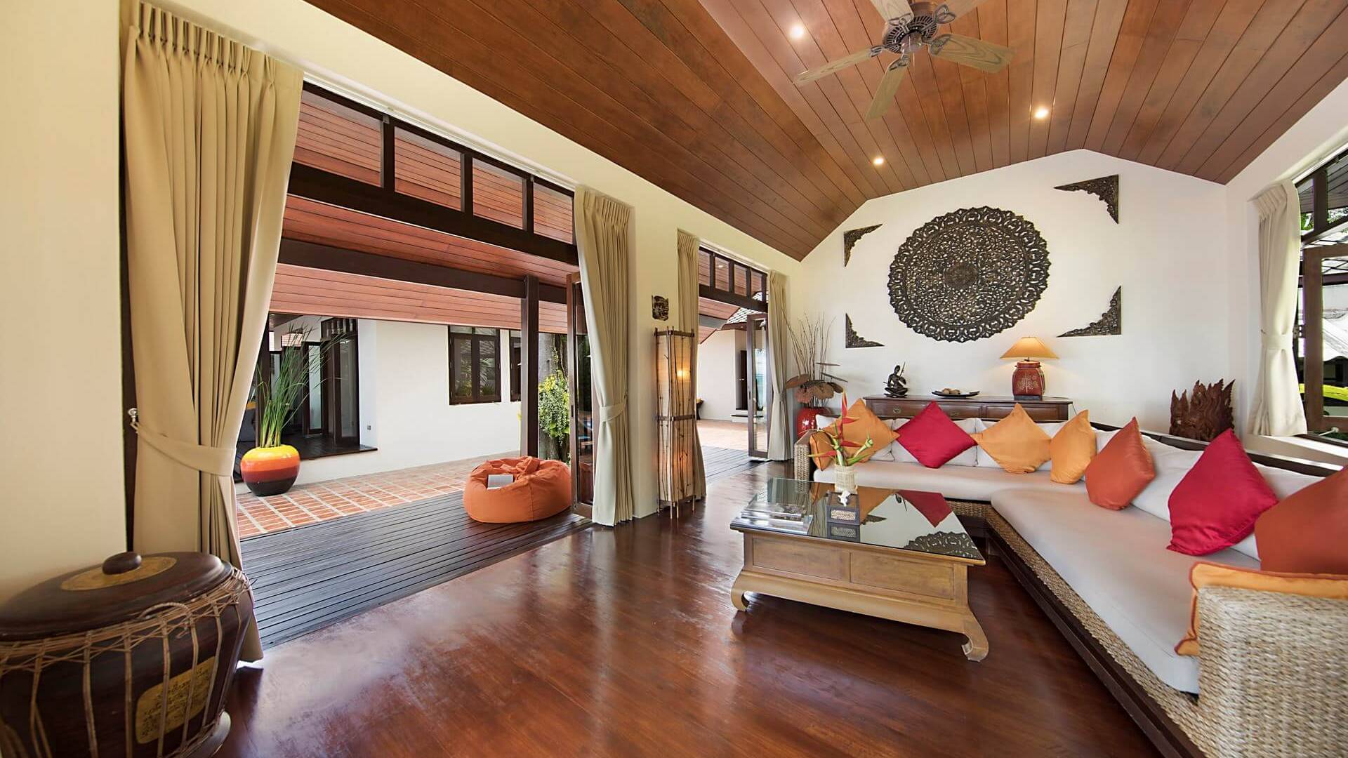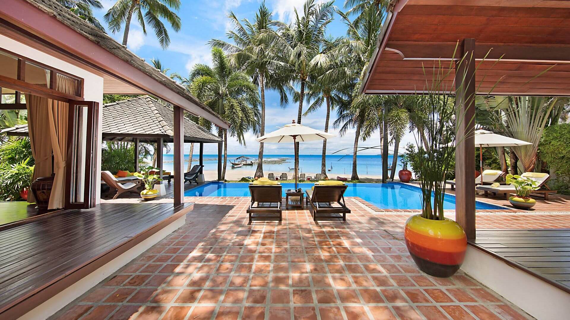 Villa Ban Laem Sor Samui se basa en una fusión tropical y un concepto de vida al aire libre. Ban Laem Sor se basa en una fusión tropical y un concepto de vida al aire libre. La villa se divide en cuatro pabellones. Más cerca de la playa se encuentra el pabellón de estar en un lado y los dos dormitorios principales en el otro. Un poco más atrás se encuentran los otros dos pabellones que albergan la cocina, el comedor y dos dormitorios más. El resto de la propiedad está cubierto con baldosas de terracota lisas y terrazas de madera.