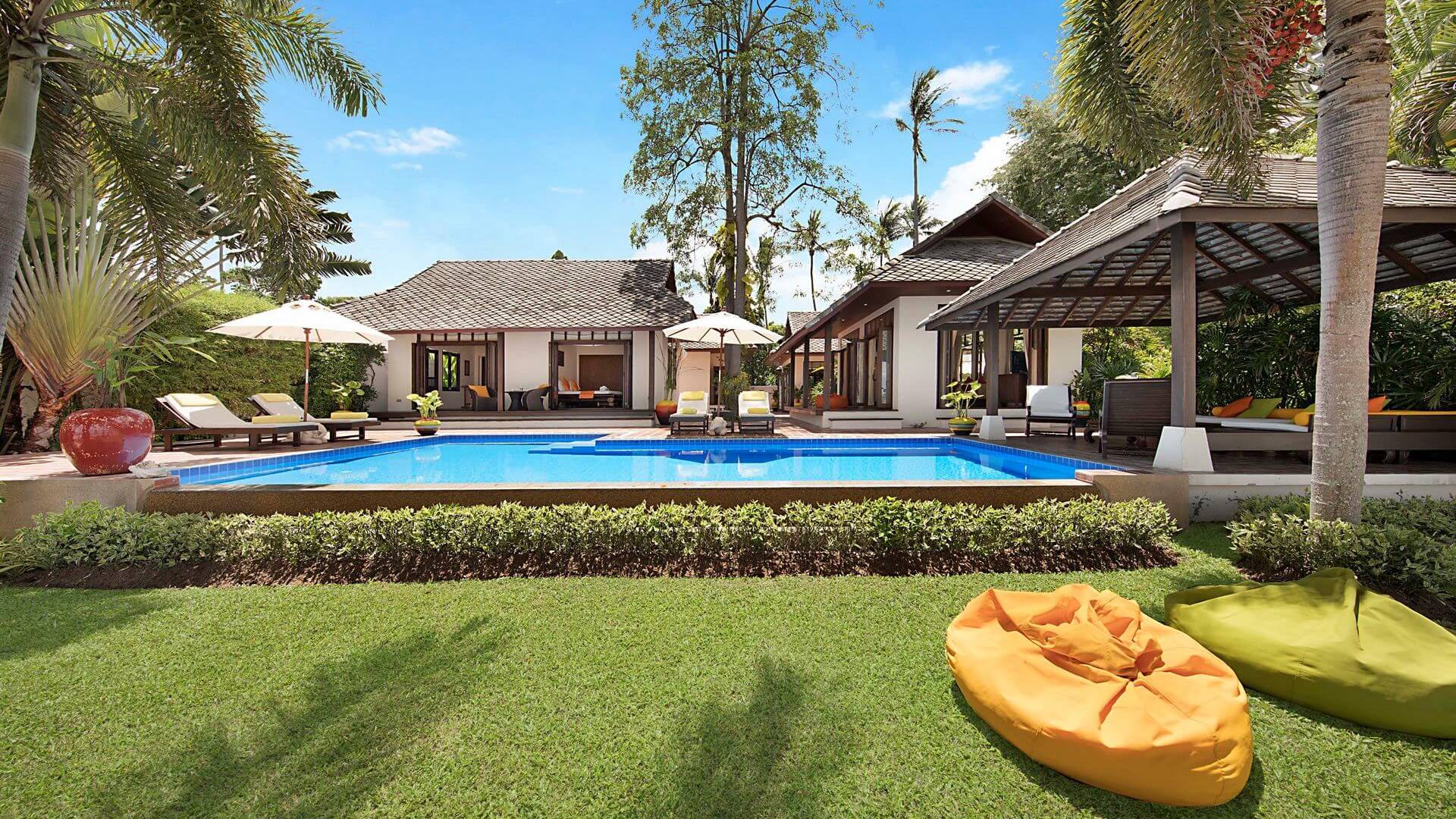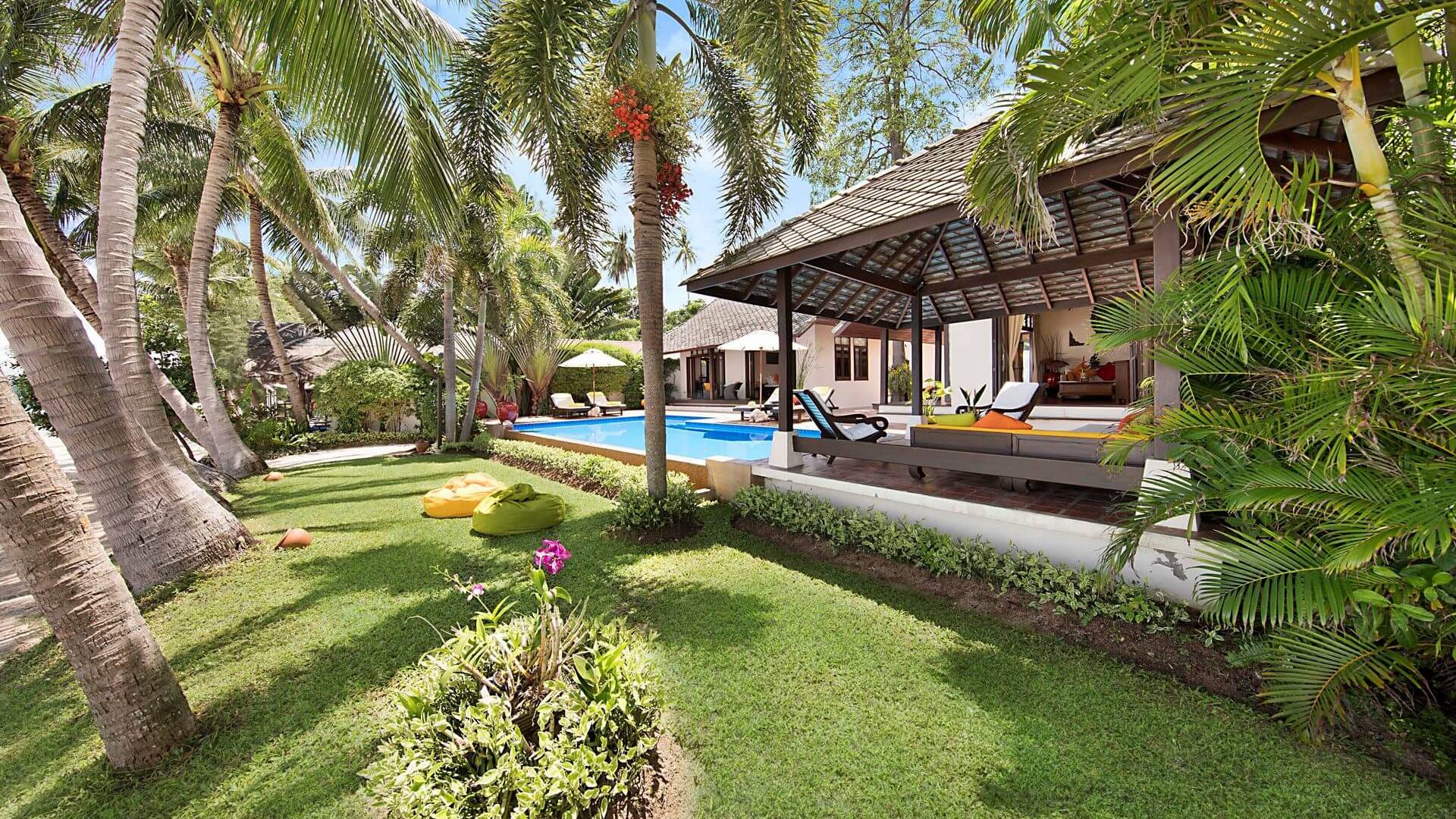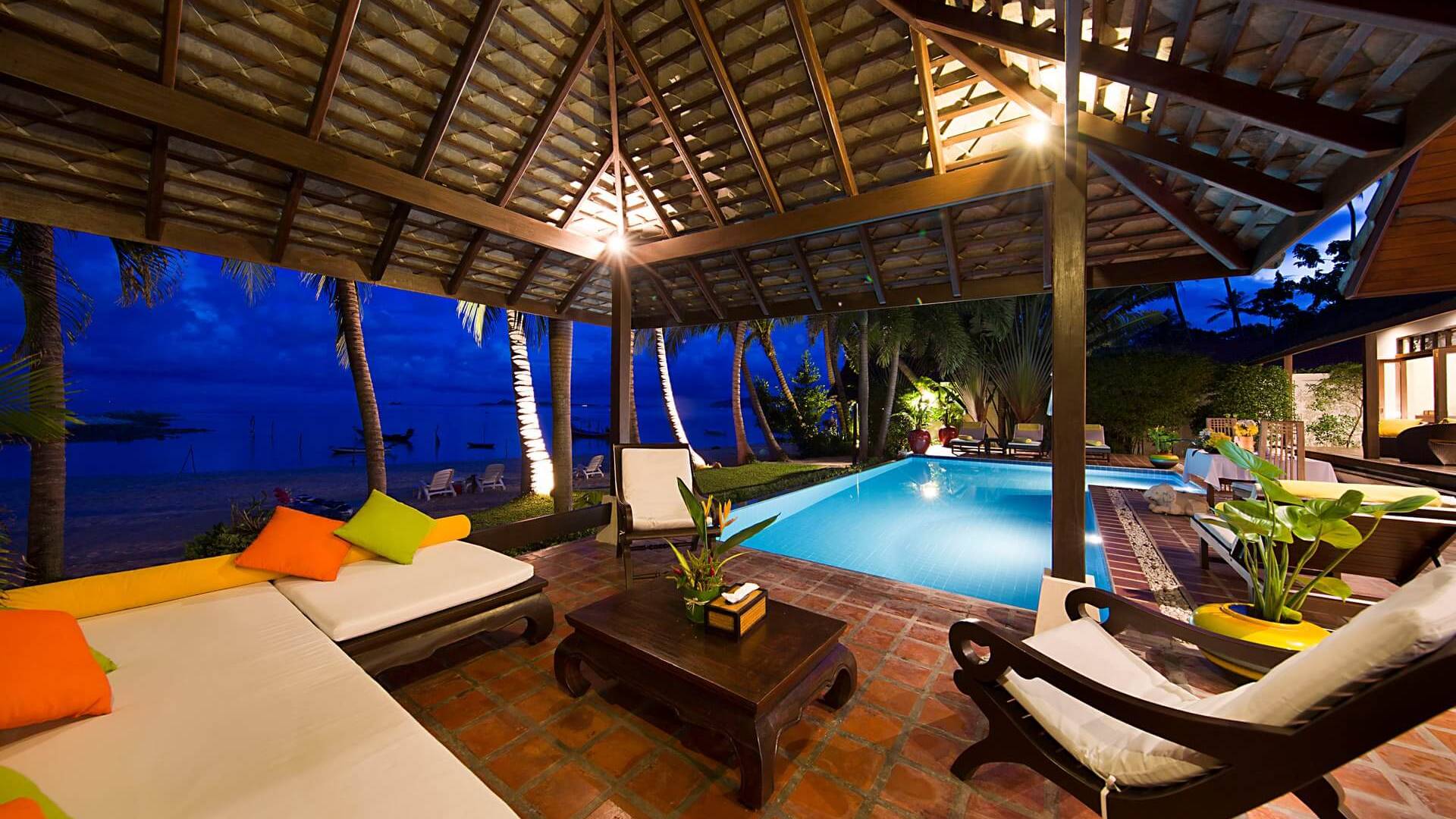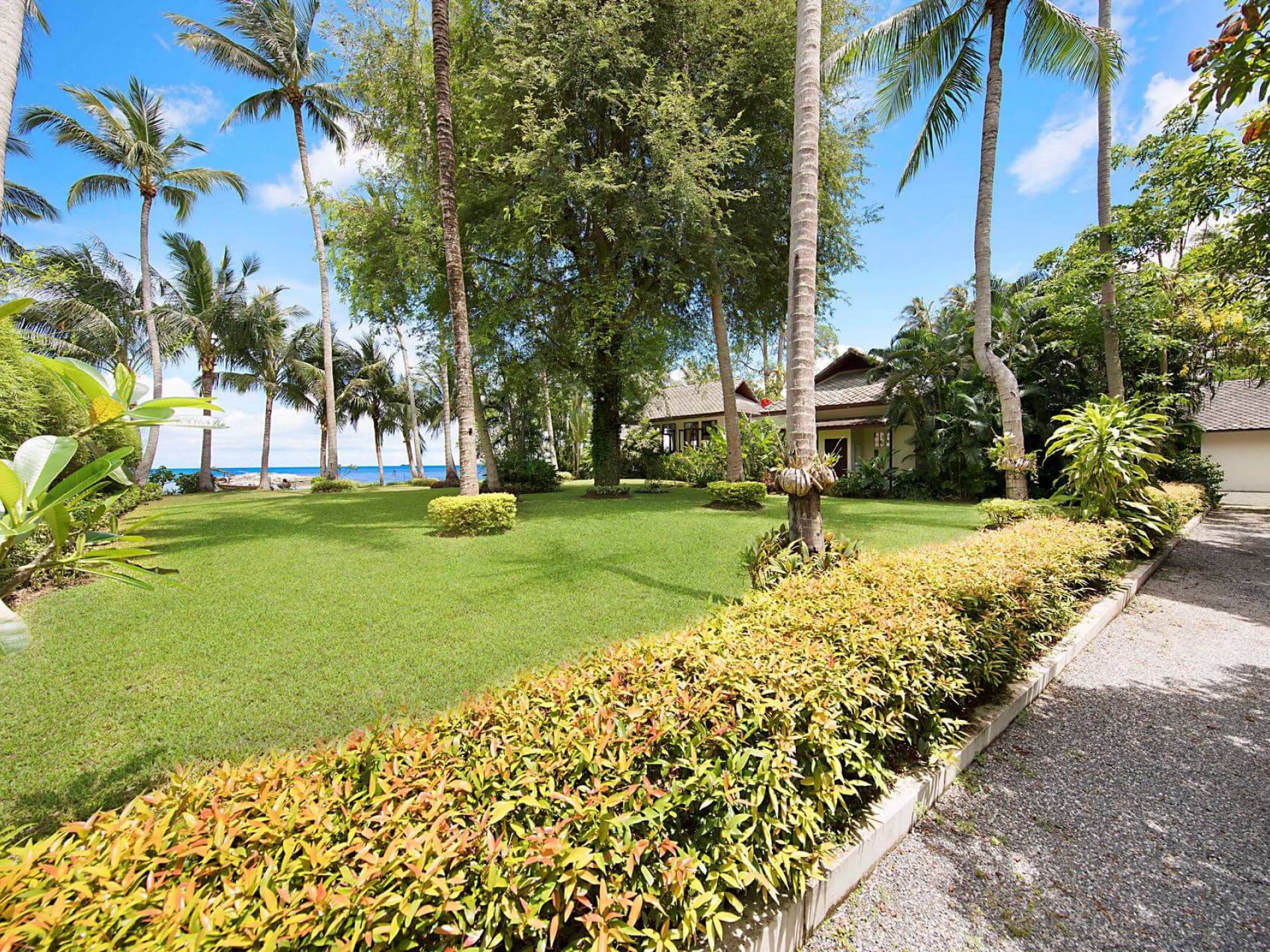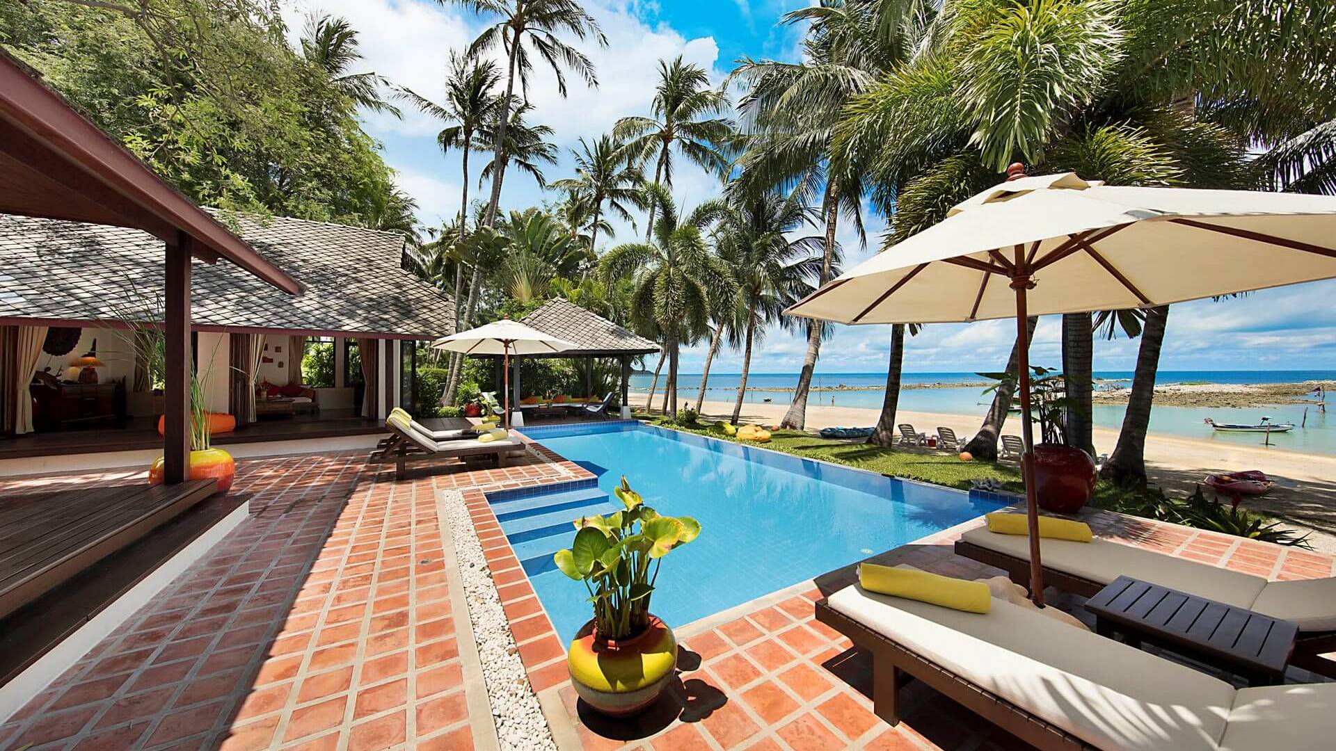 Villa Ban Laem Sor Samui se basa en una fusión tropical y un concepto de vida al aire libre. Ban Laem Sor se basa en una fusión tropical y un concepto de vida al aire libre. La villa se divide en cuatro pabellones. Más cerca de la playa se encuentra el pabellón de estar en un lado y los dos dormitorios principales en el otro. Un poco más atrás se encuentran los otros dos pabellones que albergan la cocina, el comedor y dos dormitorios más. El resto de la propiedad está cubierto con baldosas de terracota lisas y terrazas de madera.