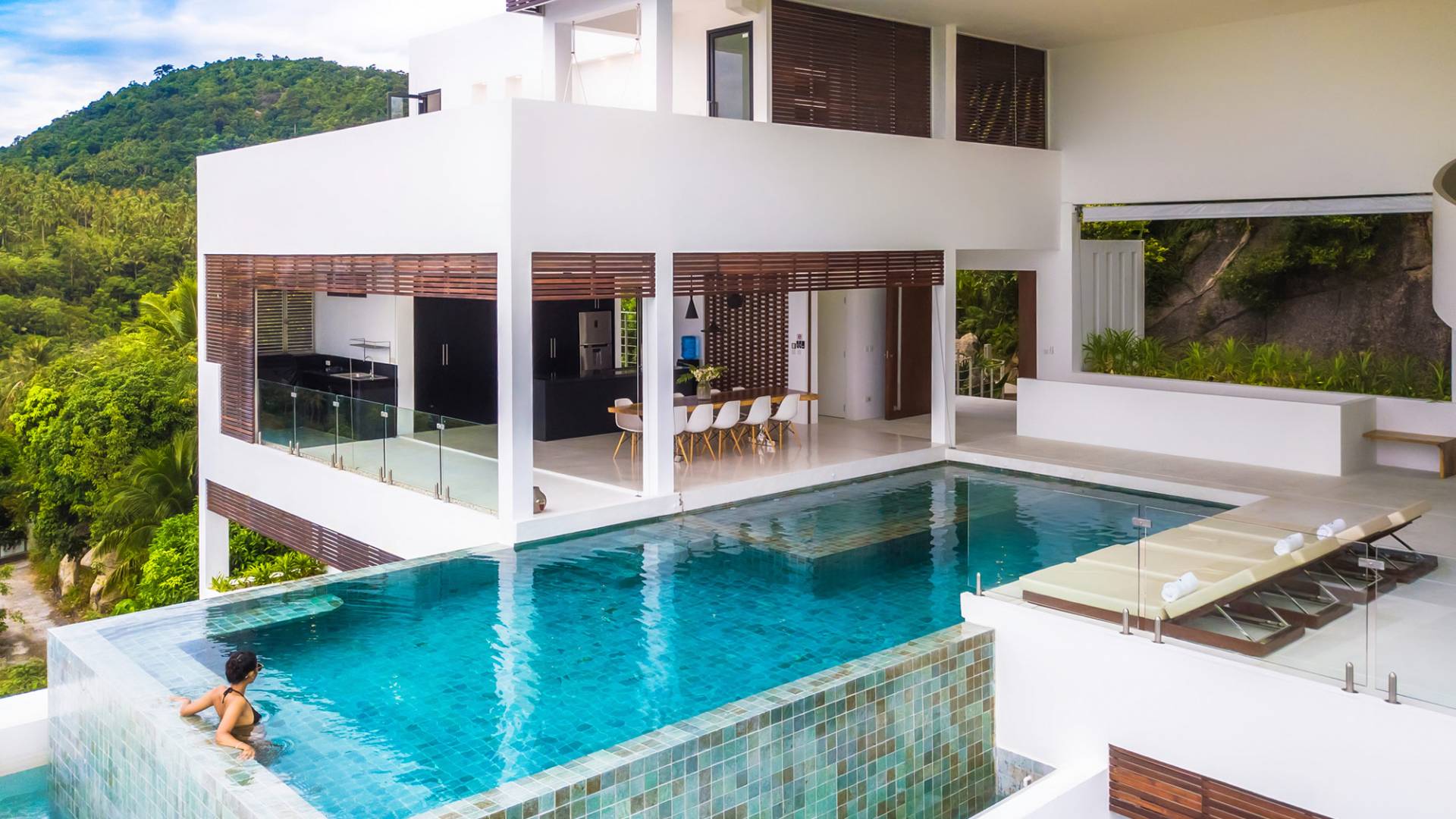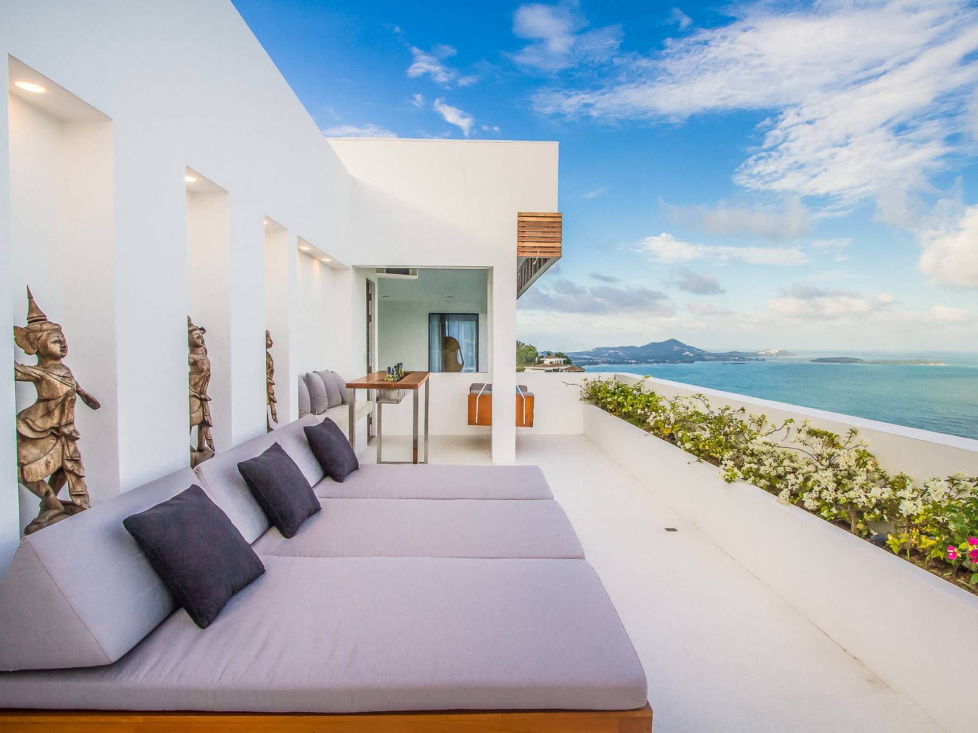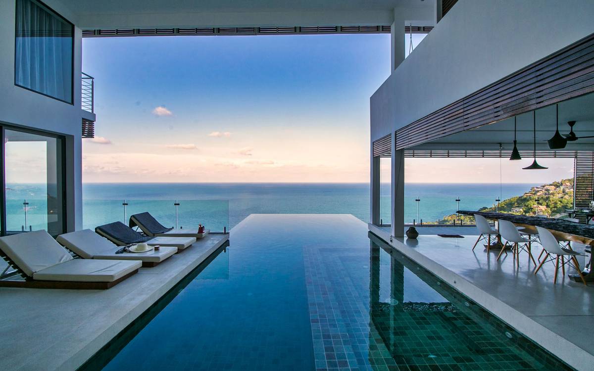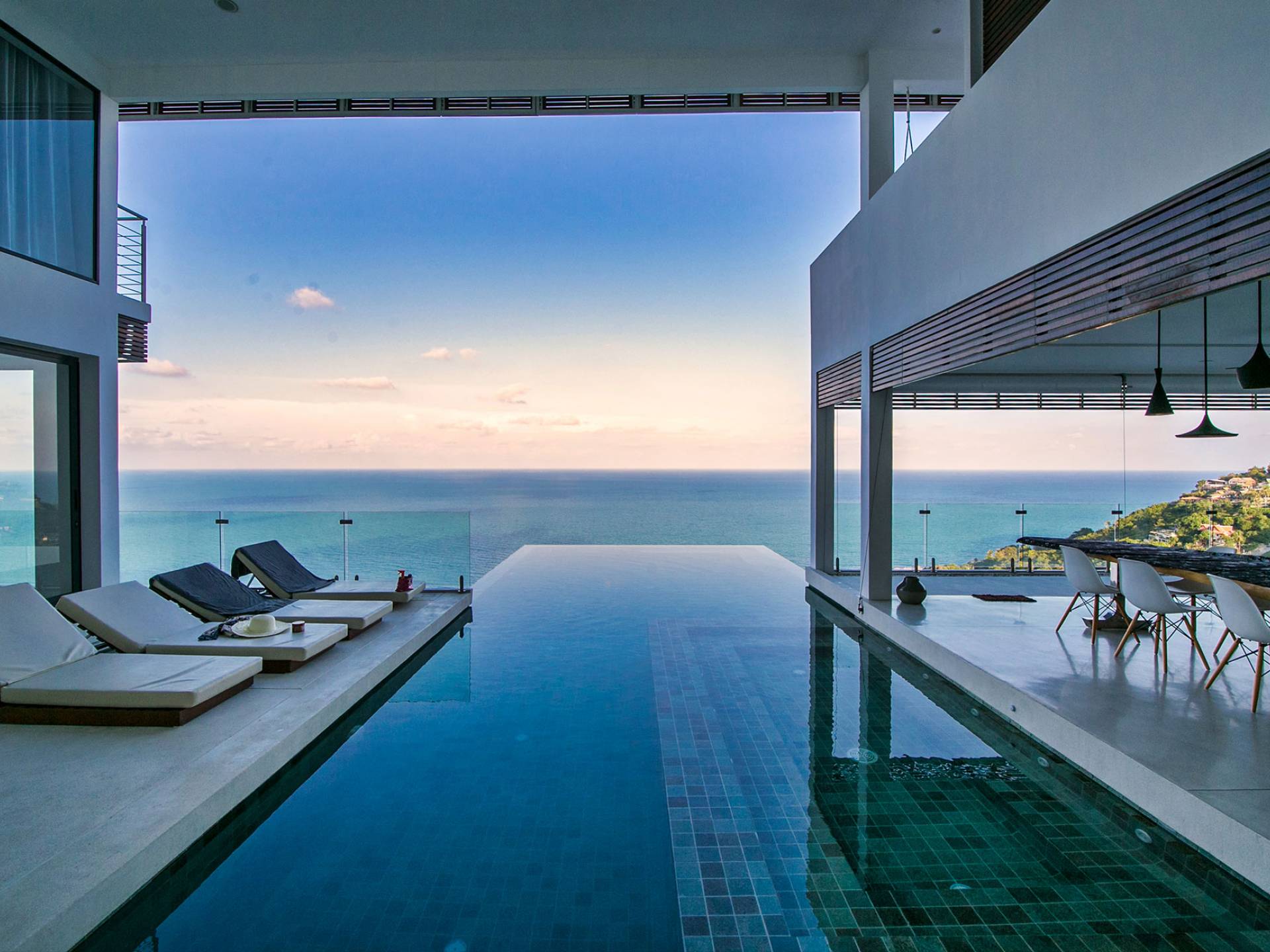 180 Samui Villa se encuentra en una colina aislada con un panorama impresionante de calas de coral, playas de arena blanca e islas pequeñas, la villa simplemente tenía que llamarse 180. Diseñada para aprovechar al máximo el magnífico entorno, los lujosos interiores fluyen perfectamente a los espacios al aire libre, creando una sensación de apertura, lo que hace que 180 Samui sea el lugar perfecto para experimentar la vida tropical moderna.