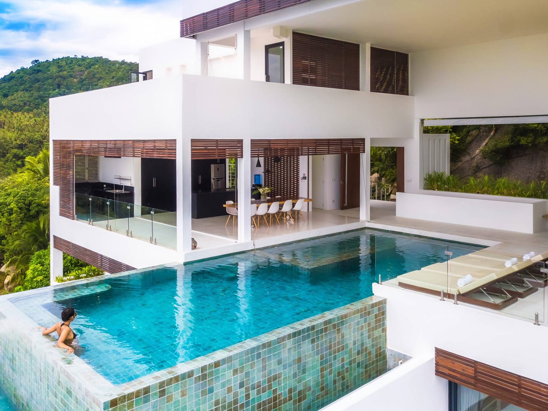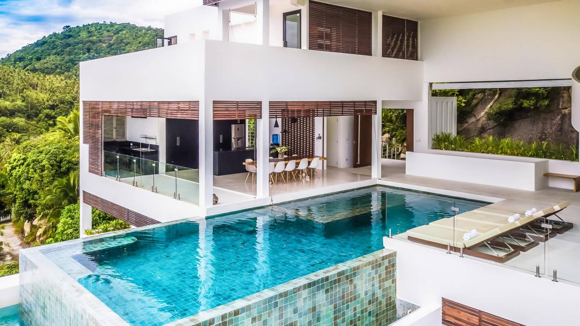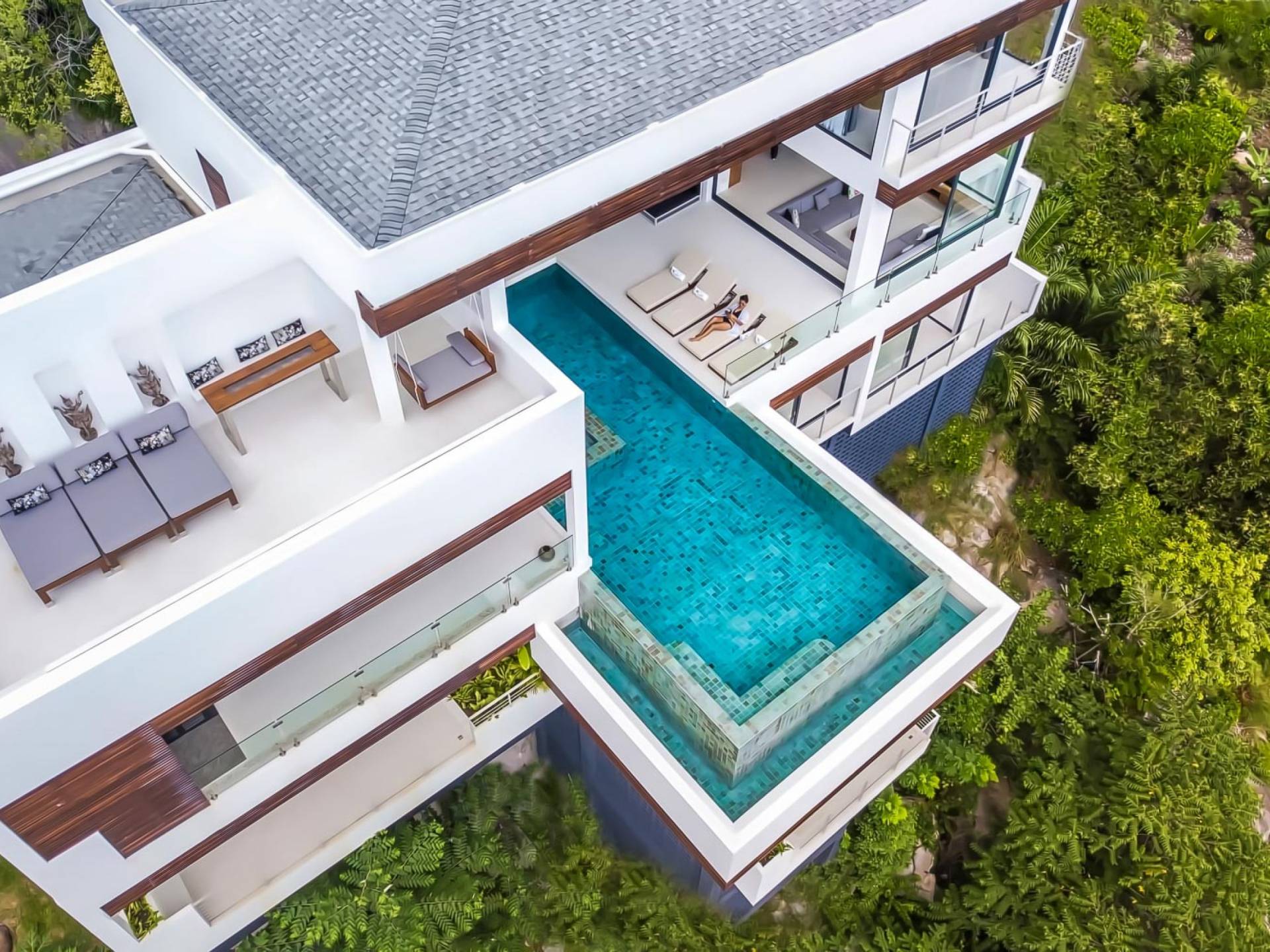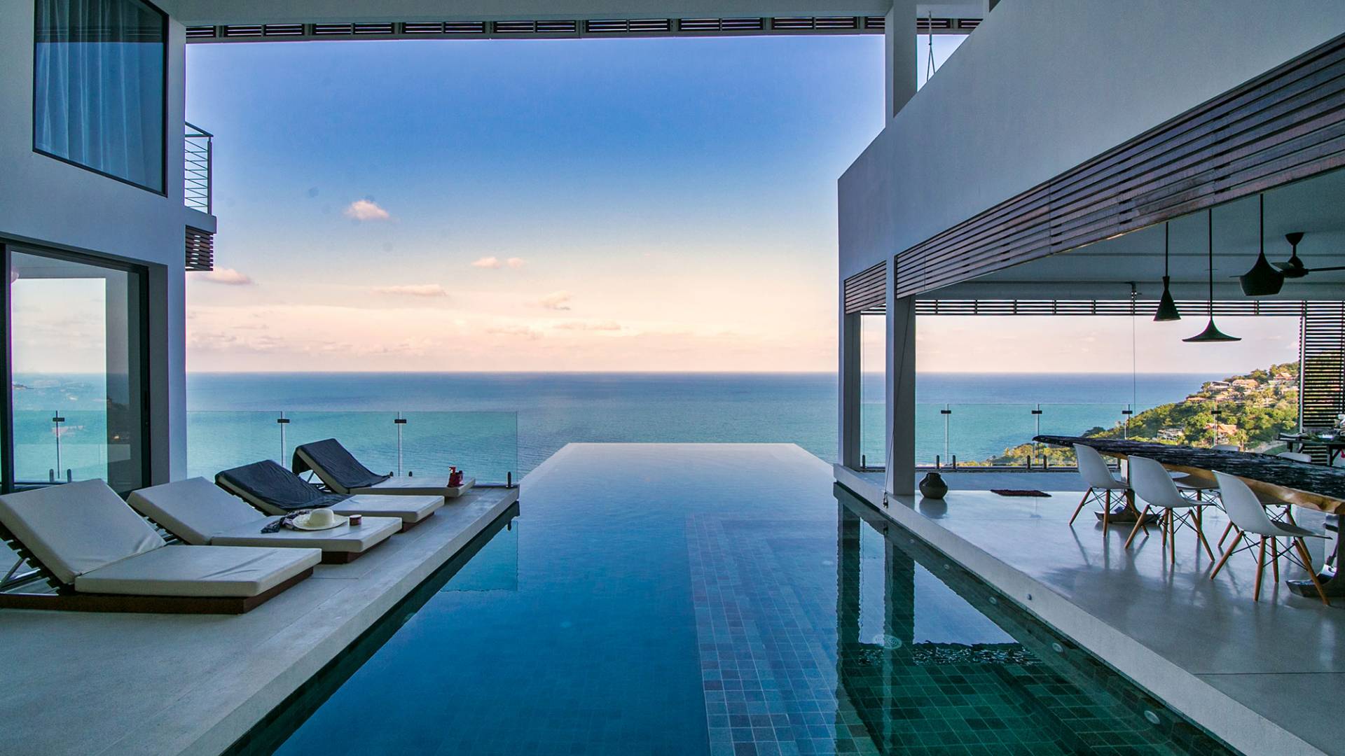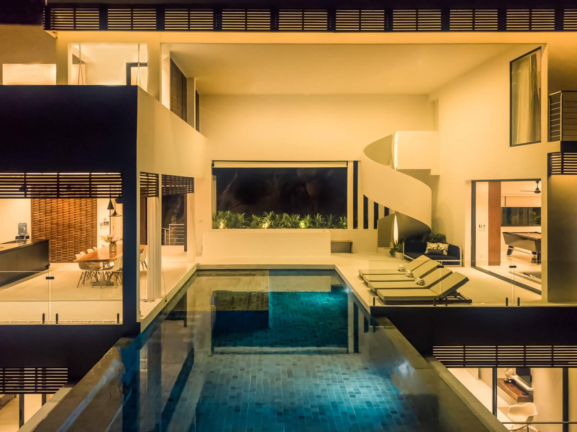 180 Samui Villa se encuentra en una colina aislada con un panorama impresionante de calas de coral, playas de arena blanca e islas pequeñas, la villa simplemente tenía que llamarse 180. Diseñada para aprovechar al máximo el magnífico entorno, los lujosos interiores fluyen perfectamente a los espacios al aire libre, creando una sensación de apertura, lo que hace que 180 Samui sea el lugar perfecto para experimentar la vida tropical moderna.