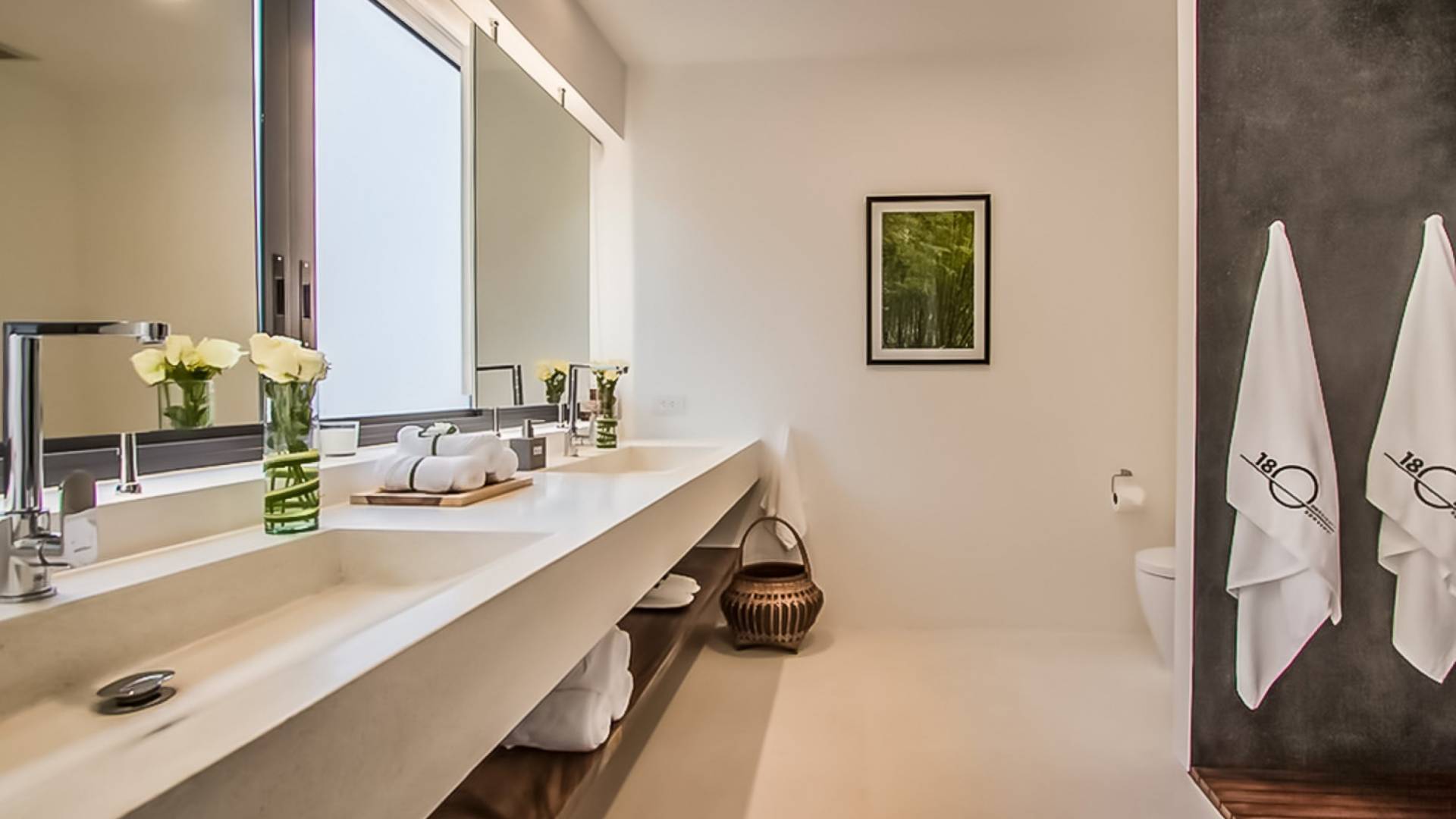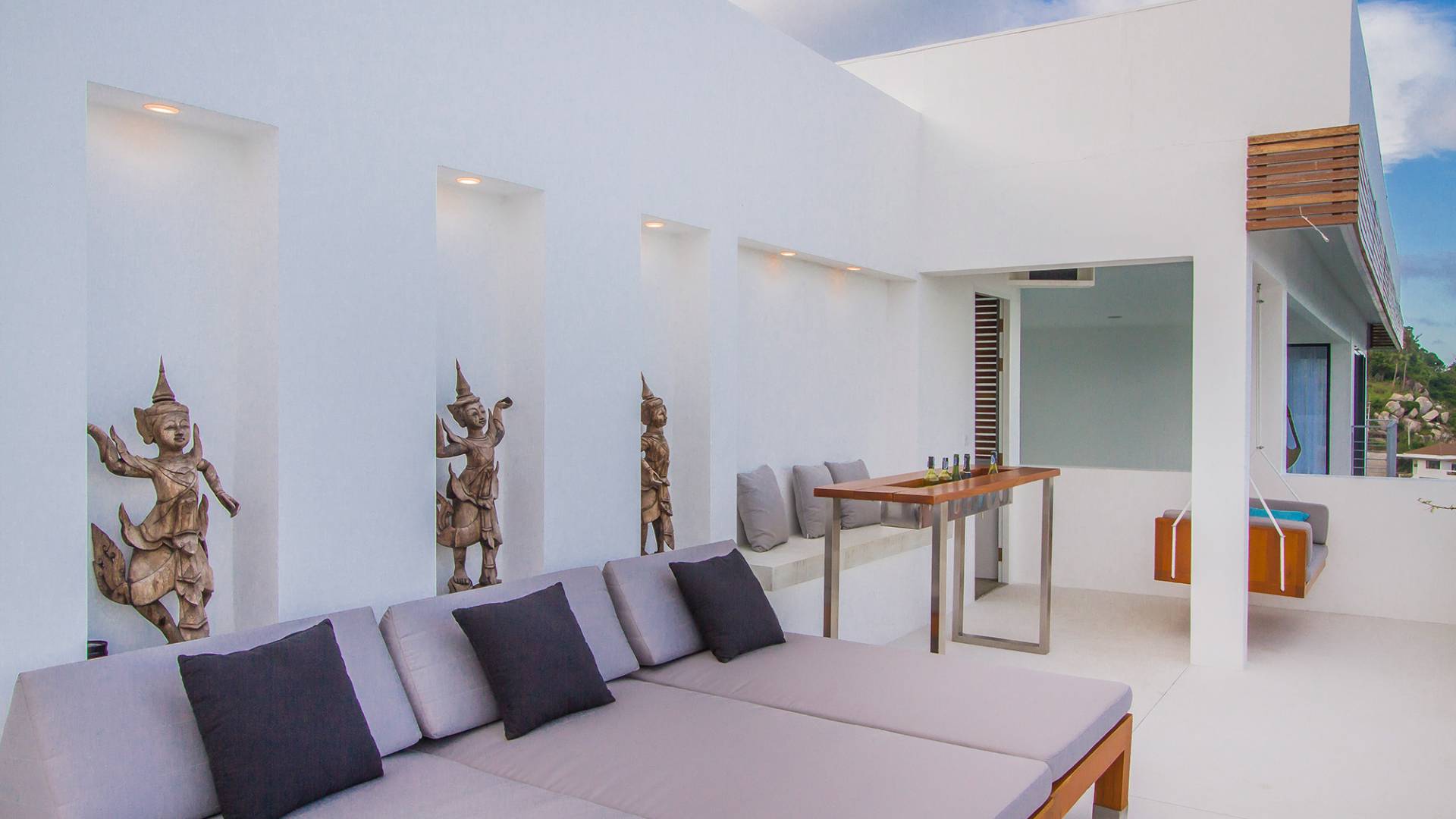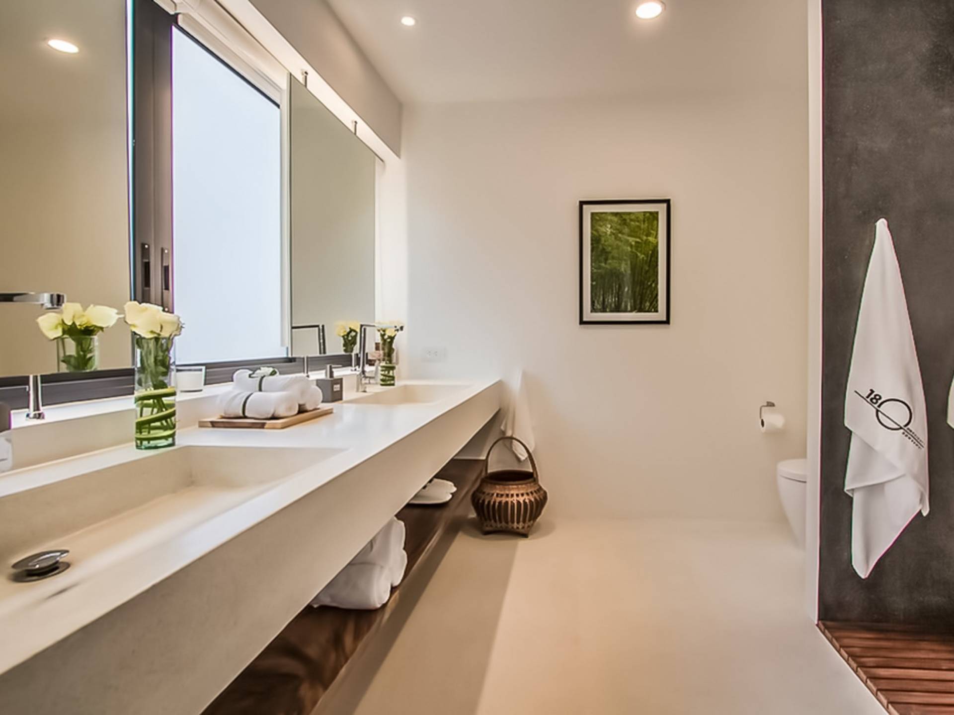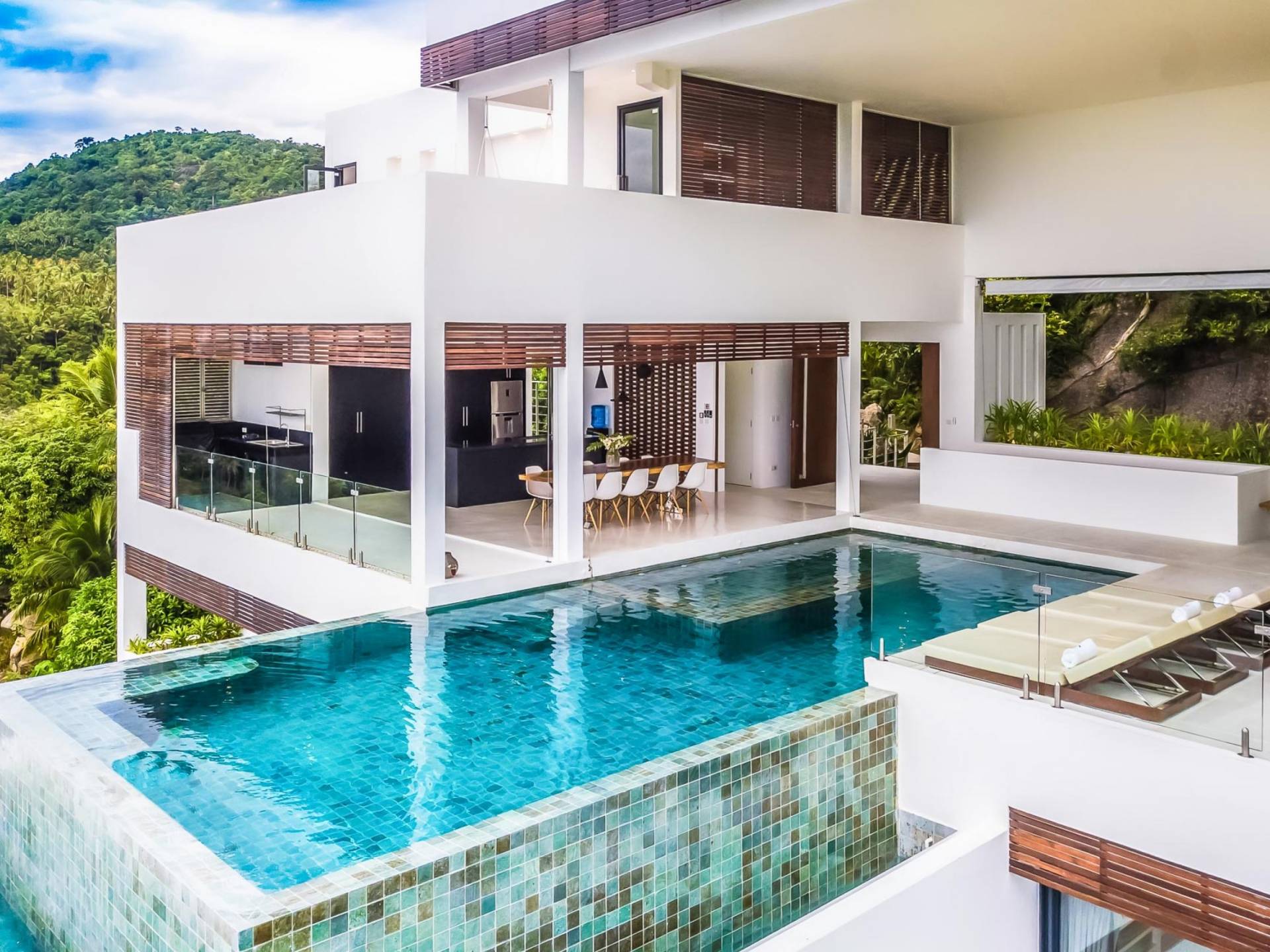180 Samui Villa se encuentra en una colina aislada con un panorama impresionante de calas de coral, playas de arena blanca e islas pequeñas, la villa simplemente tenía que llamarse 180. Diseñada para aprovechar al máximo el magnífico entorno, los lujosos interiores fluyen perfectamente a los espacios al aire libre, creando una sensación de apertura, lo que hace que 180 Samui sea el lugar perfecto para experimentar la vida tropical moderna.