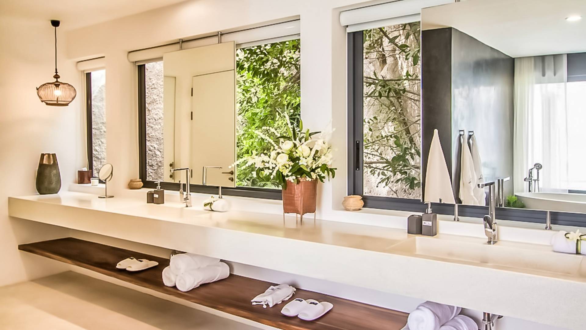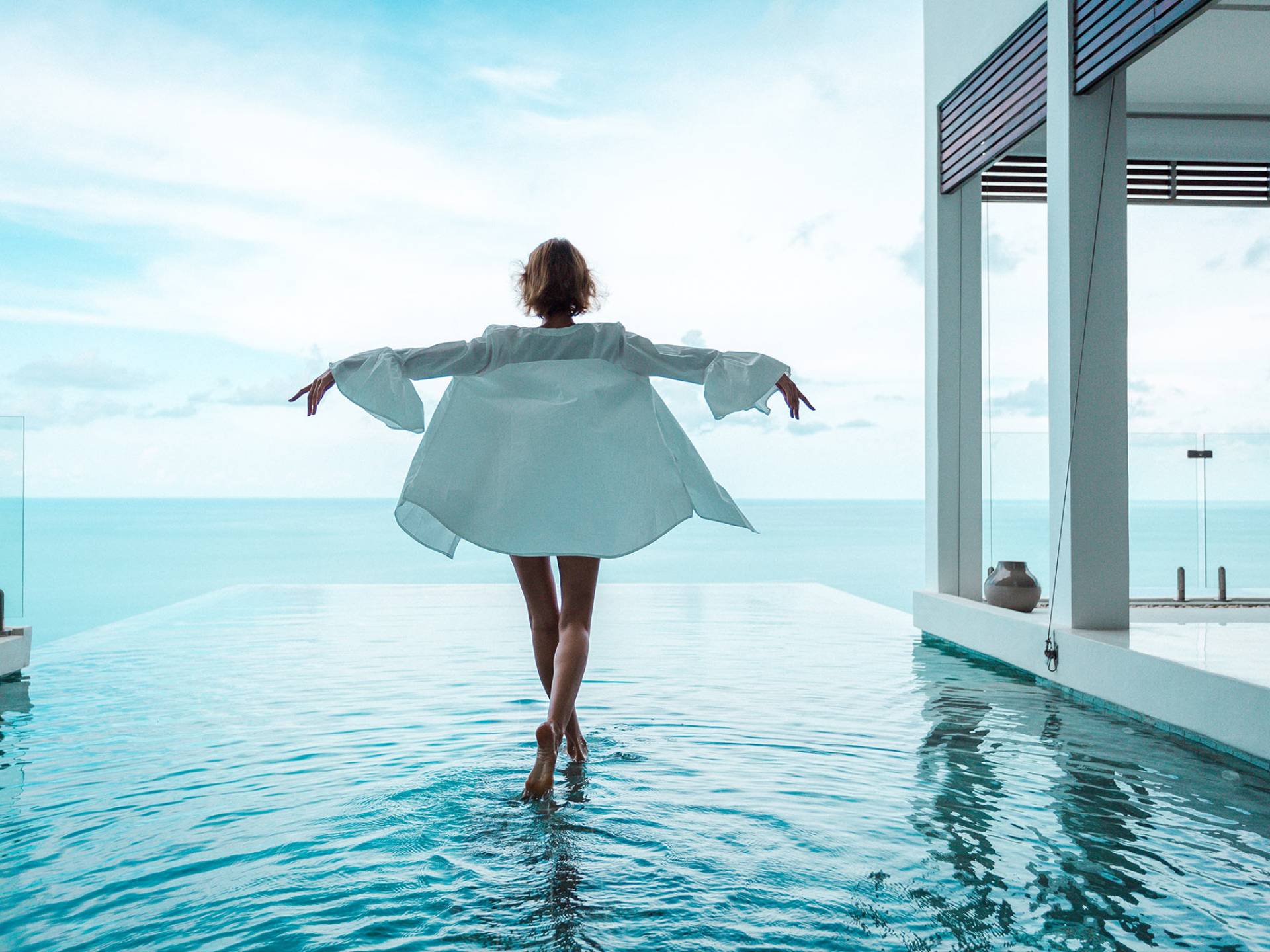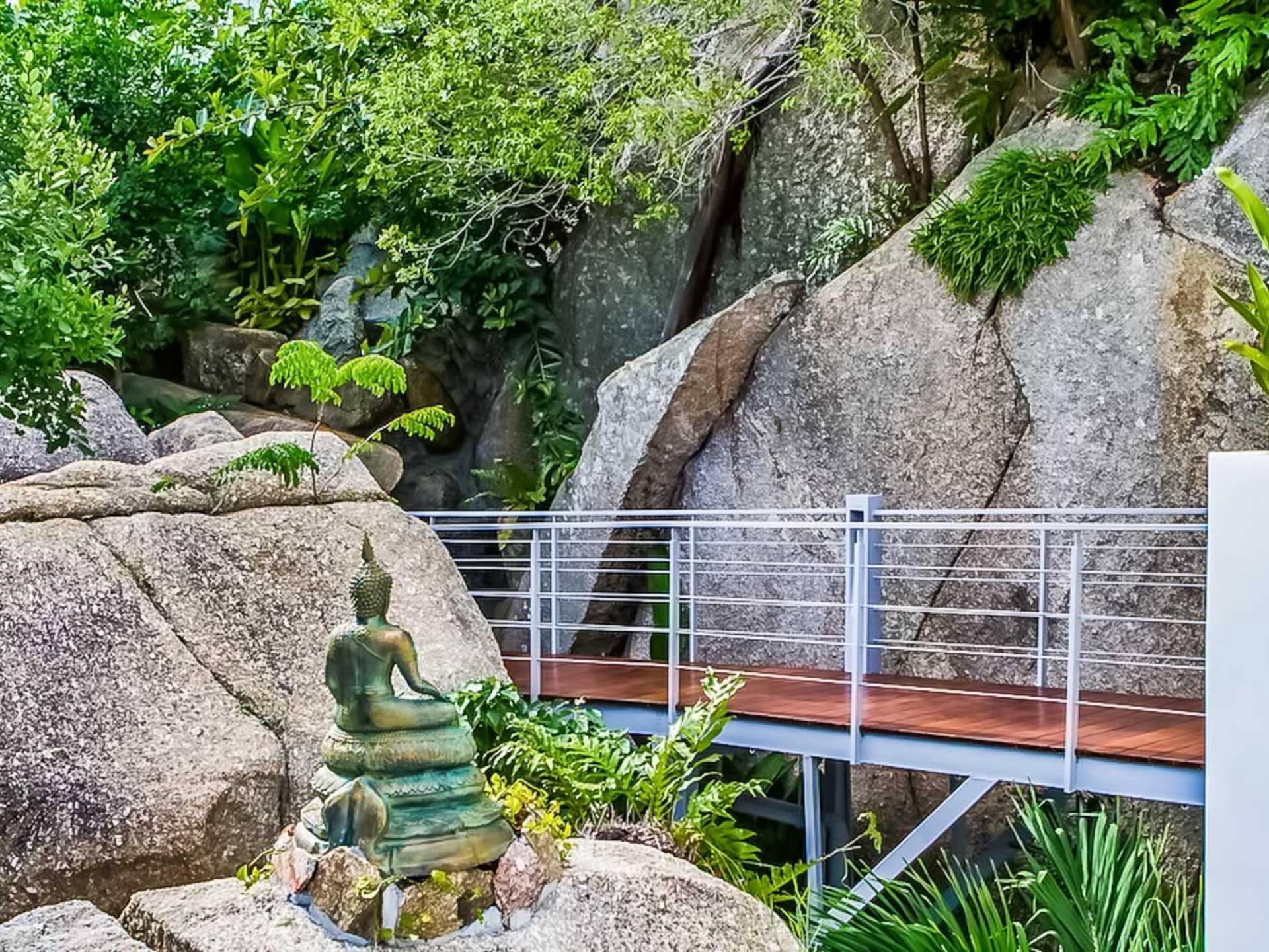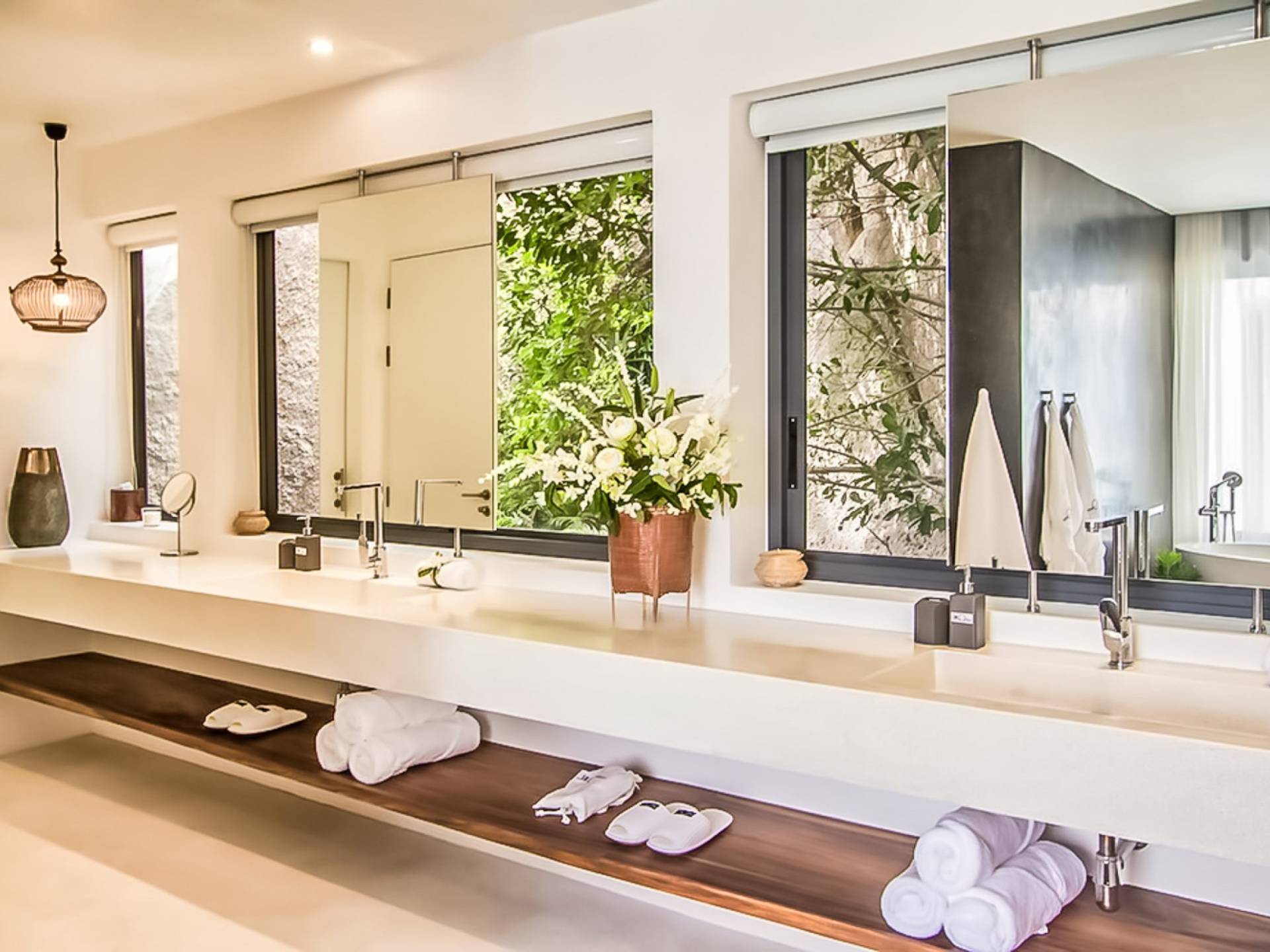 180 Samui Villa se encuentra en una colina aislada con un panorama impresionante de calas de coral, playas de arena blanca e islas pequeñas, la villa simplemente tenía que llamarse 180. Diseñada para aprovechar al máximo el magnífico entorno, los lujosos interiores fluyen perfectamente a los espacios al aire libre, creando una sensación de apertura, lo que hace que 180 Samui sea el lugar perfecto para experimentar la vida tropical moderna.