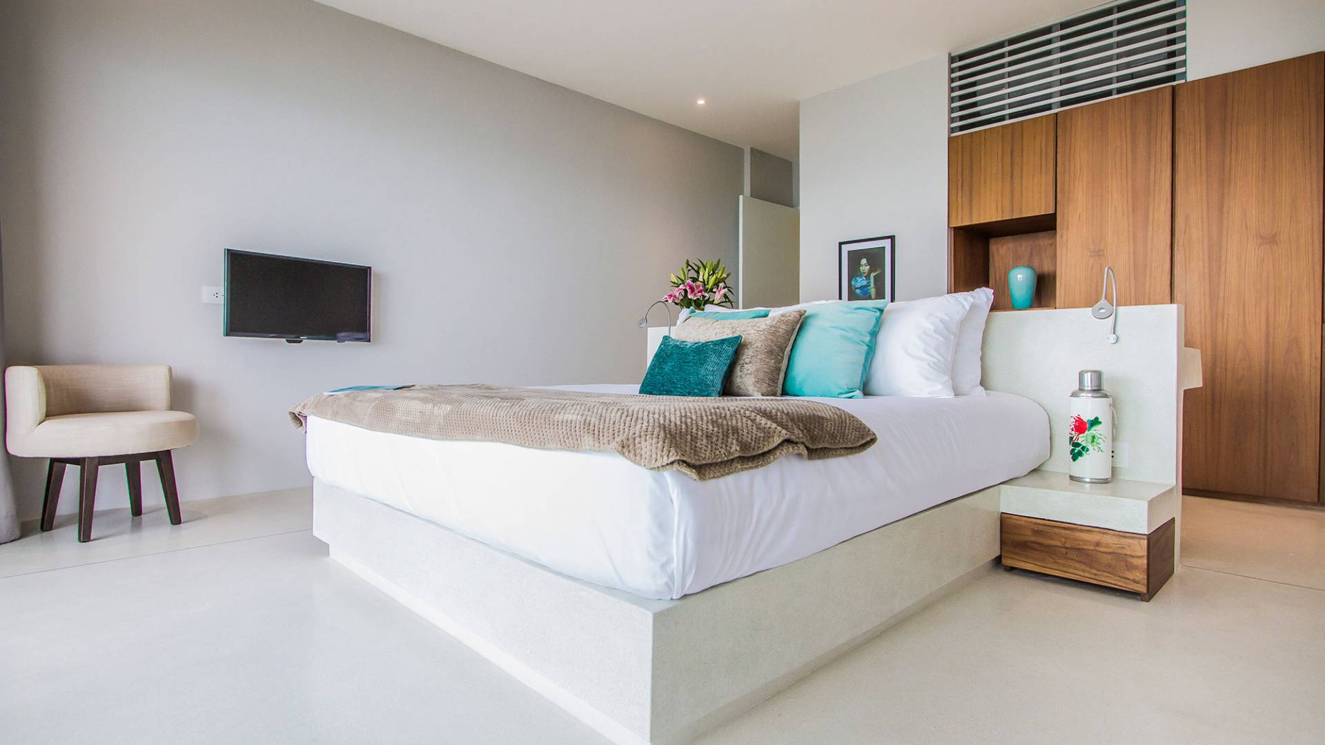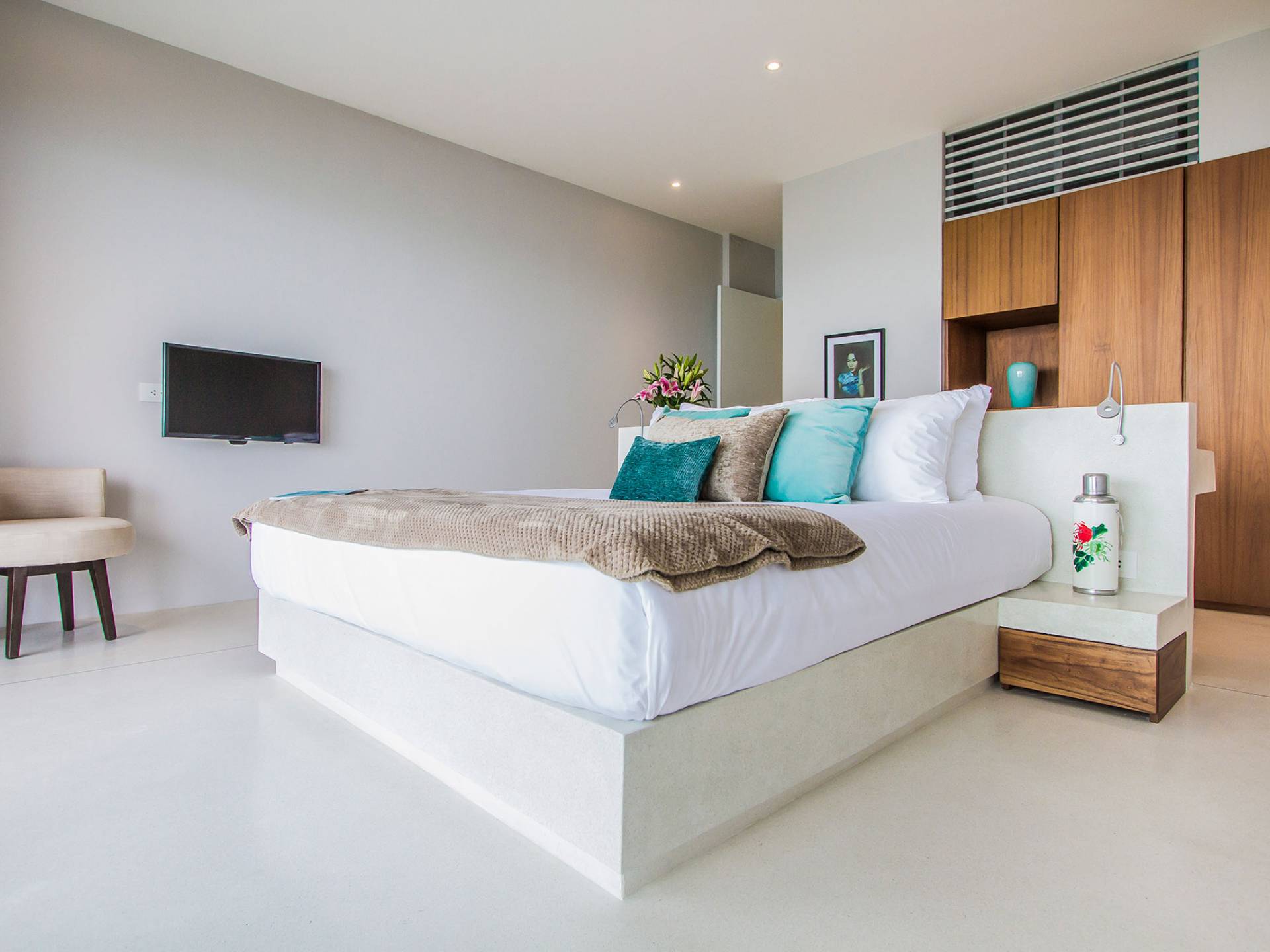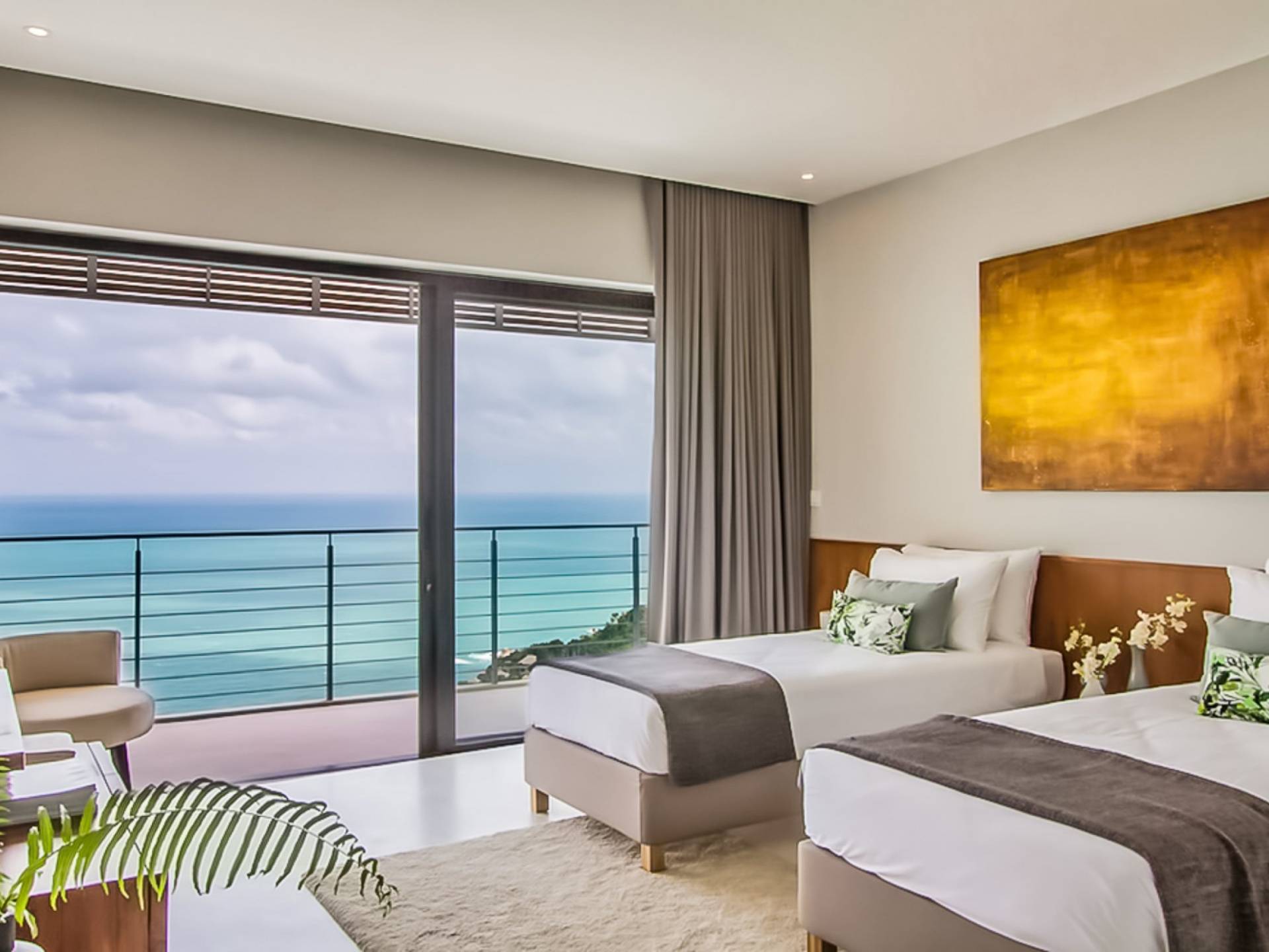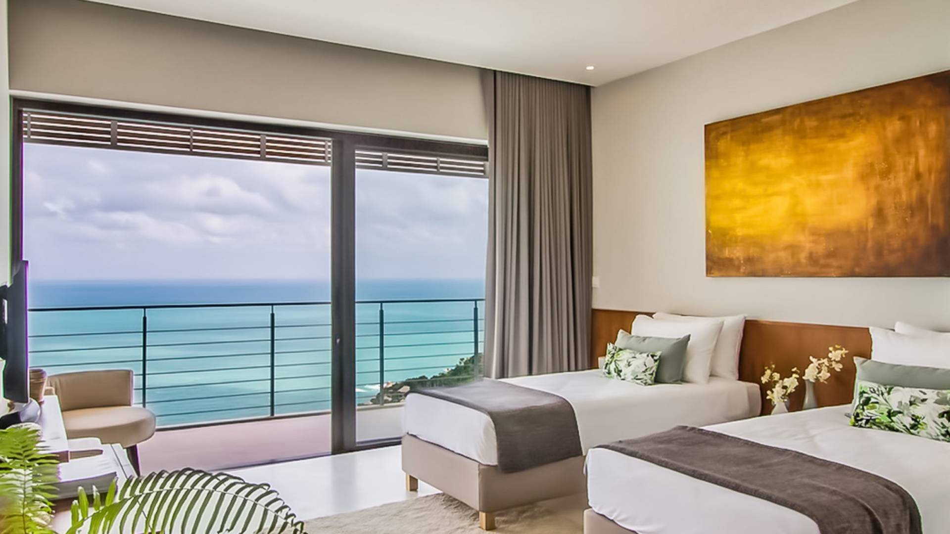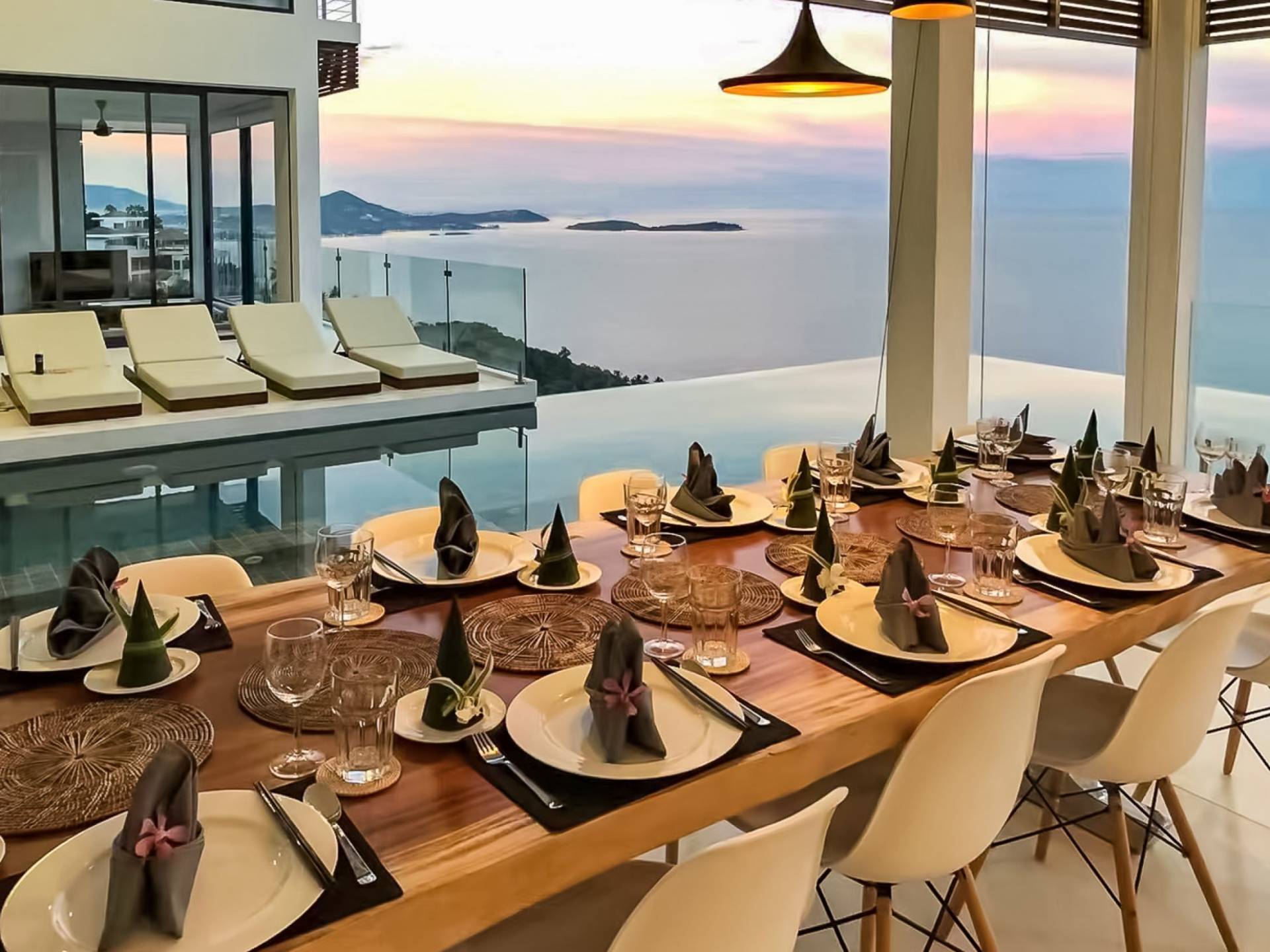 Hay 5 dormitorios, todos suntuosamente equipados con televisores inteligentes con Internet, baños revestidos de terrazo e impresionantes vistas al mar. Una cocina interior y exterior totalmente equipada donde el personal y el chef profesional pueden preparar comidas deliciosas y saludables para que disfrutes durante tu estancia. Le permite probar algunos platos tailandeses clásicos preparados, cocinados y servidos con autenticidad. Puede ver, o incluso unirse a la cocina, ya que todo se prepara fresco en la villa.