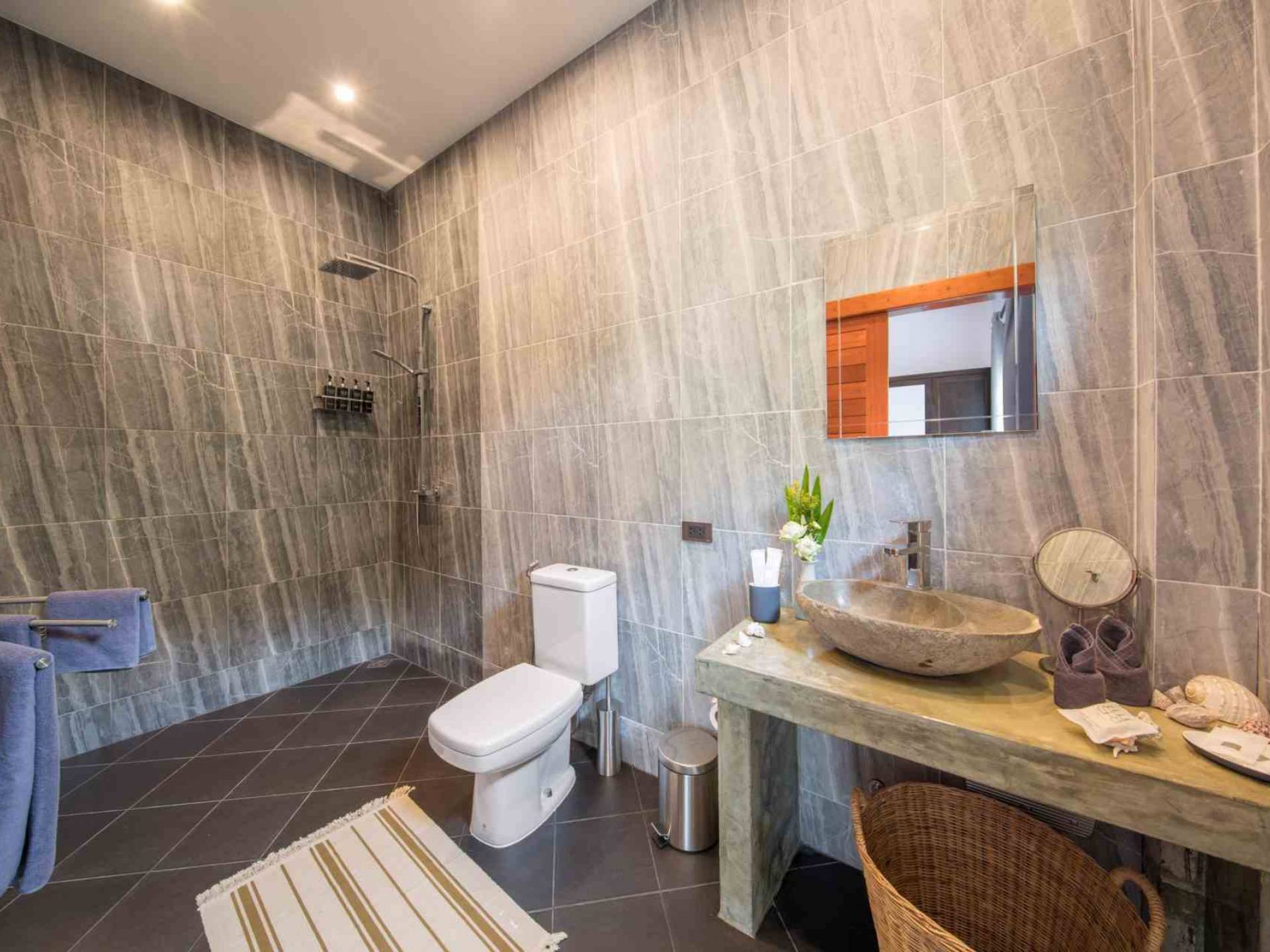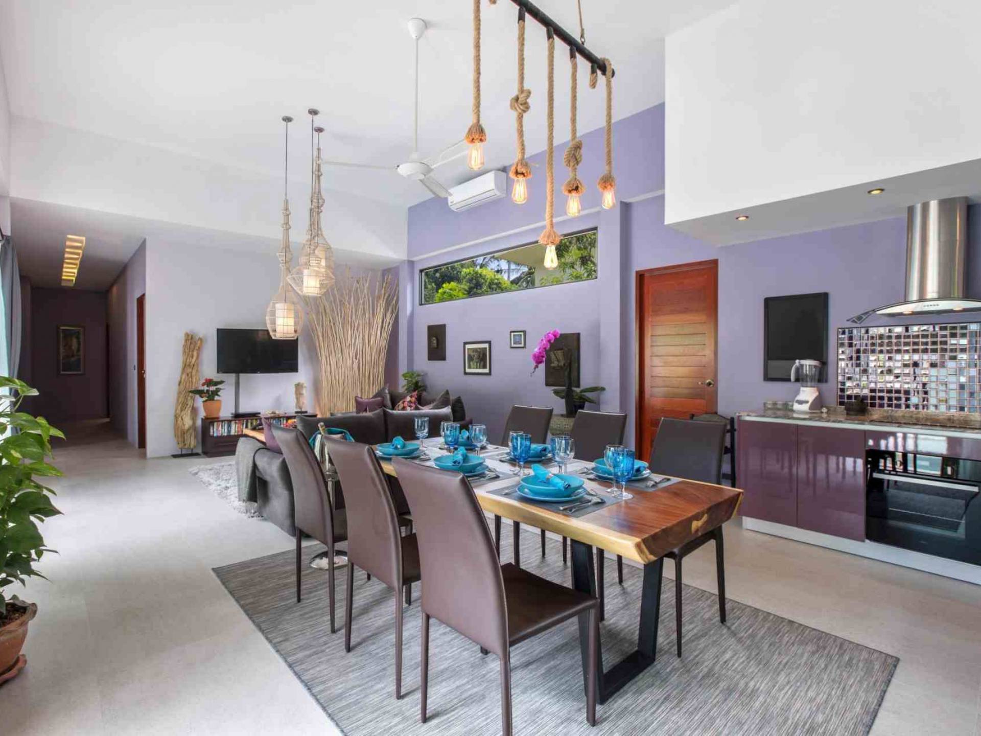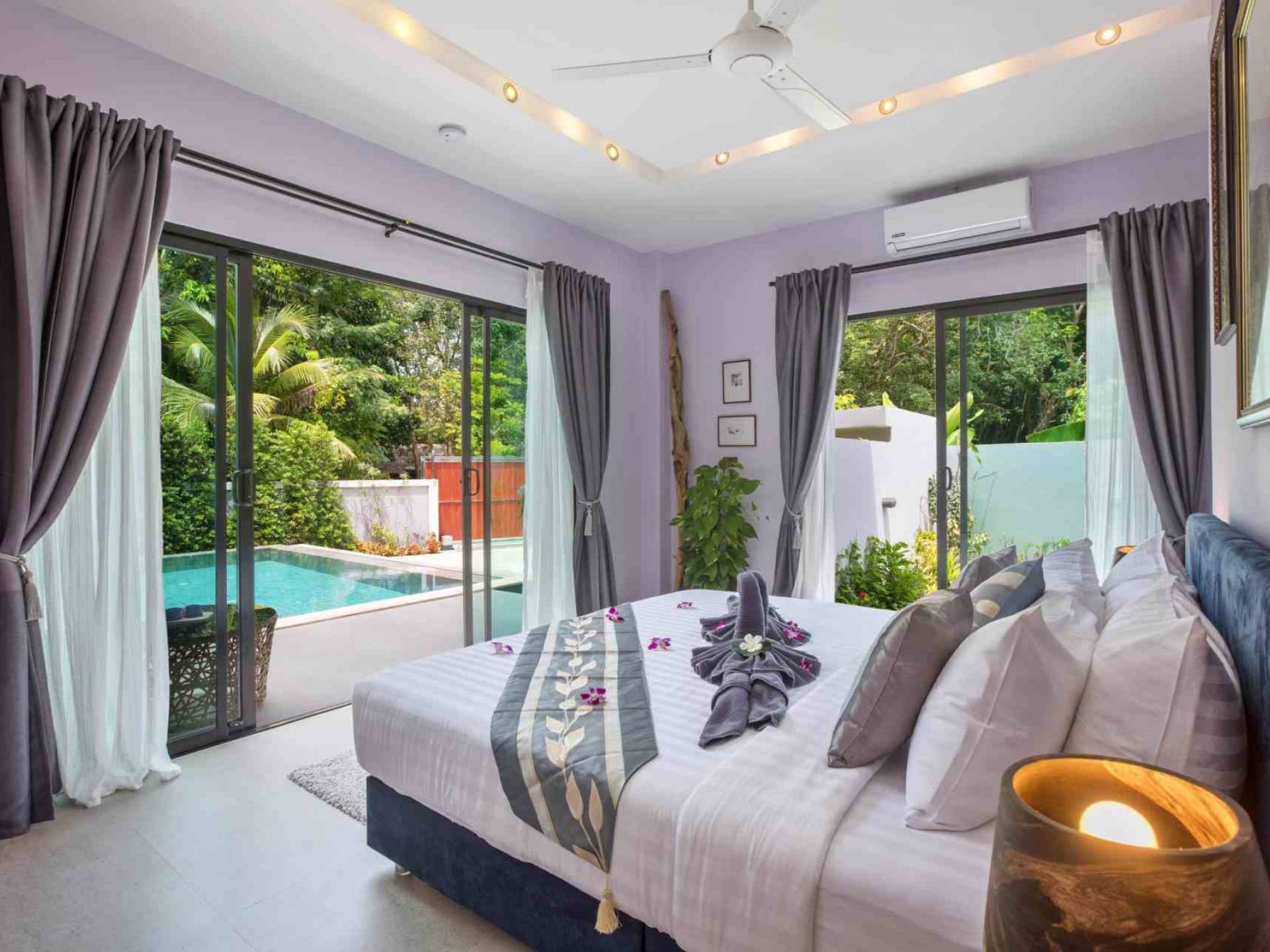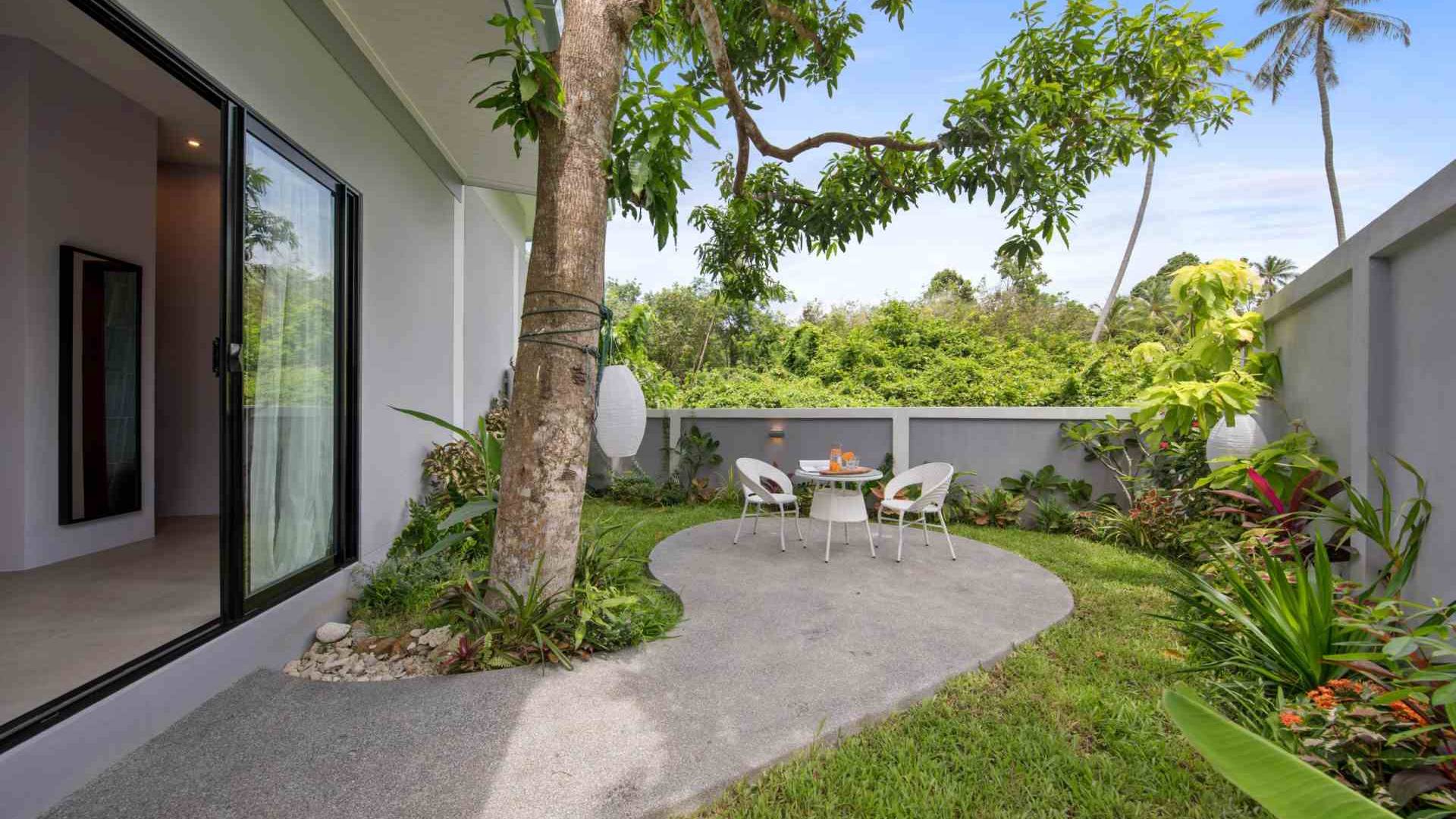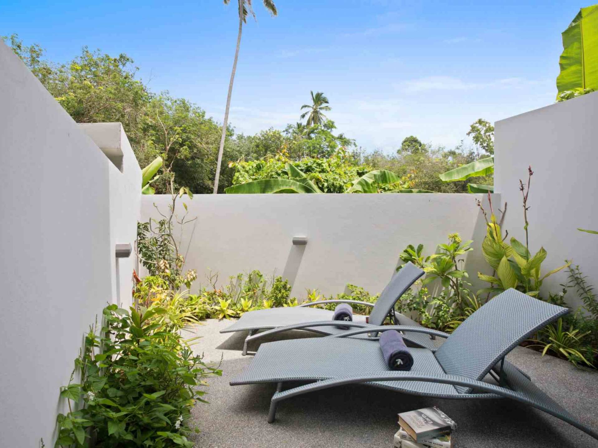 Baan Suaan Bua Villa Samui es una villa de lujo en alquiler con 3 dormitorios y piscina privada. Pool villa Baan Suaan Bua se encuentra en una tranquila zona tropical en el sur de la isla. Esta villa con todos los servicios está cerca no de 1, sino de 3 hermosas playas naturales e idílicas. Playa Leam Sor (500 m), playa Put Tal (150 m) y playa Thong Krut (300 m). Baan Suaan Bua Villa Samui tiene 3 dormitorios con baño. 2 de los cuales tienen sus propios jardines privados. Sala de estar espaciosa con cómodos sofás, televisor de pantalla grande y una moderna cocina / comedor totalmente equipada.