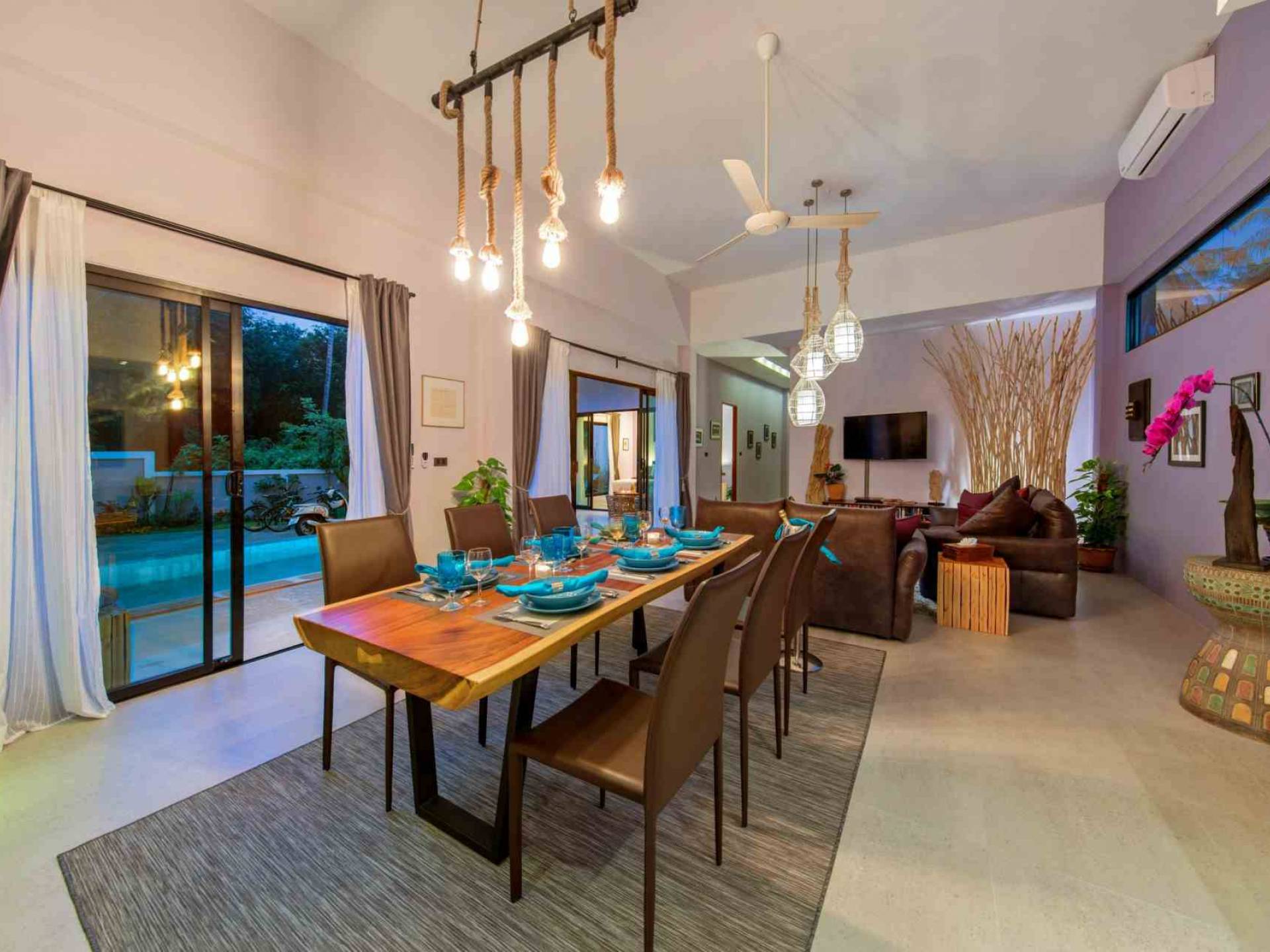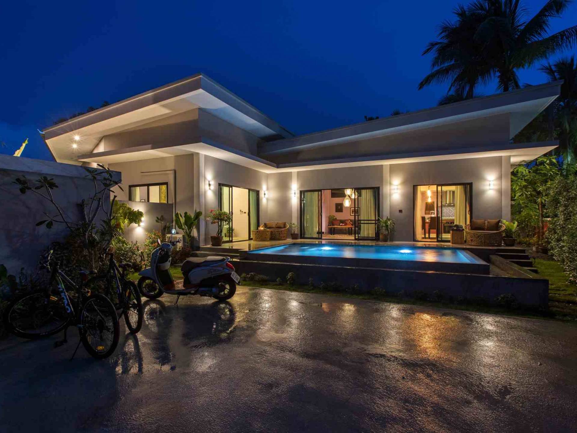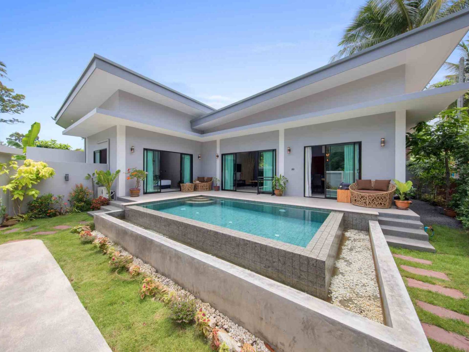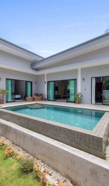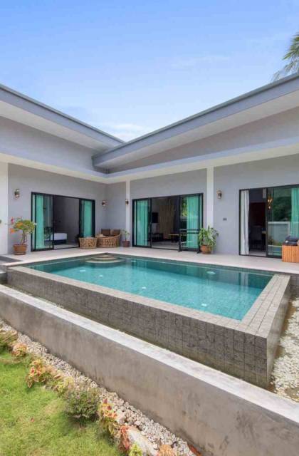 Esta nueva villa con piscina de estilo moderno tiene 190 metros cuadrados de superficie habitable. El nombre de nuestra hija, Villa Baan Suaan Bua es una casa de villa de un solo nivel espaciosa pero acogedora, ideal para parejas, amigos, familias o personas con nidos vacíos. La villa se limpia todos los días y la ropa de cama completa y el cambio de toallas se realiza cada tercer día.