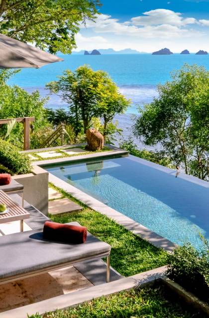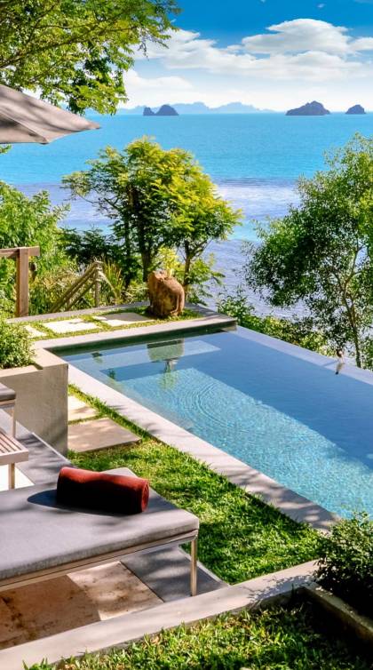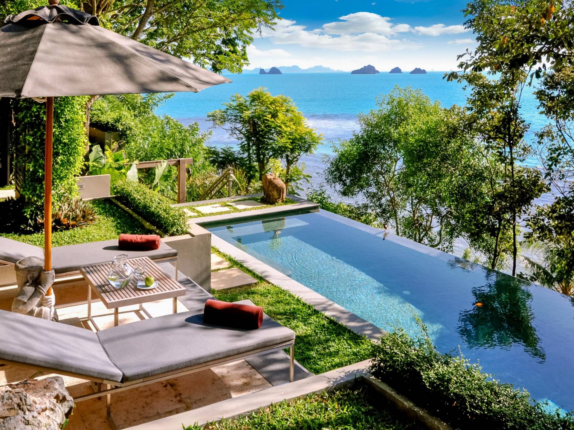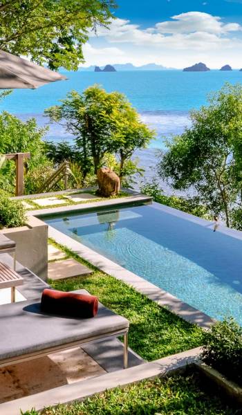 The Headland Samui ofrece alojamiento de lujo en Baan Taling Ngam, en la idílica esquina suroeste de la isla tropical de Koh Samui. The Headland es único por su mágica tranquilidad, hermosas playas vacías, lujosos alrededores y vistas inolvidables, pero a poca distancia de todo lo que es Koh Samui en el lado este de la isla.