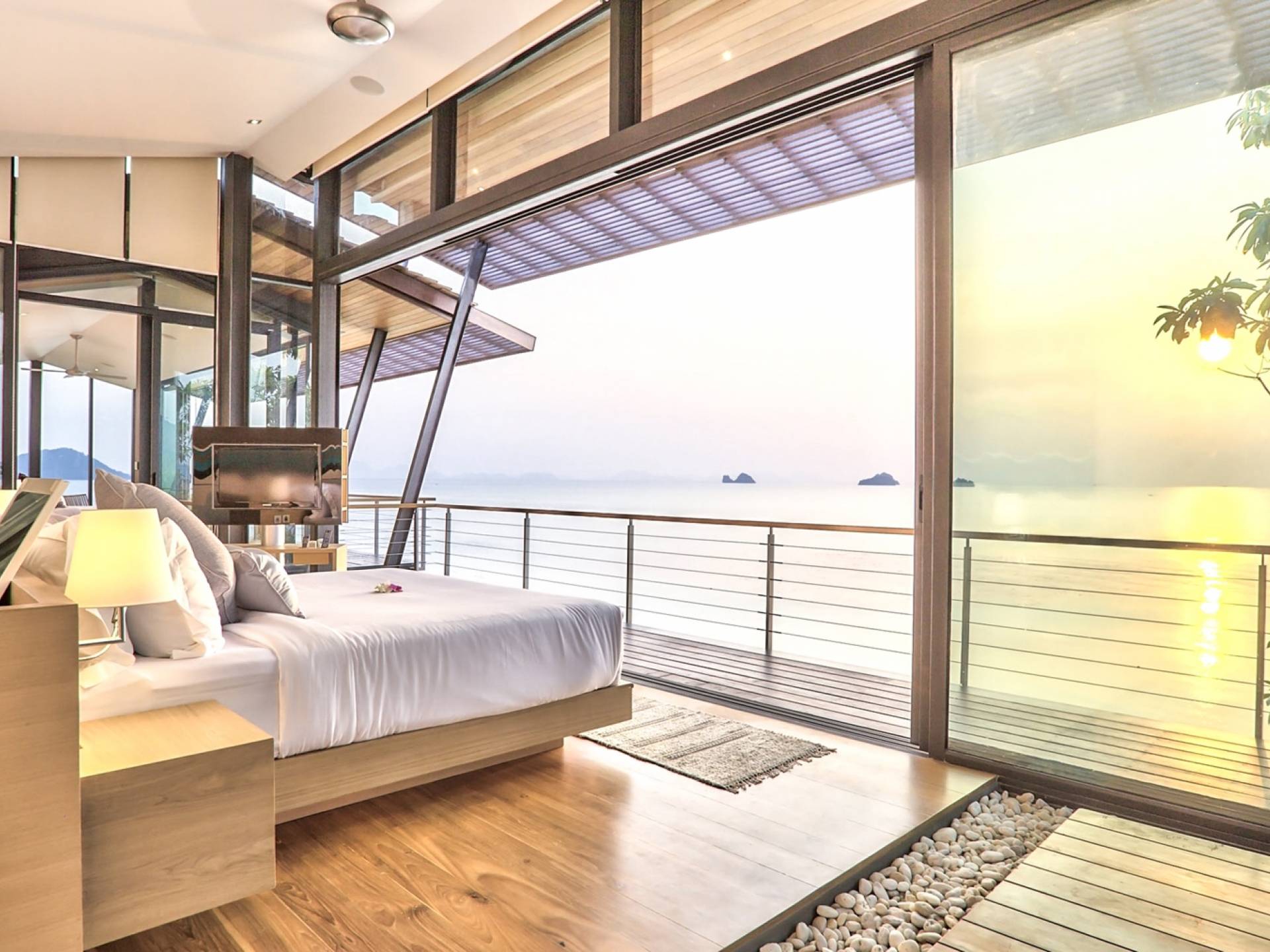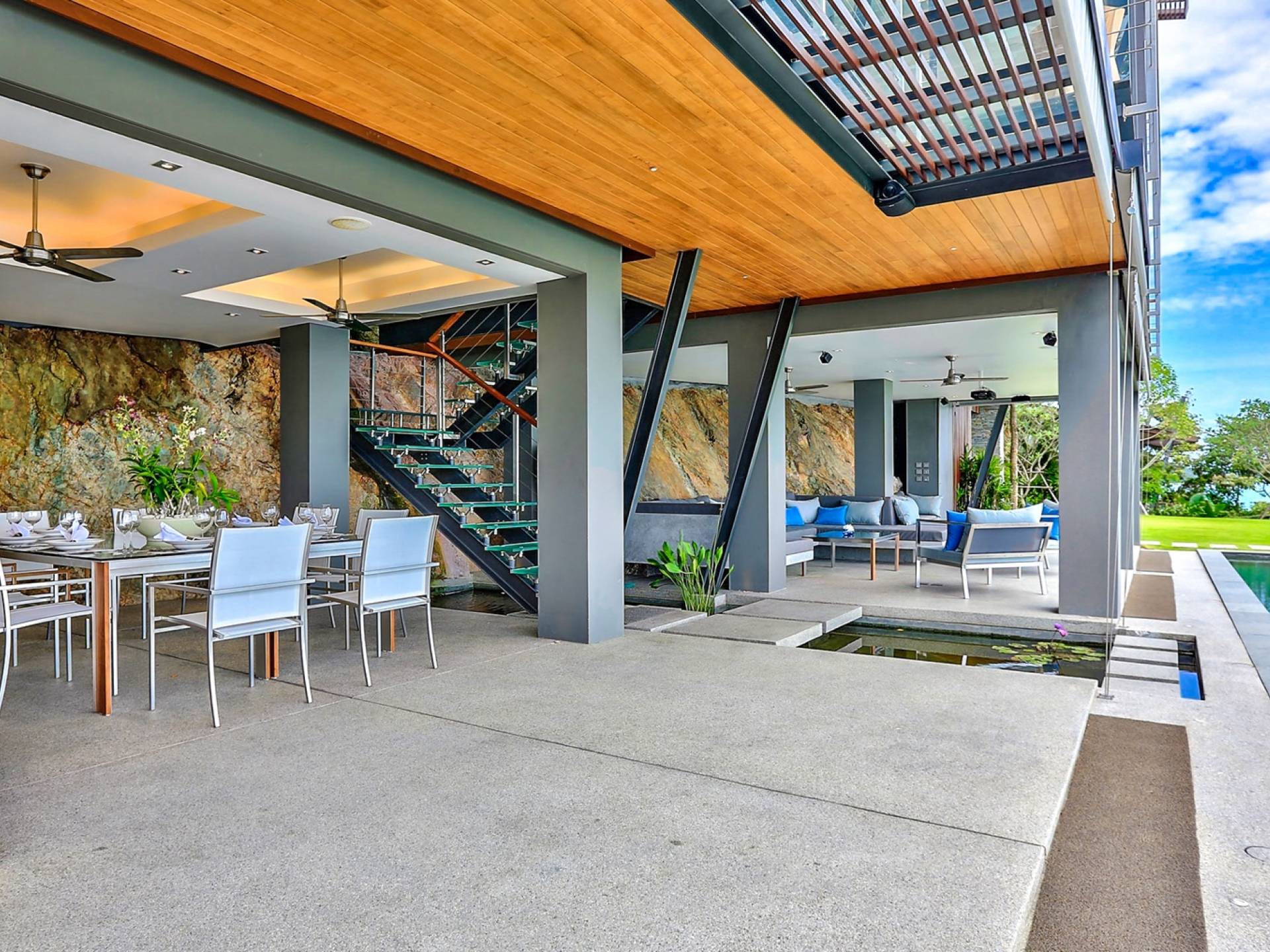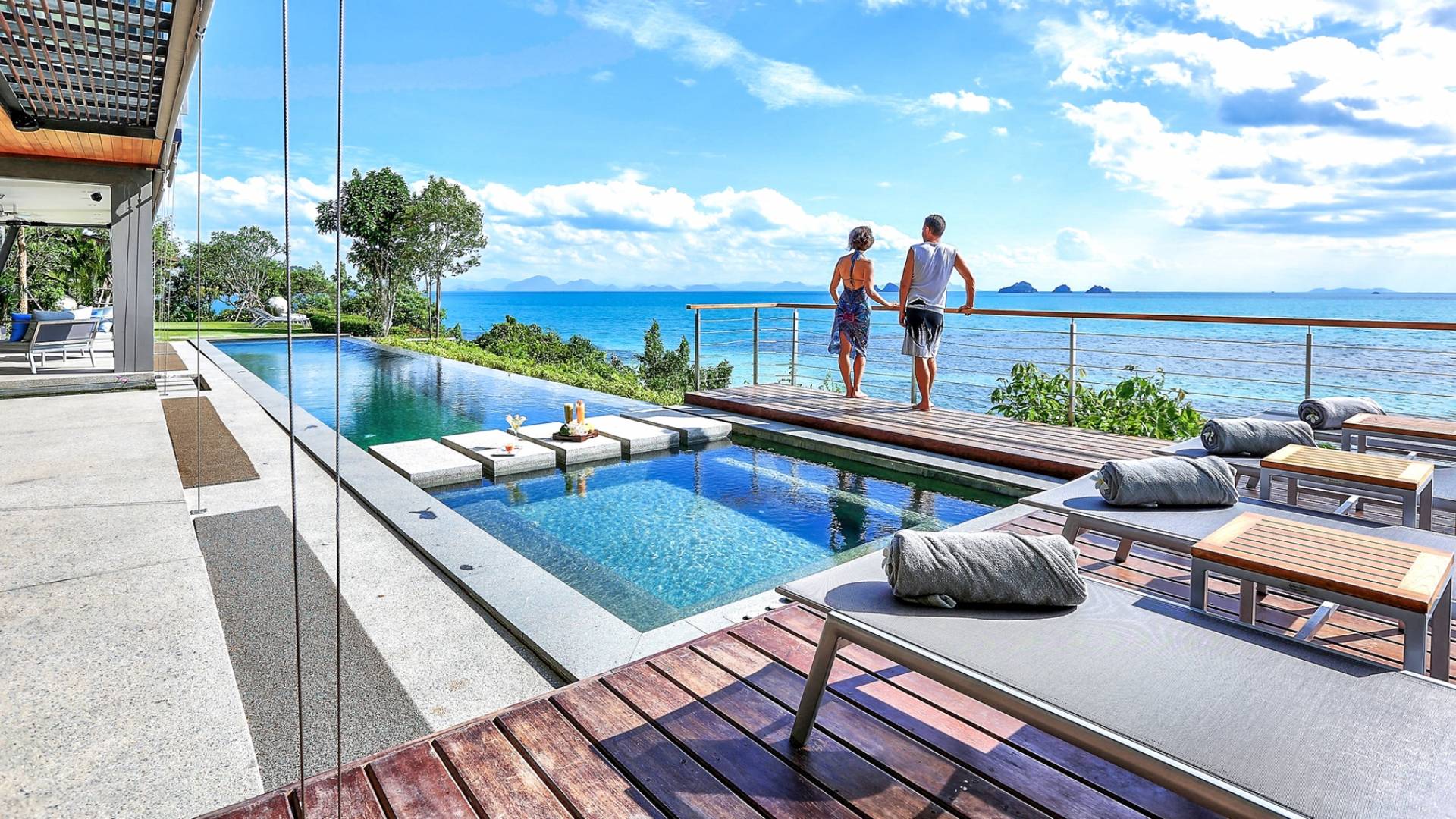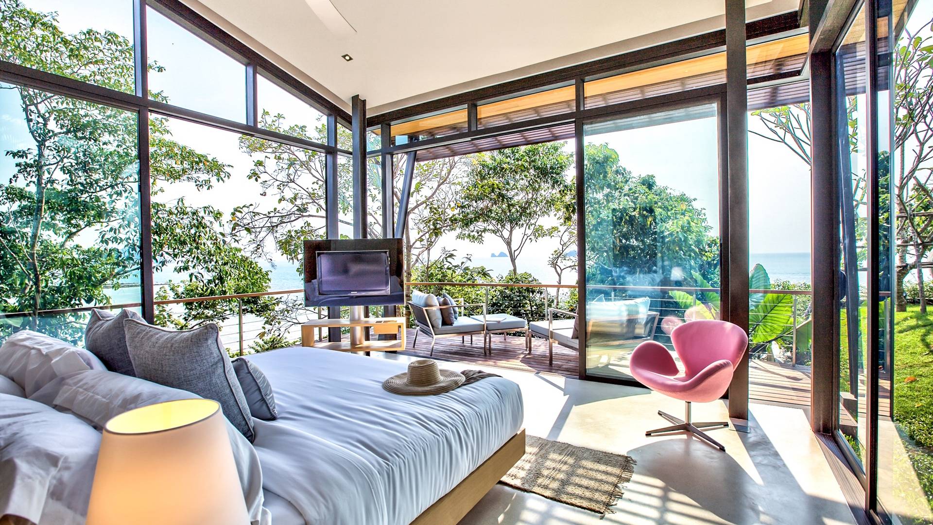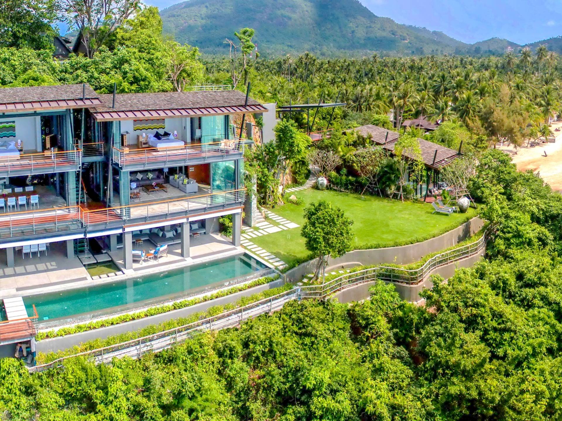 Un estudio en vidrio, acero, madera y cemento, The View Samui no se parece a nada que hayas visto antes. Llamada así por sus impresionantes vistas desde lo alto de los acantilados sobre la costa oeste de Koh Samui, esta villa de cinco habitaciones gana cada pedacito de su exageración y rayas con sus vistas de 180 grados desde cada una de sus habitaciones y salas de estar con puertas de vidrio de cuerpo entero, acantilado natural ajuste de la cara, alojamiento para niños a medida, jardín tropical y áreas al aire libre ultra-chic que incluso incluye un estanque completo con cascada.