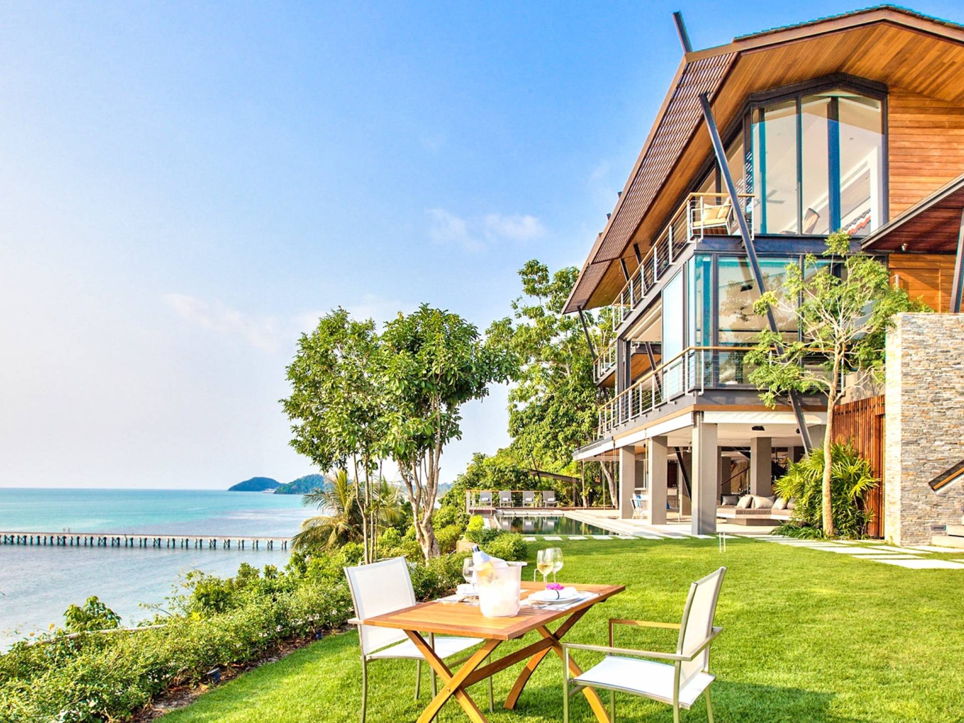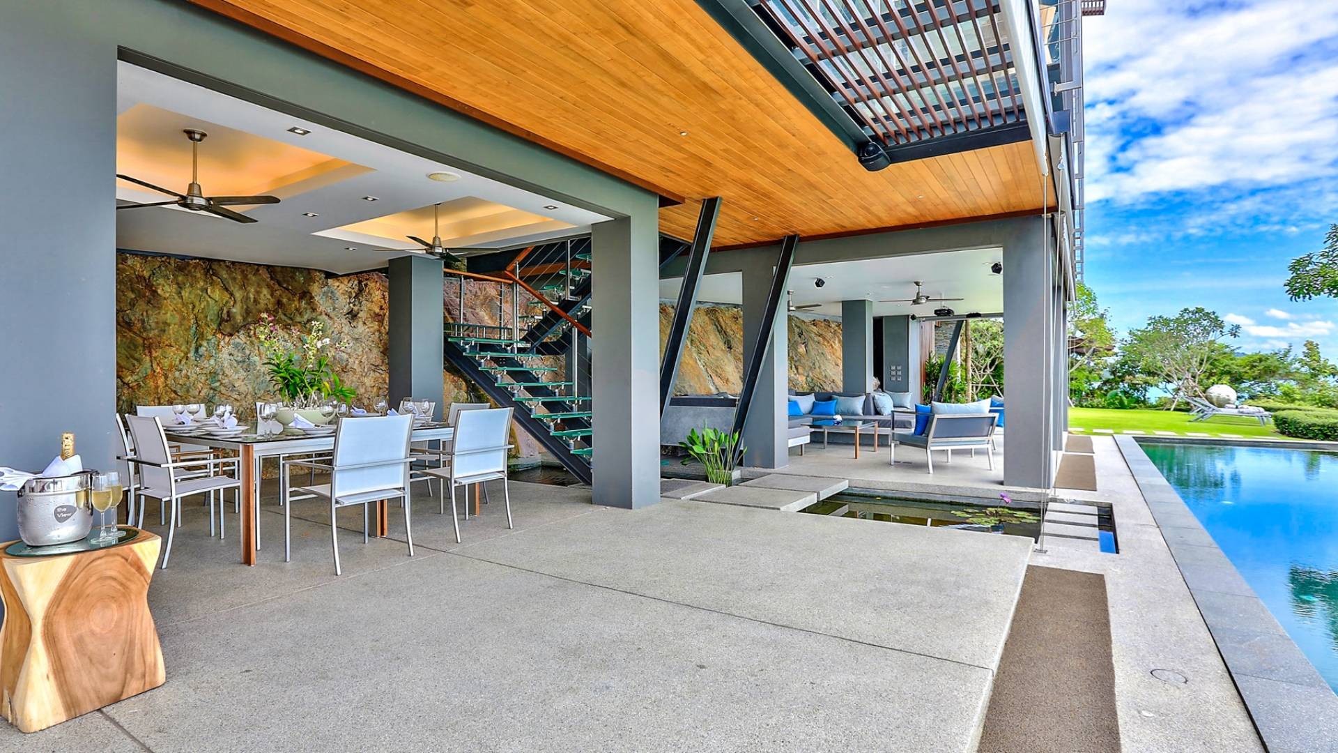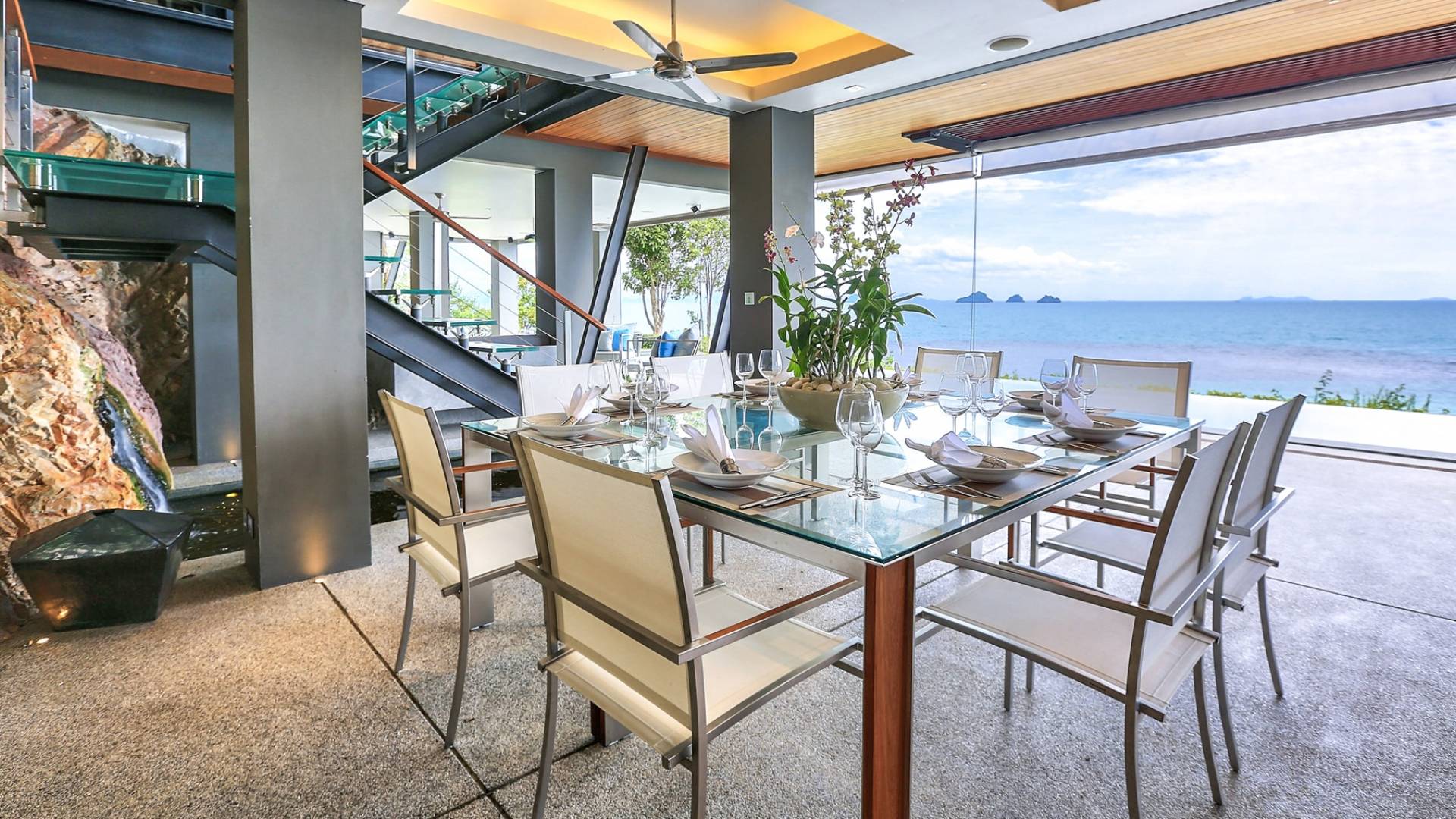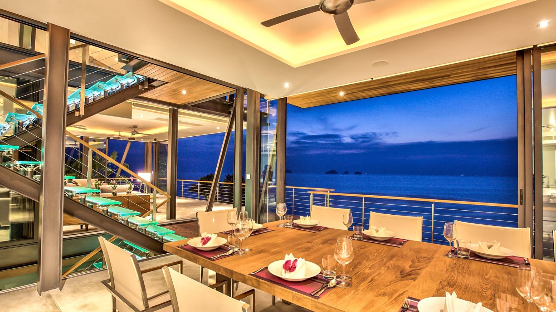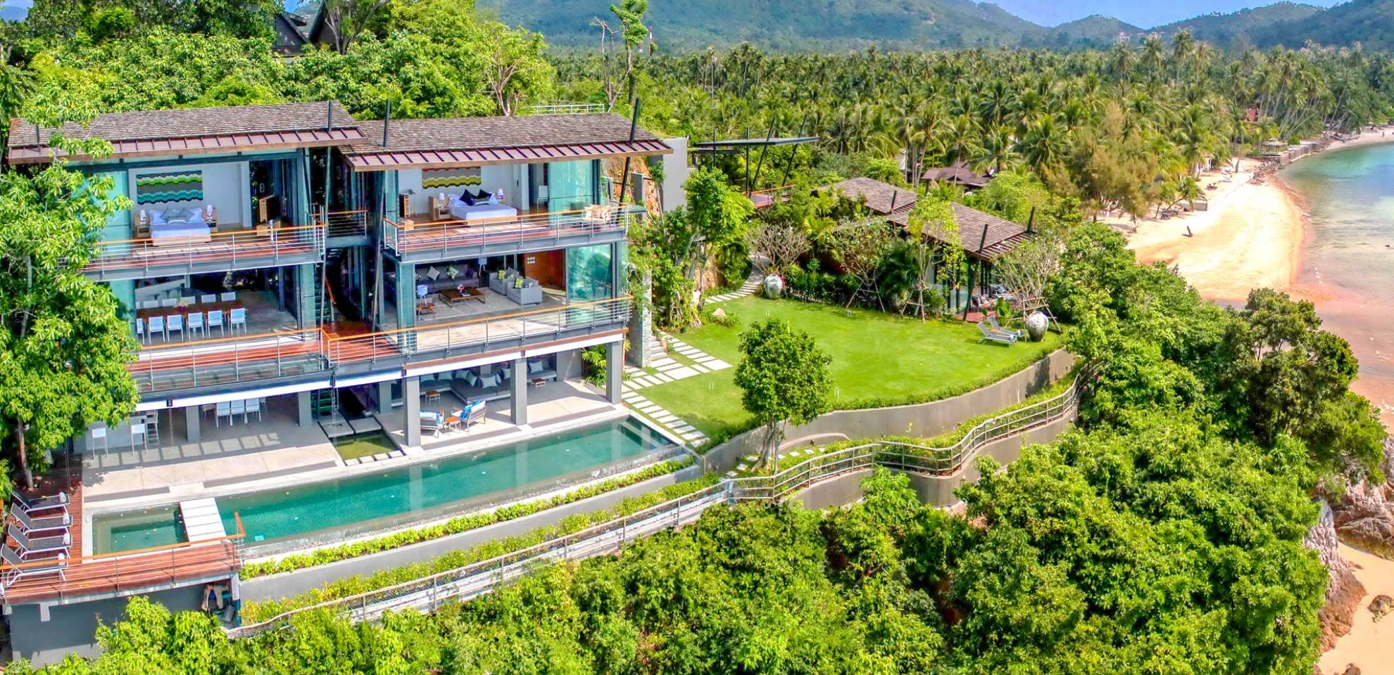 Un estudio en vidrio, acero, madera y cemento, The View Samui no se parece a nada que hayas visto antes. Llamada así por sus impresionantes vistas desde lo alto de los acantilados sobre la costa oeste de Koh Samui, esta villa de cinco habitaciones gana cada pedacito de su exageración y rayas con sus vistas de 180 grados desde cada una de sus habitaciones y salas de estar con puertas de vidrio de cuerpo entero, acantilado natural ajuste de la cara, alojamiento para niños a medida, jardín tropical y áreas al aire libre ultra-chic que incluso incluye un estanque completo con cascada.