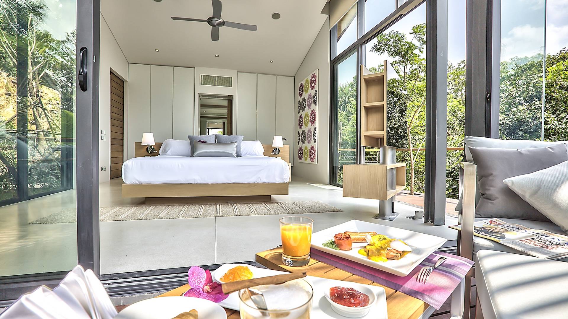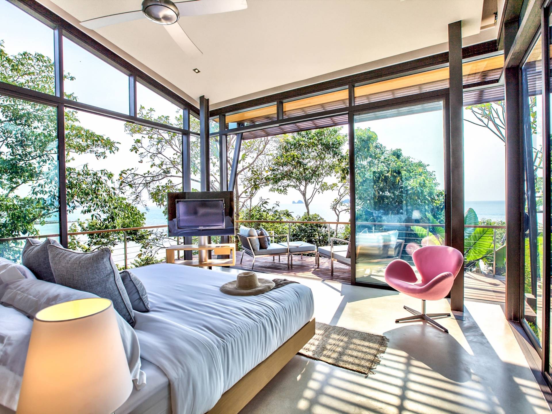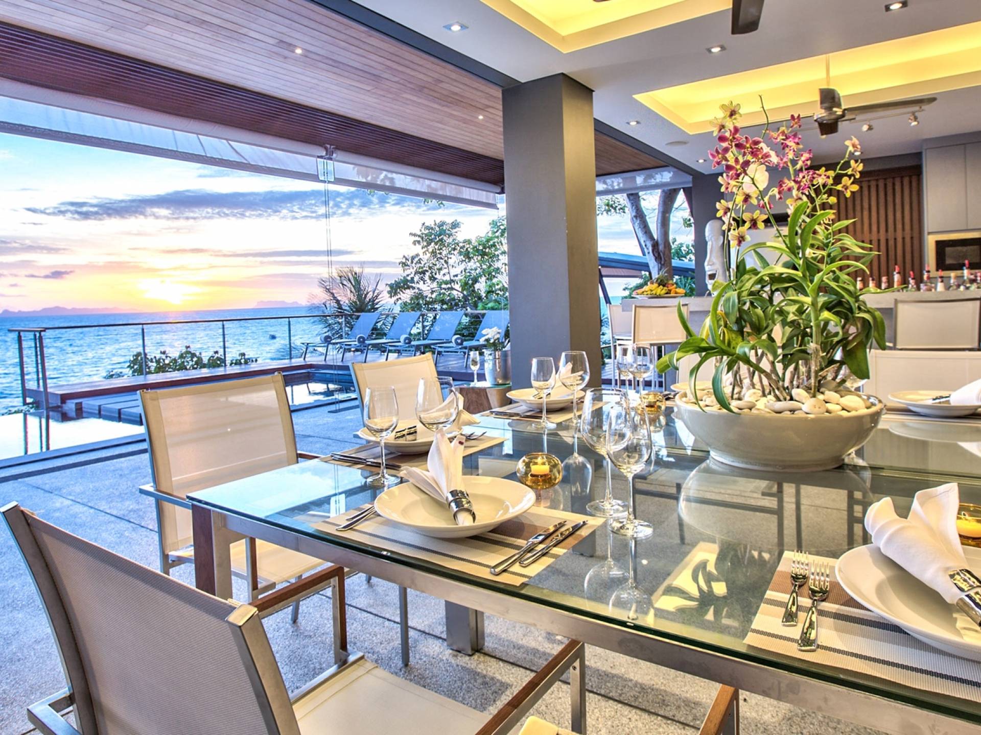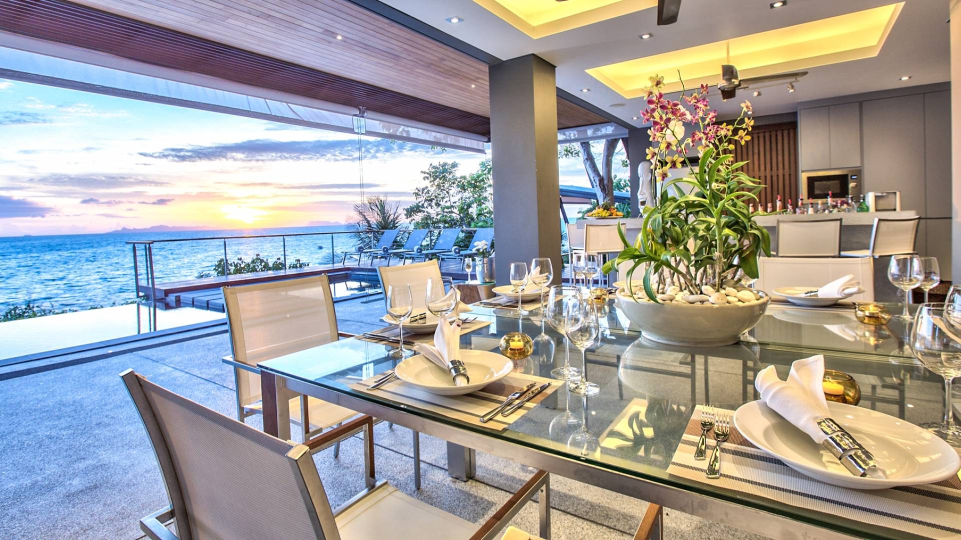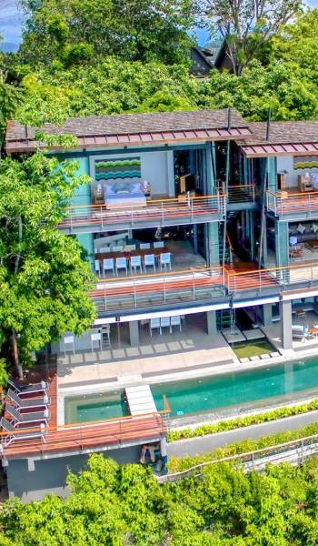 Un estudio en vidrio, acero, madera y cemento, The View Samui no se parece a nada que hayas visto antes. Llamada así por sus impresionantes vistas desde lo alto de los acantilados sobre la costa oeste de Koh Samui, esta villa de cinco habitaciones gana cada pedacito de su exageración y rayas con sus vistas de 180 grados desde cada una de sus habitaciones y salas de estar con puertas de vidrio de cuerpo entero, acantilado natural ajuste de la cara, alojamiento para niños a medida, jardín tropical y áreas al aire libre ultra-chic que incluso incluye un estanque completo con cascada.
