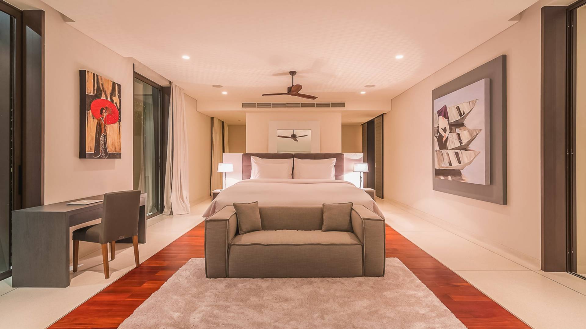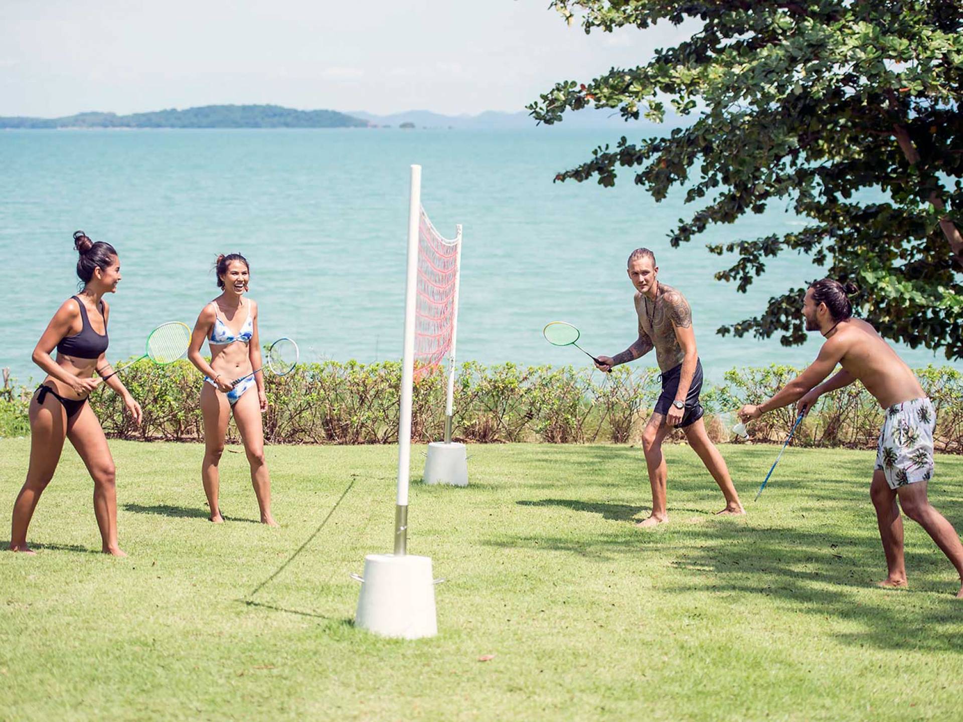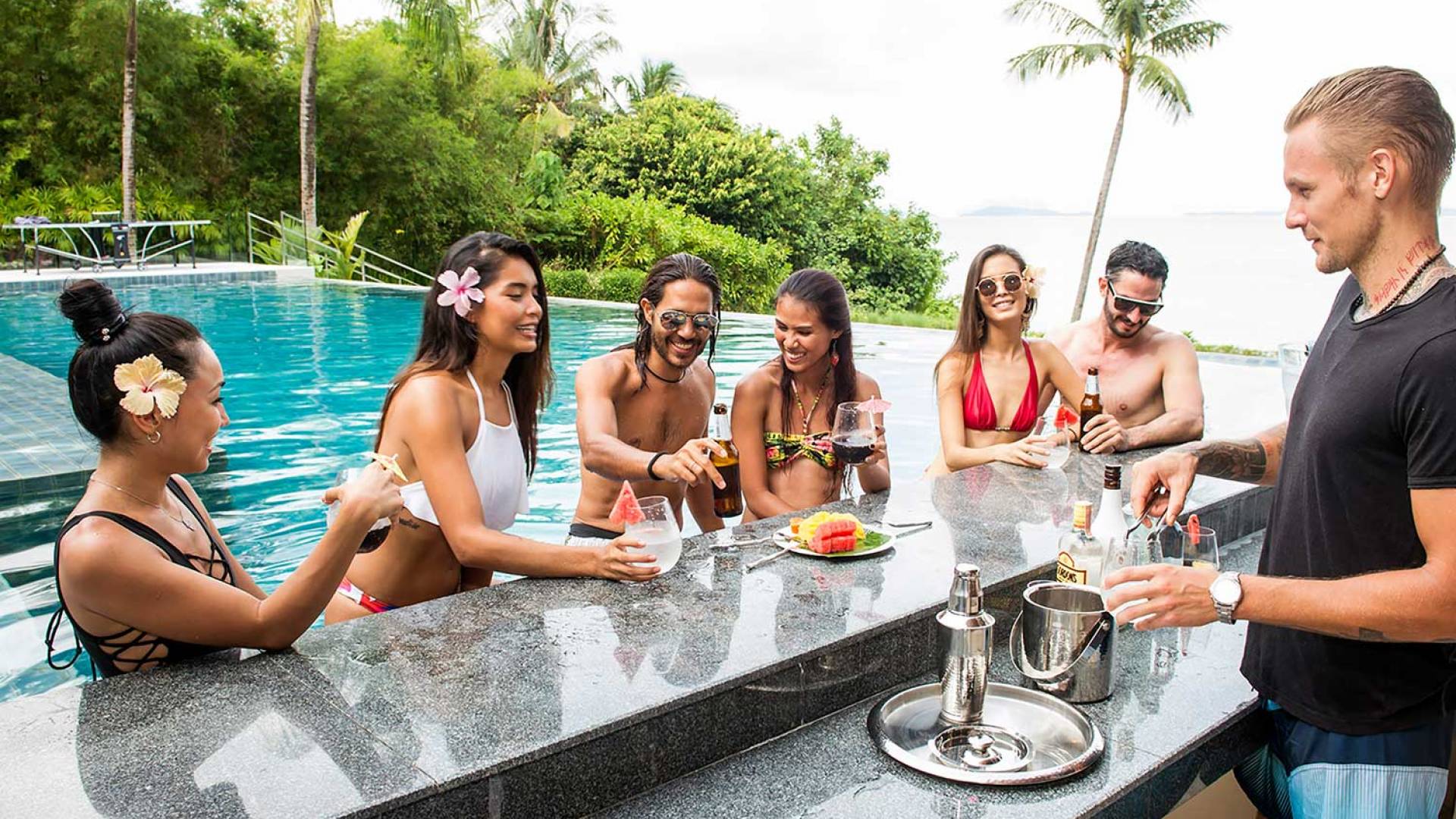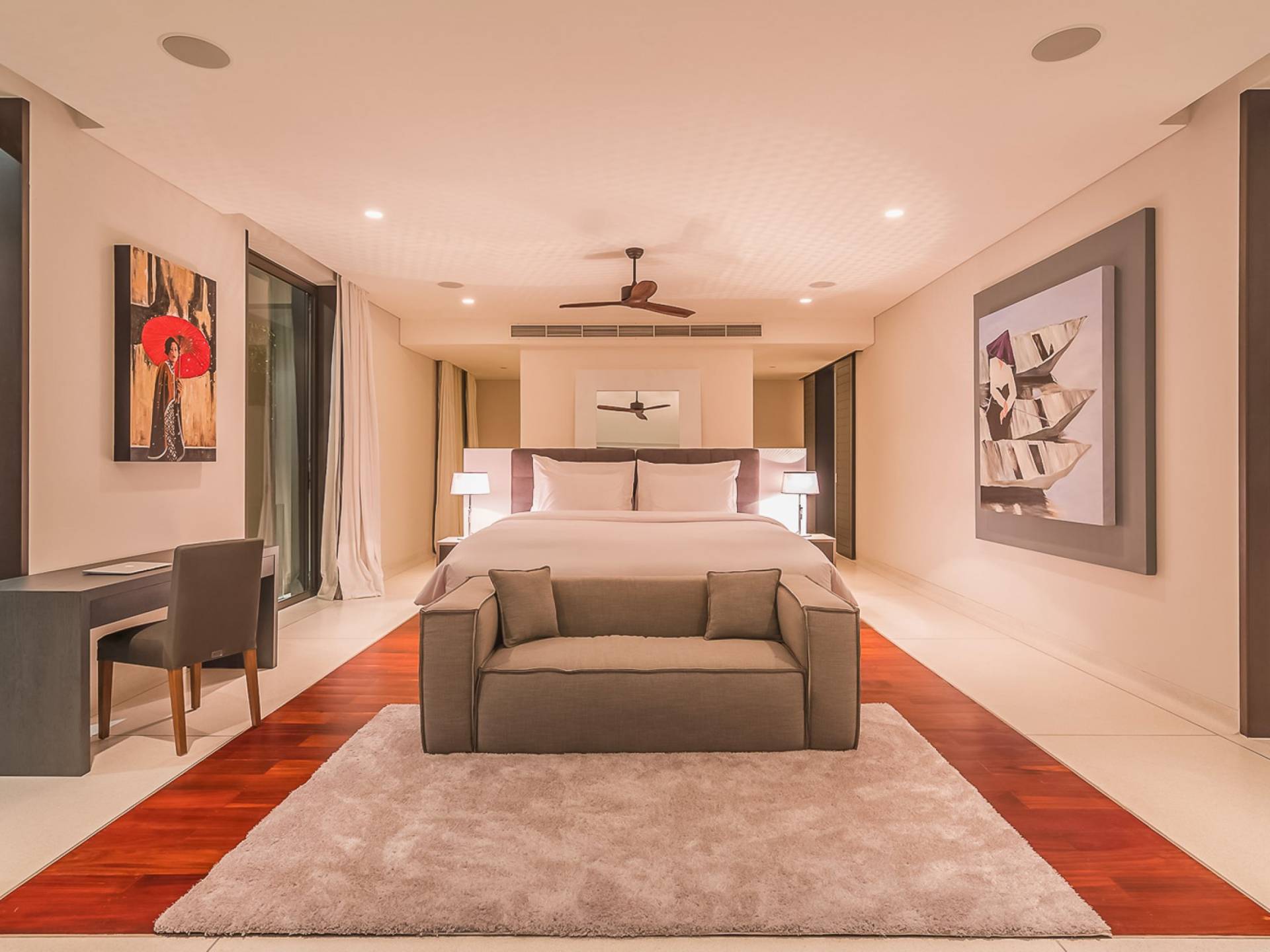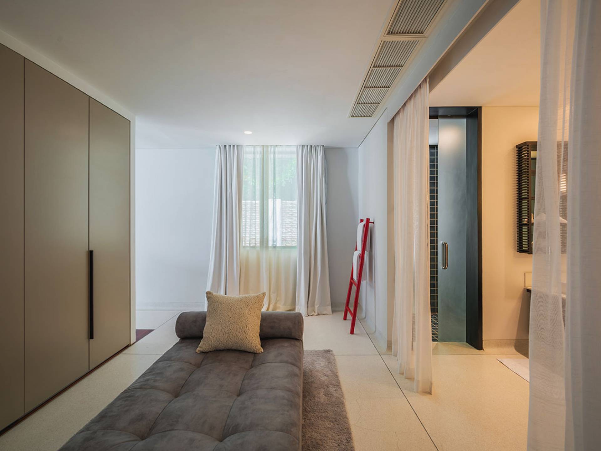 Las 4 luminosas habitaciones con baño disfrutan de vistas cinematográficas. Imagínese despertarse por la mañana y pasar unos momentos en la cama mientras contempla las espectaculares vistas. Villa Naam ofrece lujosos espacios para vivir y comer, mientras que su piscina infinita privada de 30 metros de largo con su bar en la piscina lo dejará asombrado. Amplios jardines con césped y altas palmeras aíslan la villa y ofrecen total privacidad a sus huéspedes. El amable equipo de personal incluye un chef ejecutivo, asistentes de limpieza, personal de servicio y seguridad.