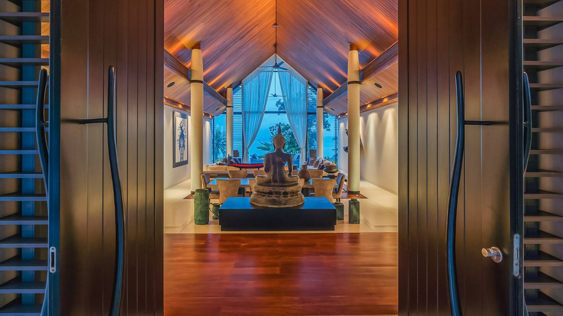 Villa Naam es una villa de lujo en alquiler con 4 dormitorios y piscina privada. Ubicado en un exuberante paisaje tropical verde, rodeado de naturaleza pura, Villa Naam ofrece magníficas vistas al mar. Este espectacular retiro de lujo privado tiene 4 habitaciones espaciosas, espacios de vida voluminosos y amplios jardines tropicales con una gigantesca piscina privada de borde infinito. Una opción ideal, excelente para familias y grupos de amigos, esta espaciosa casa de vacaciones frente al mar puede albergar hasta 8 personas.