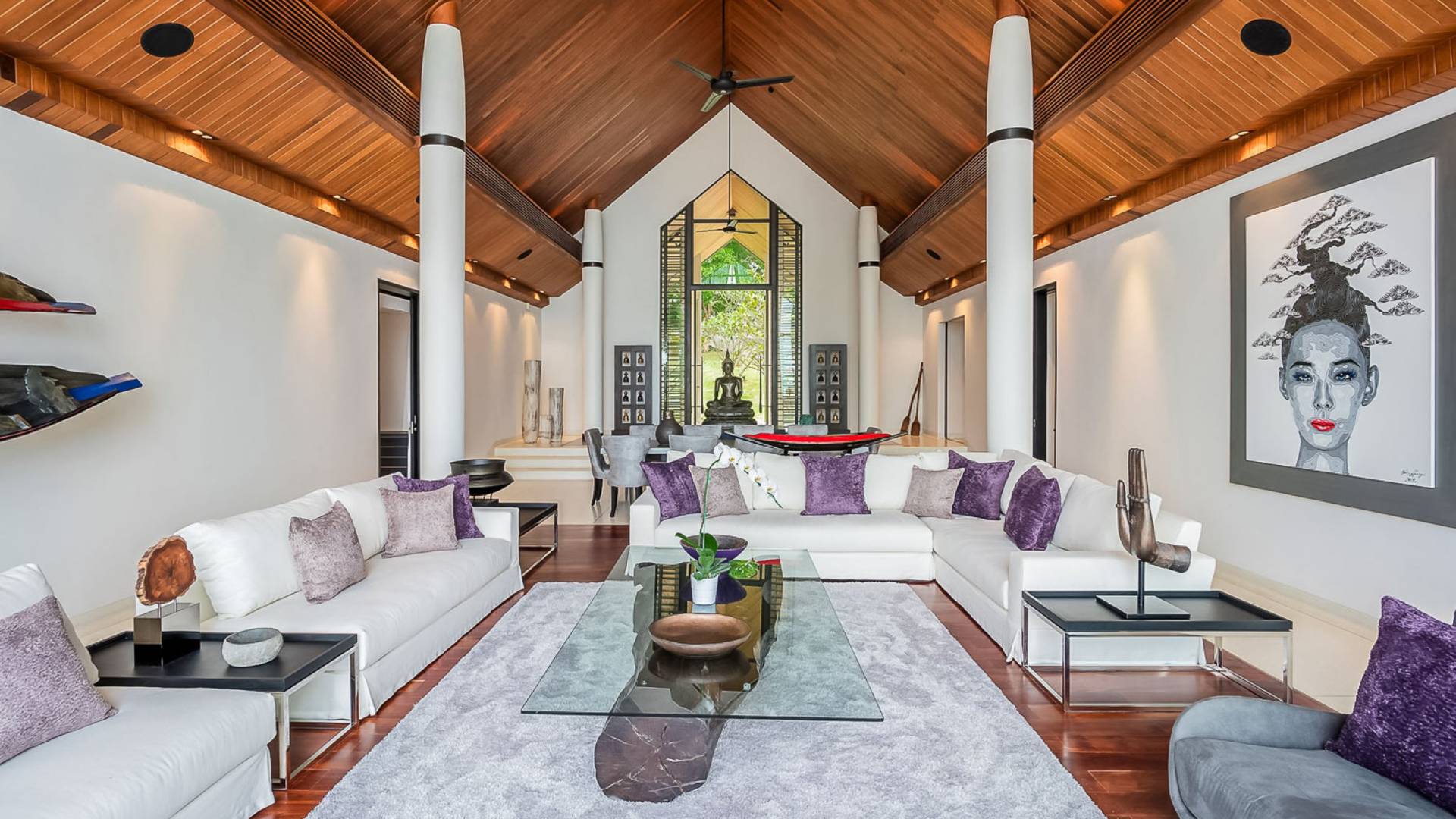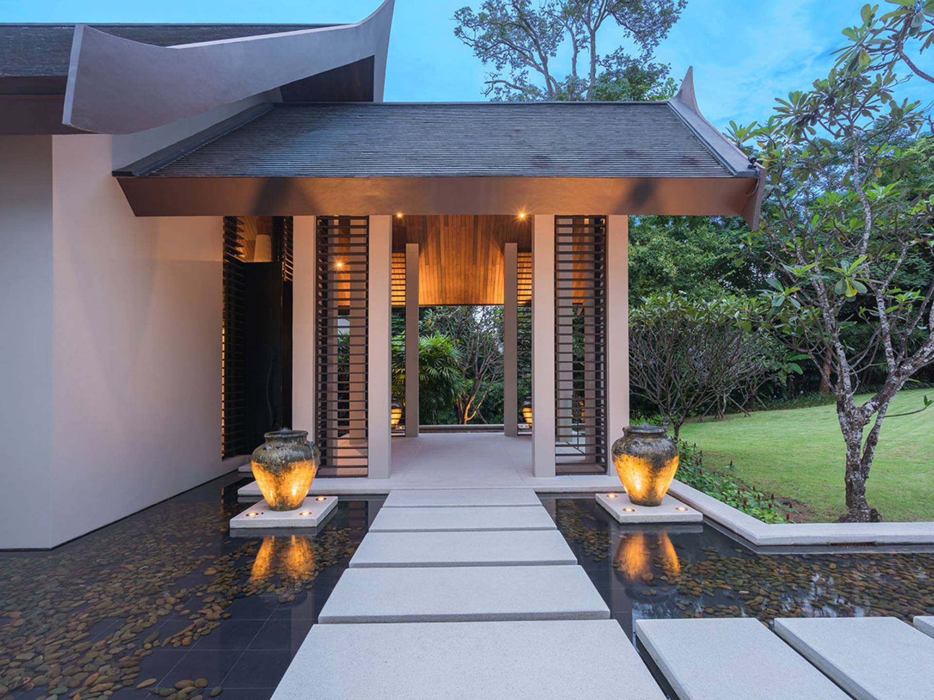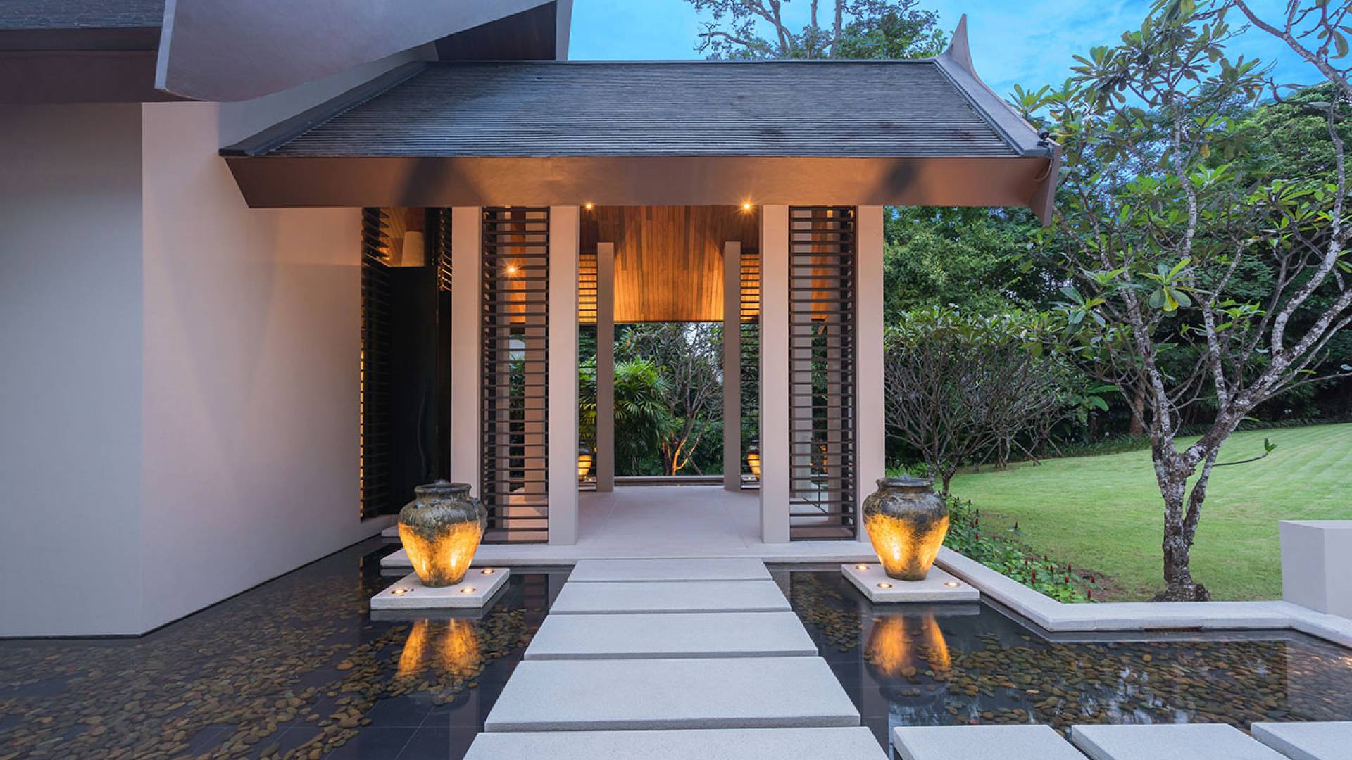 Villa Naam en Sawan se encuentra dentro de la exclusiva finca Cape Yamu en el lado noreste de la isla de Phuket. ¡Prepárese para sorprenderse con la ecléctica mezcla de fina arquitectura asiática tradicional moderna y auténtica! Los colores brillantes de las telas y las vívidas obras de arte de las paredes se combinan armoniosamente con las amplias superficies de madera rubia y crean un ambiente tranquilo.