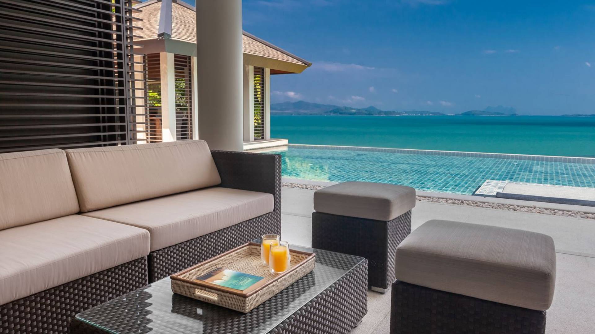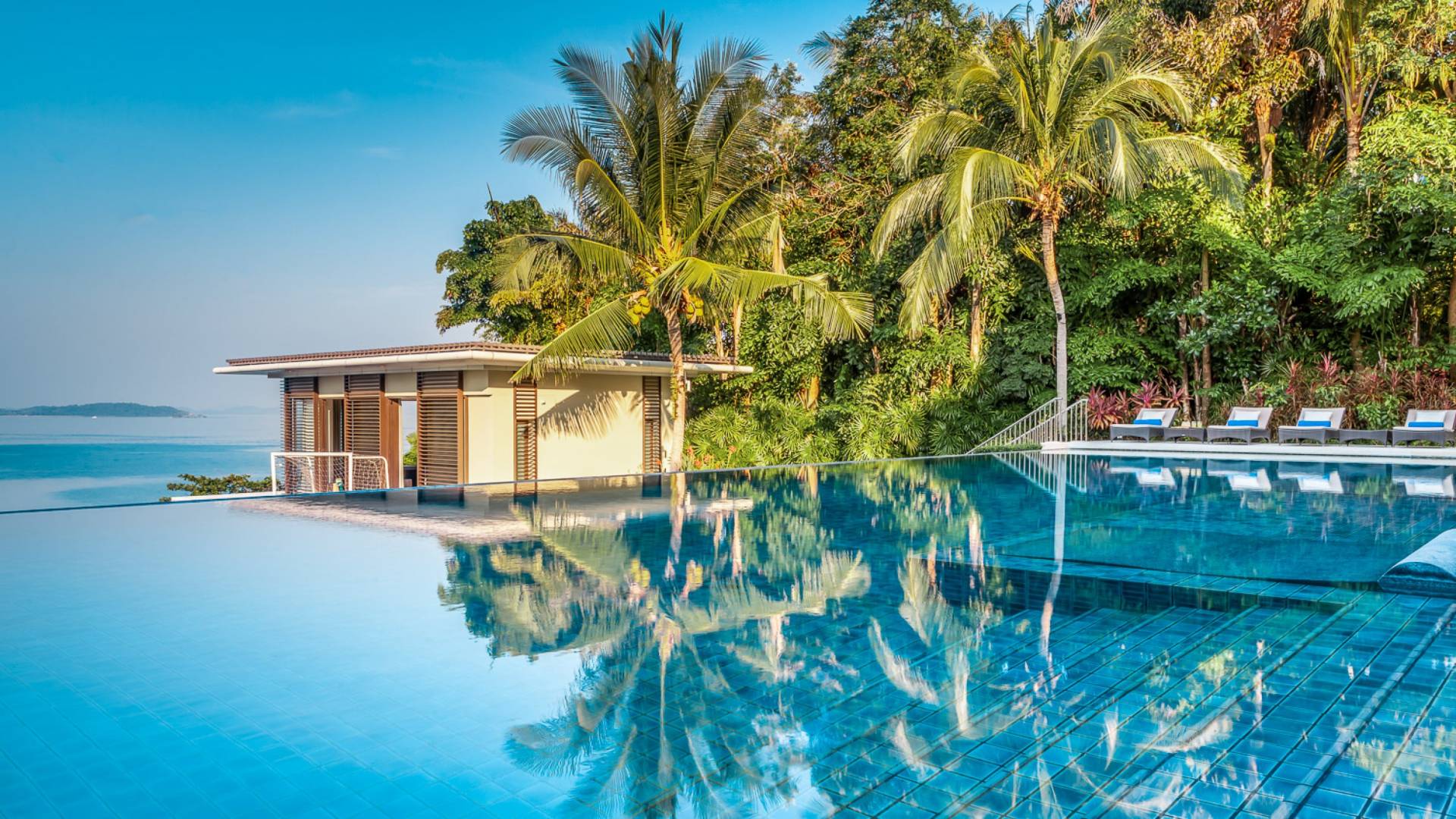 Vista desde arriba, Villa Vikasa es una exhibición de belleza arquitectónica, una terraza plana con un icónico techo de estilo tailandés como corona. En sánscrito, Vikasa significa "resplandor", una palabra que describe con precisión el espectáculo diario: cuando la propiedad se descubre lentamente a la luz del sol naciente.