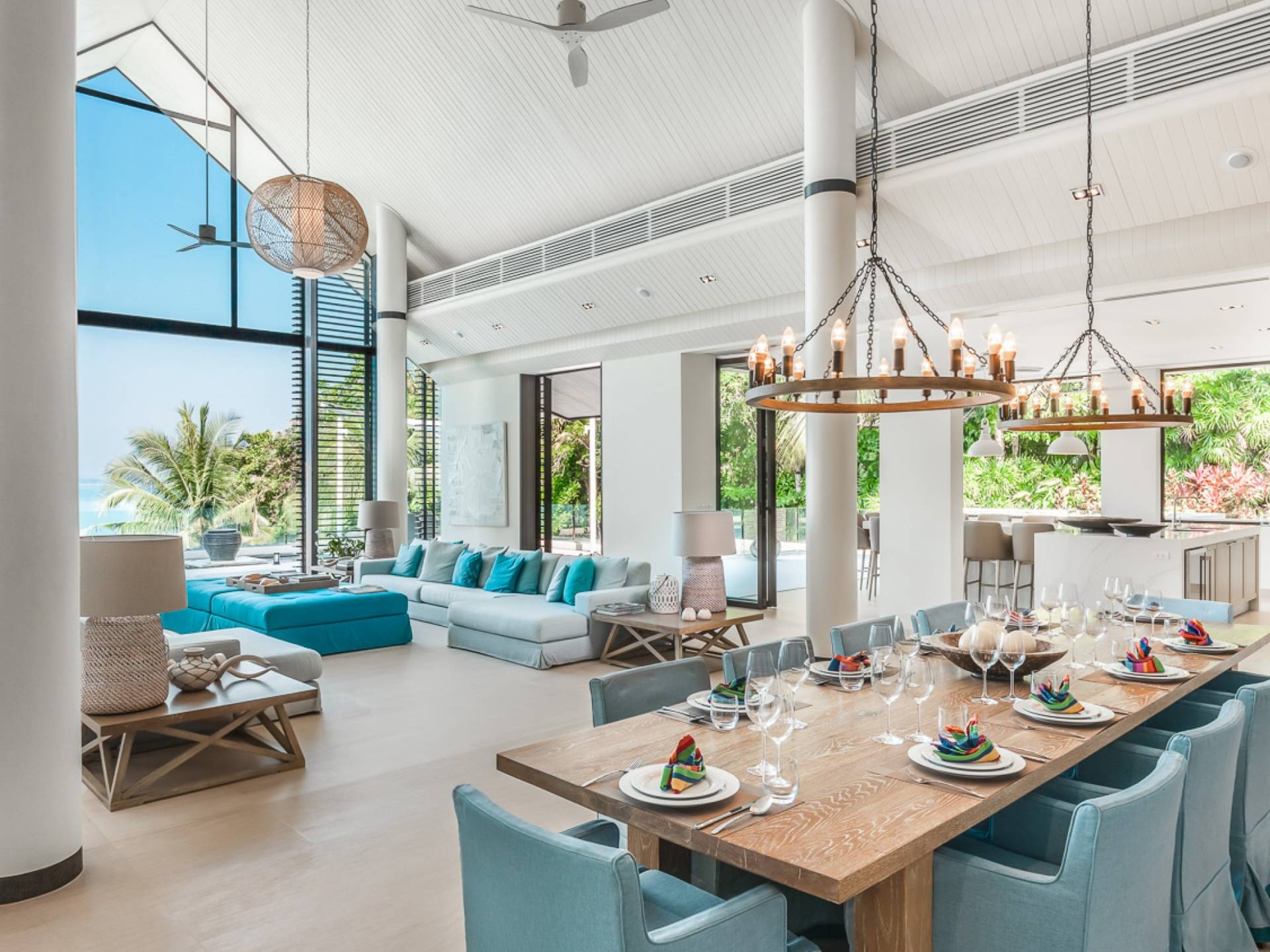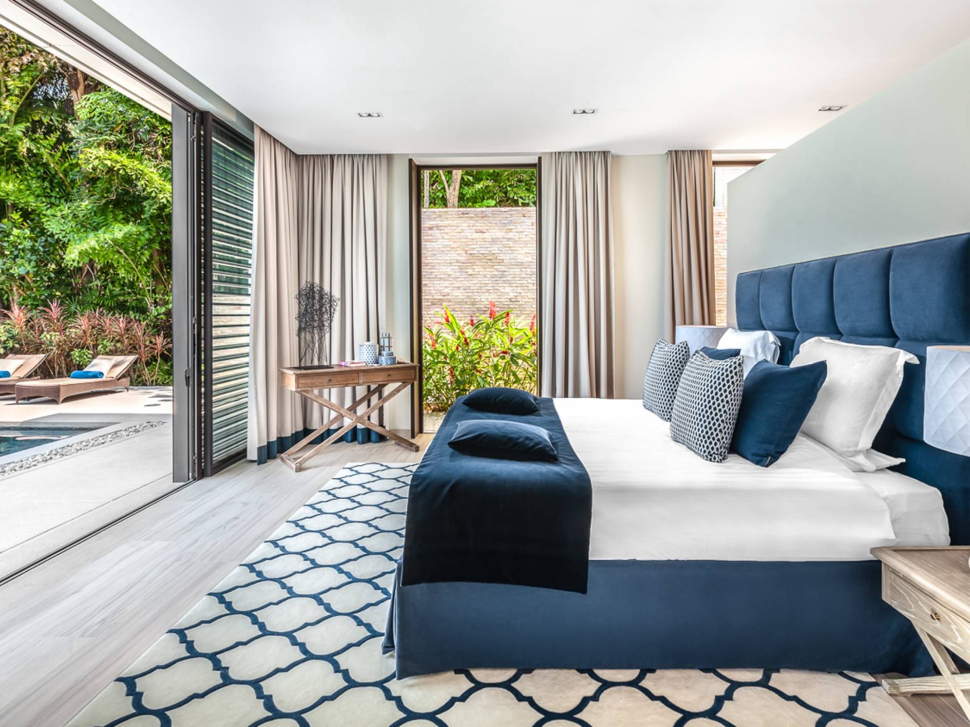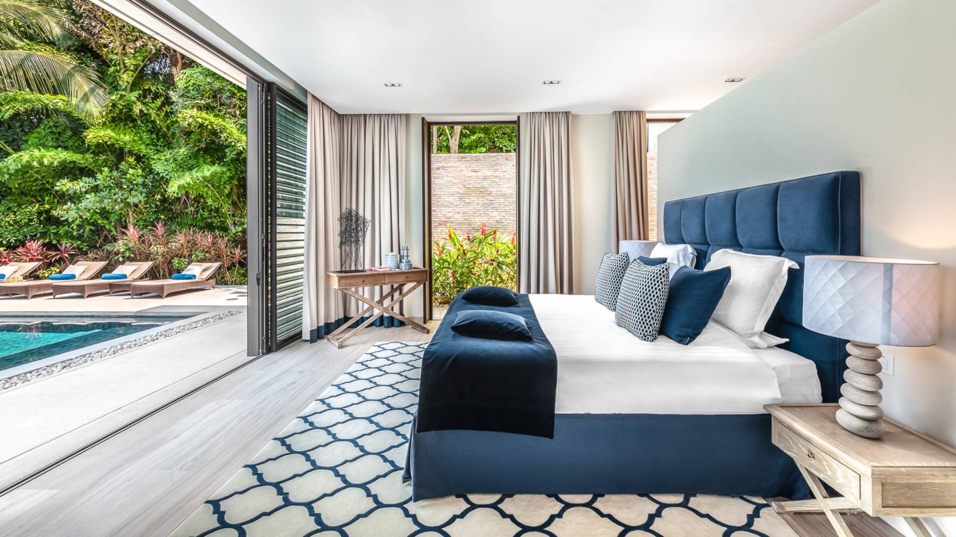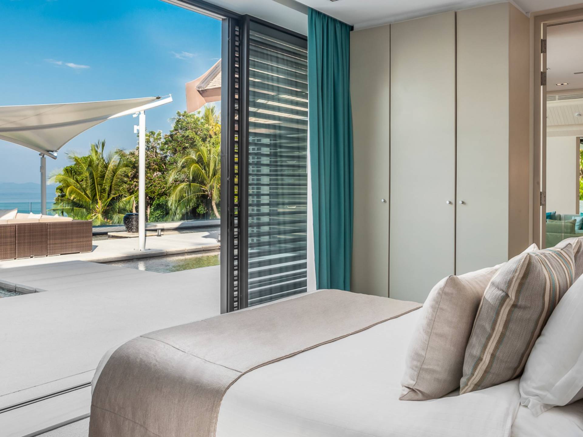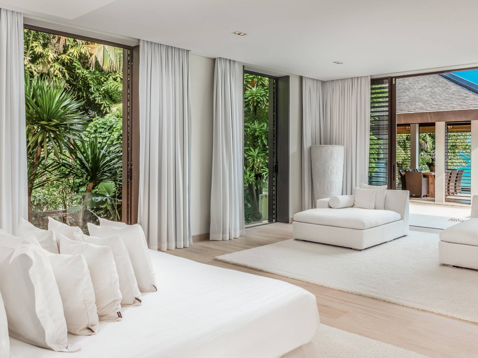 La villa tiene un total de 5 habitaciones, cada una con su propio baño privado. Una de las habitaciones está construida como un bungalow independiente a pocos metros de la casa principal y ofrece una vista aún más cercana de la bahía. Una piscina infinita de 25 m de largo se extiende por casi todo el ancho de la propiedad, y un jardín se extiende hasta el final de la propiedad con la playa. La villa también cuenta con un comedor y sala al aire libre, un bar junto a la piscina, un jacuzzi, una red de fútbol, kayaks y una sala de entretenimiento con mesa de billar, Xbox, juegos de mesa y Apple TV.