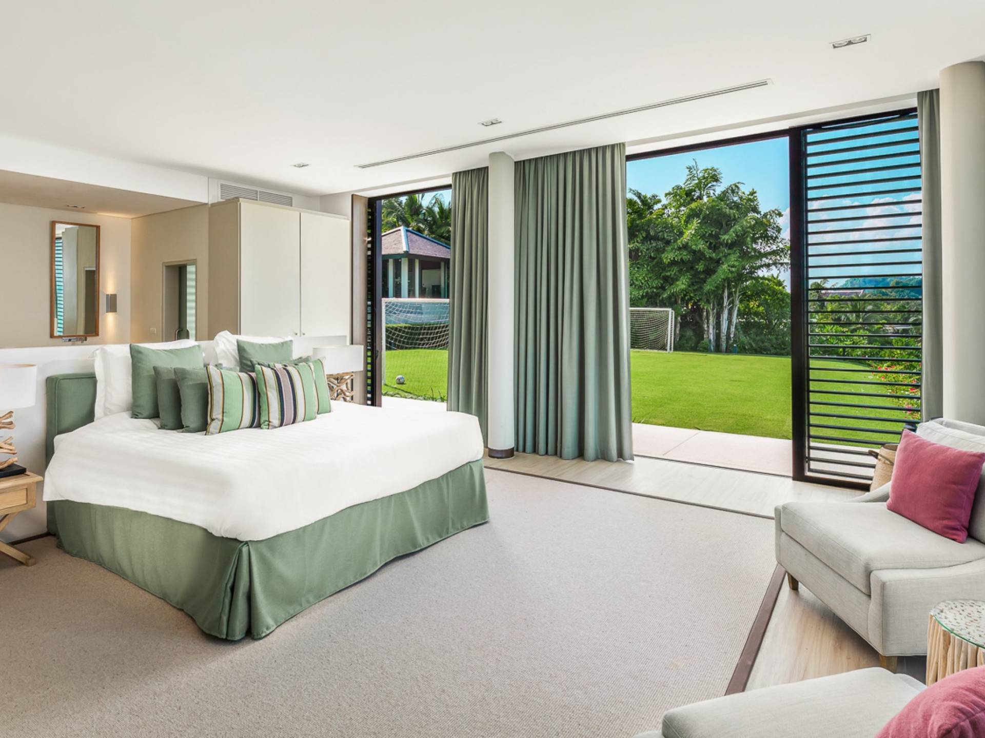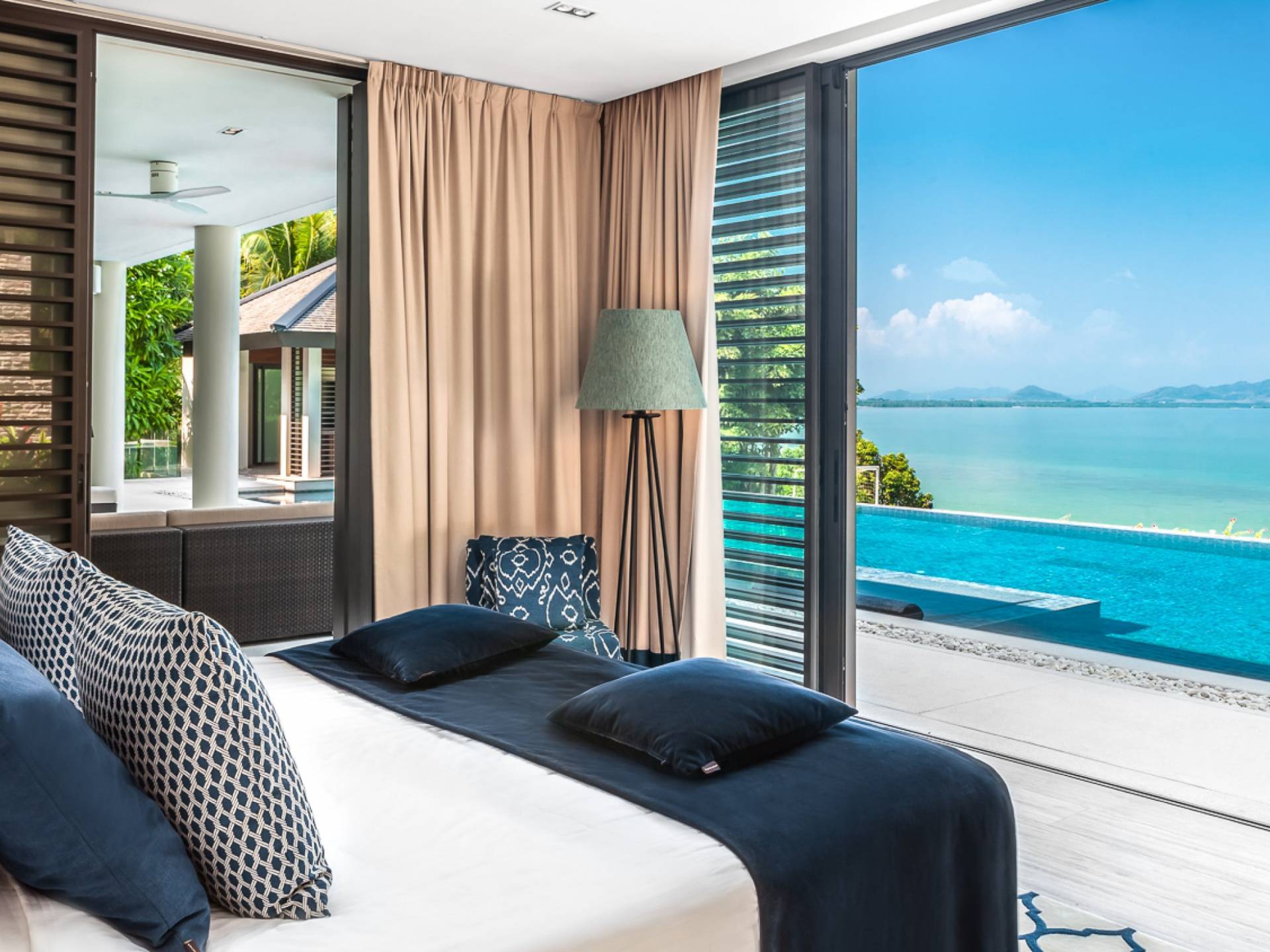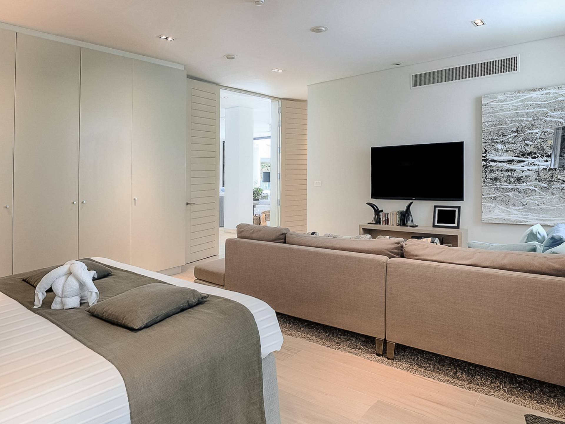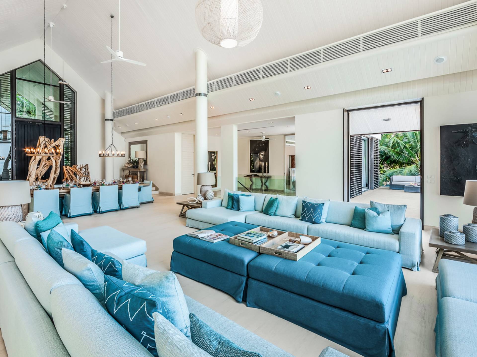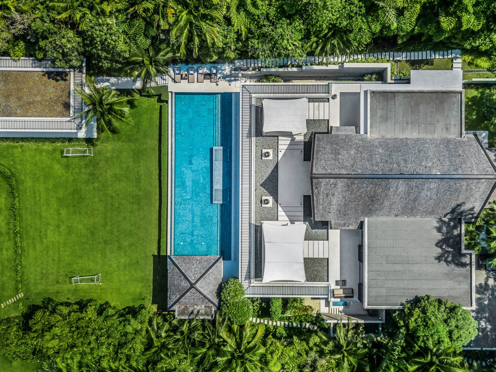 La villa tiene un total de 5 habitaciones, cada una con su propio baño privado. Una de las habitaciones está construida como un bungalow independiente a pocos metros de la casa principal y ofrece una vista aún más cercana de la bahía. Una piscina infinita de 25 m de largo se extiende por casi todo el ancho de la propiedad, y un jardín se extiende hasta el final de la propiedad con la playa. La villa también cuenta con un comedor y sala al aire libre, un bar junto a la piscina, un jacuzzi, una red de fútbol, kayaks y una sala de entretenimiento con mesa de billar, Xbox, juegos de mesa y Apple TV.