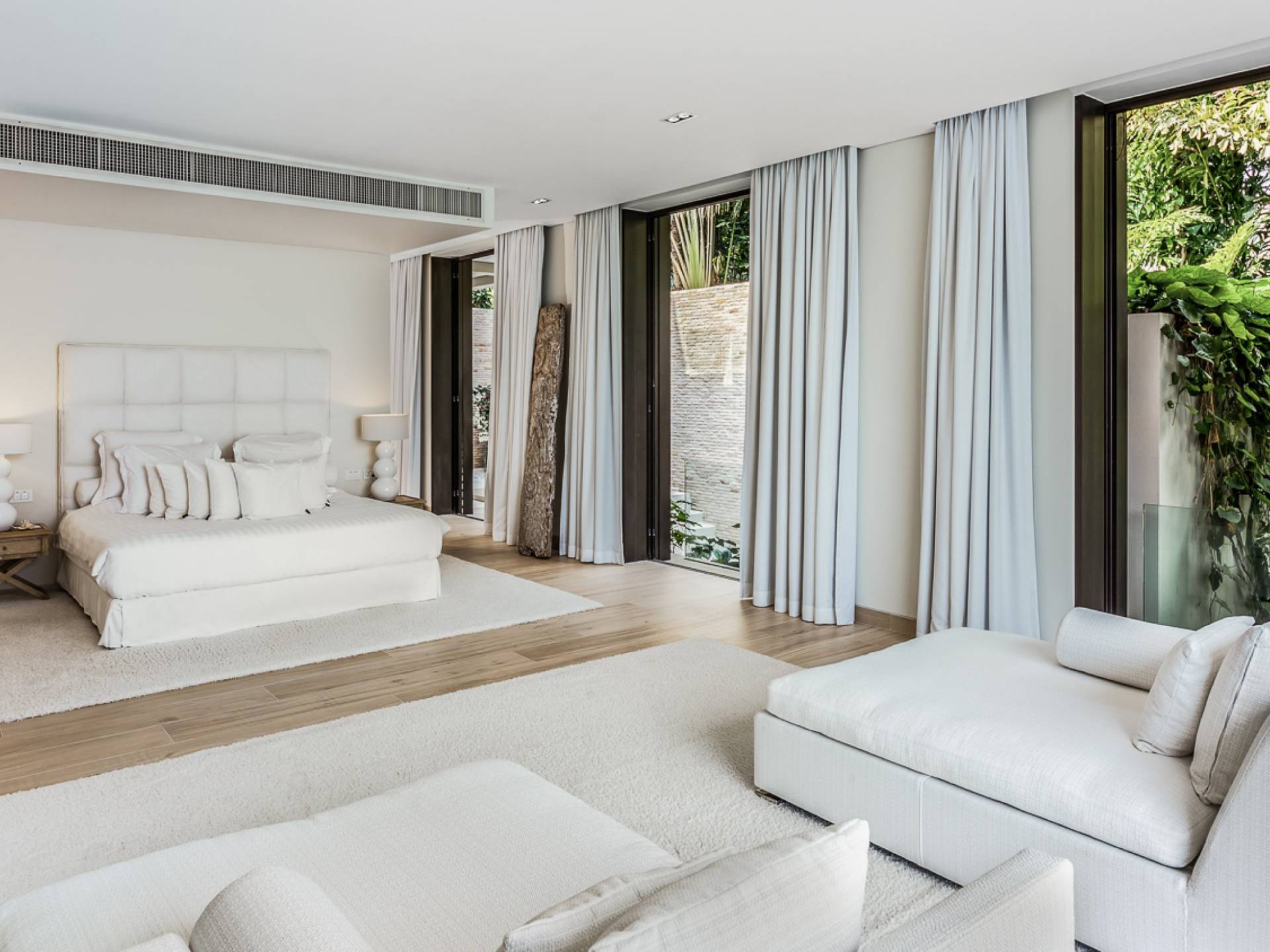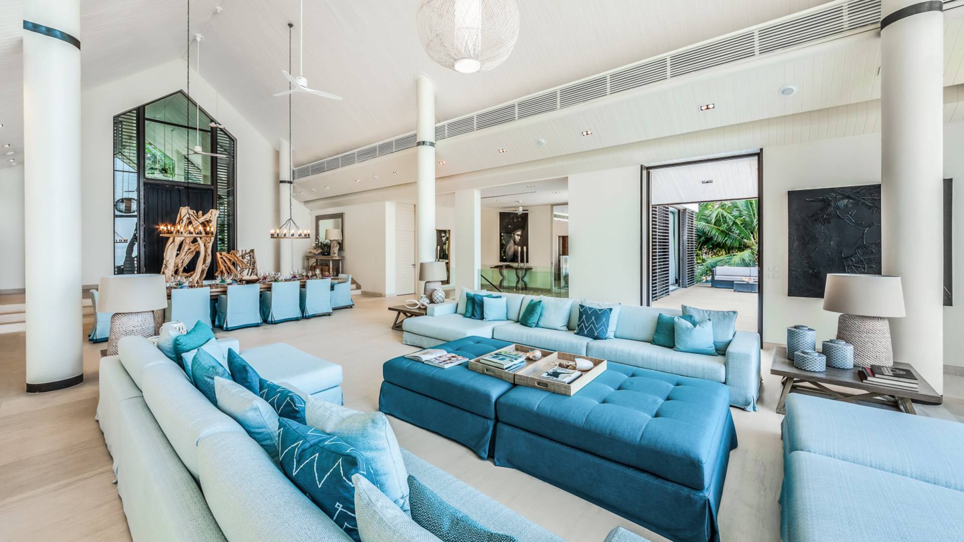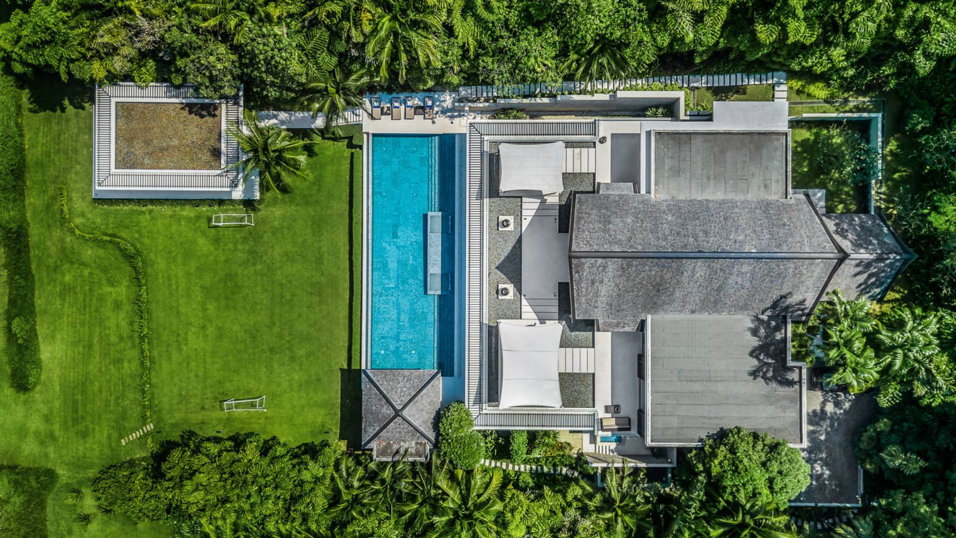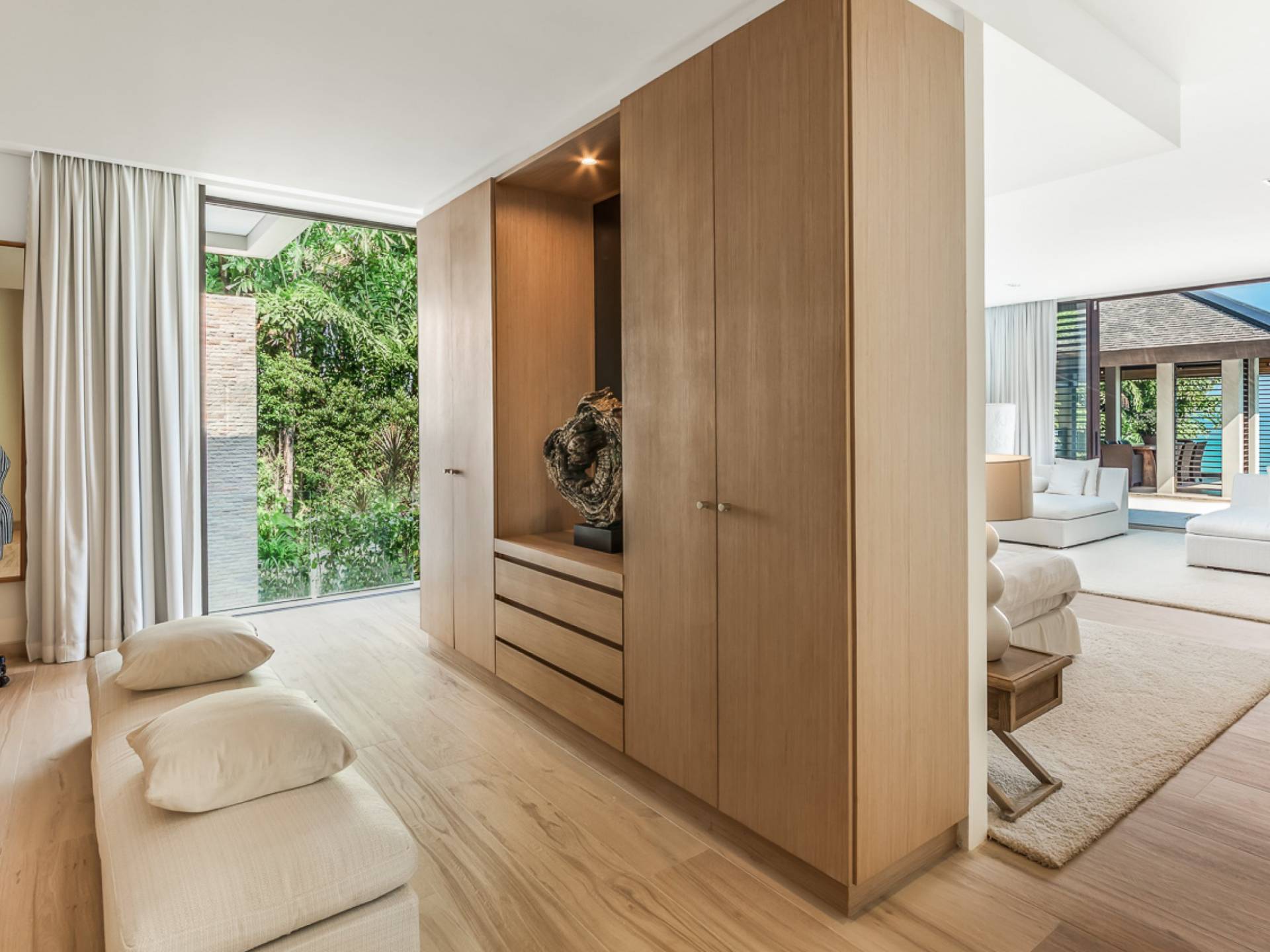 La villa tiene un total de 5 habitaciones, cada una con su propio baño privado. Una de las habitaciones está construida como un bungalow independiente a pocos metros de la casa principal y ofrece una vista aún más cercana de la bahía. Una piscina infinita de 25 m de largo se extiende por casi todo el ancho de la propiedad, y un jardín se extiende hasta el final de la propiedad con la playa. La villa también cuenta con un comedor y sala al aire libre, un bar junto a la piscina, un jacuzzi, una red de fútbol, kayaks y una sala de entretenimiento con mesa de billar, Xbox, juegos de mesa y Apple TV.
