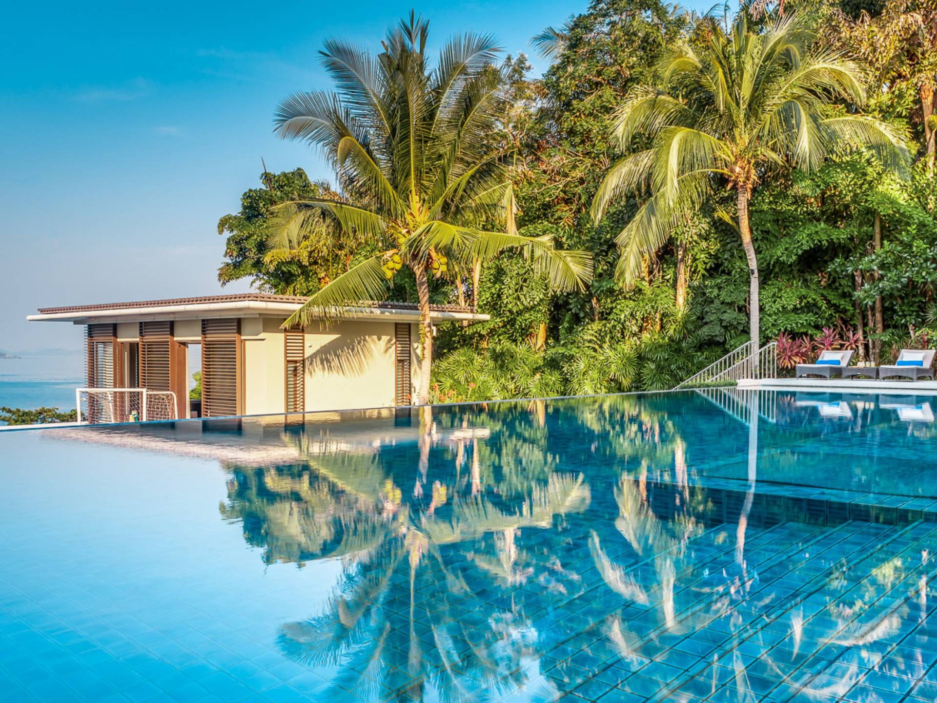 Villa Vikasa Phuket es una villa de lujo en alquiler con 5 dormitorios y una piscina privada. Villa Vikasa se encuentra en la costa este de Phuket. Está construido sobre 4.865 metros cuadrados de terreno frente al mar, con vistas a la bahía de Phang Nga y al mar de Andamán más allá.