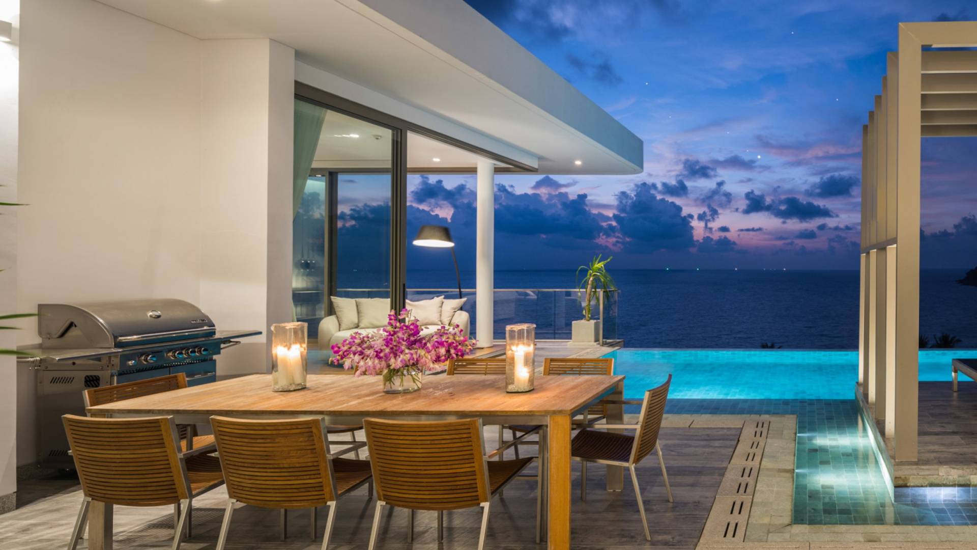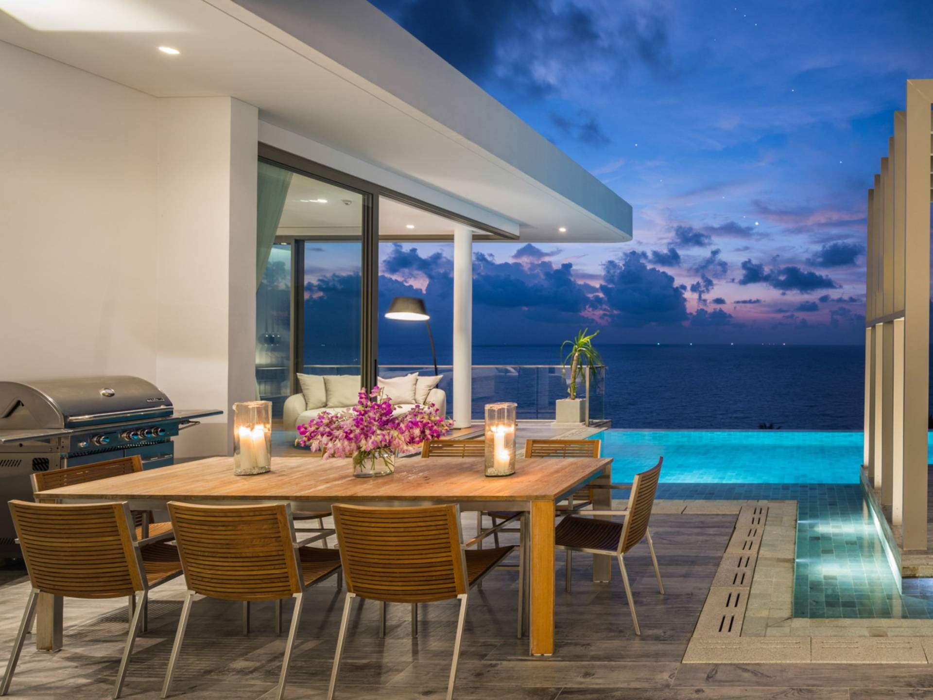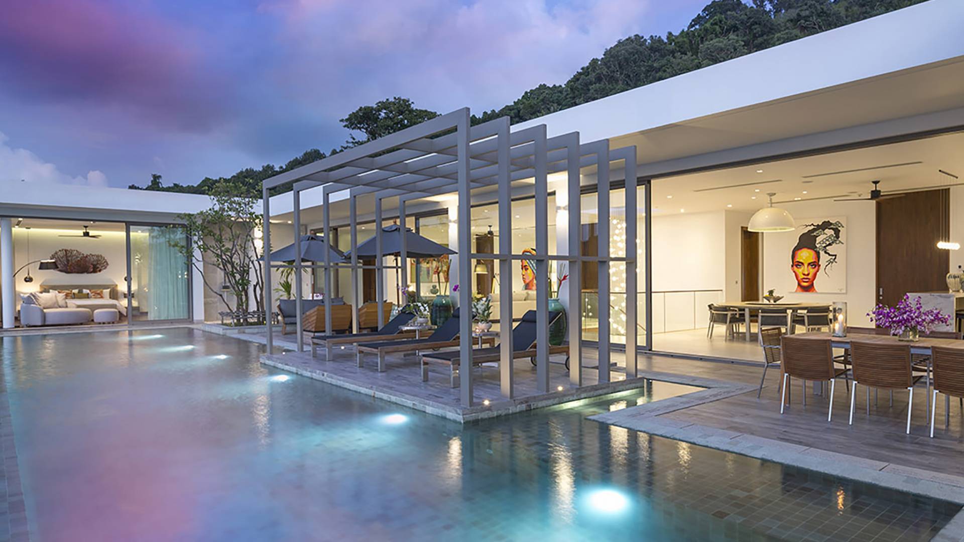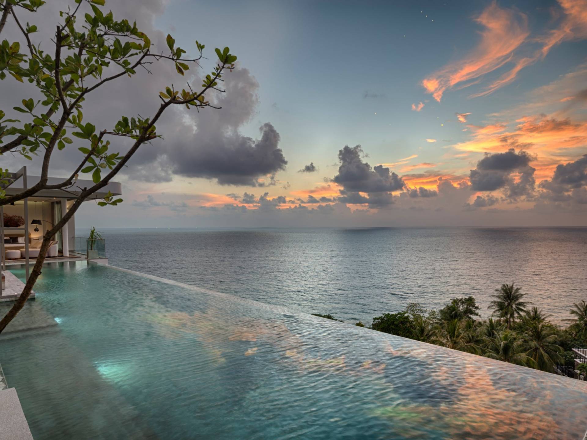 Malaiwana Penthouse Phuket es una vibrante residencia de cuatro dormitorios a pocos metros de la perfecta playa de Nai Thon. Con vistas panorámicas al mar desde su ubicación en la ladera, Malaiwana Penthouse Phuket es ideal para familias o grupos de amigos que buscan serenidad total y hospitalidad de cinco estrellas. Refrésquese en la piscina privada de 20 metros, relájese en la sala multimedia o retírese en una de las lujosas suites de un dormitorio. Después de un paseo vespertino por la playa, regrese para tomar un cóctel al atardecer en la sala de la piscina y entretenerse con estilo en las áreas de comedor y sala de estar de planta abierta mientras un equipo de personal de tiempo completo, incluido un chef, brinda un servicio cálido y profesional.