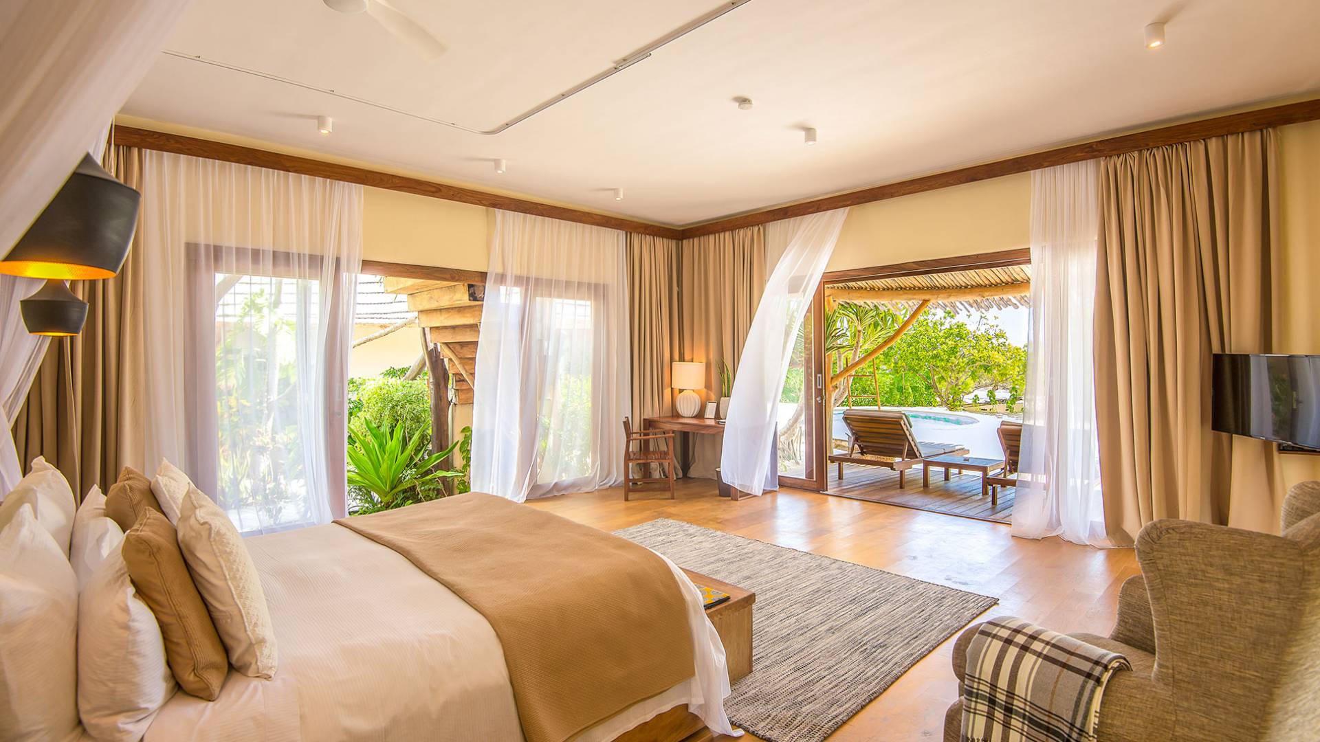 Zanzibar White Sand Luxury Villas & Spa incluye 11 villas (villas de un dormitorio frente al mar, villas familiares de dos dormitorios y villa presidencial de cinco dormitorios) y habitaciones Cinnamon frente al paseo marítimo de la playa de Paje y distribuidas en 4 hectáreas (10 acres). ) de un jardín tropical. El complejo también incluye un restaurante a la carta, un restaurante en la playa que sirve almuerzos y 3 bares ubicados en las diferentes áreas del complejo (lounge bar, bar de playa, bar de champán en la azotea). Para las actividades diurnas, un centro de deportes acuáticos y kitesurf, grandes piscinas, un gimnasio al aire libre, un parque infantil y un spa que incluye un par de salas de tratamiento garantizarán días radiantes.