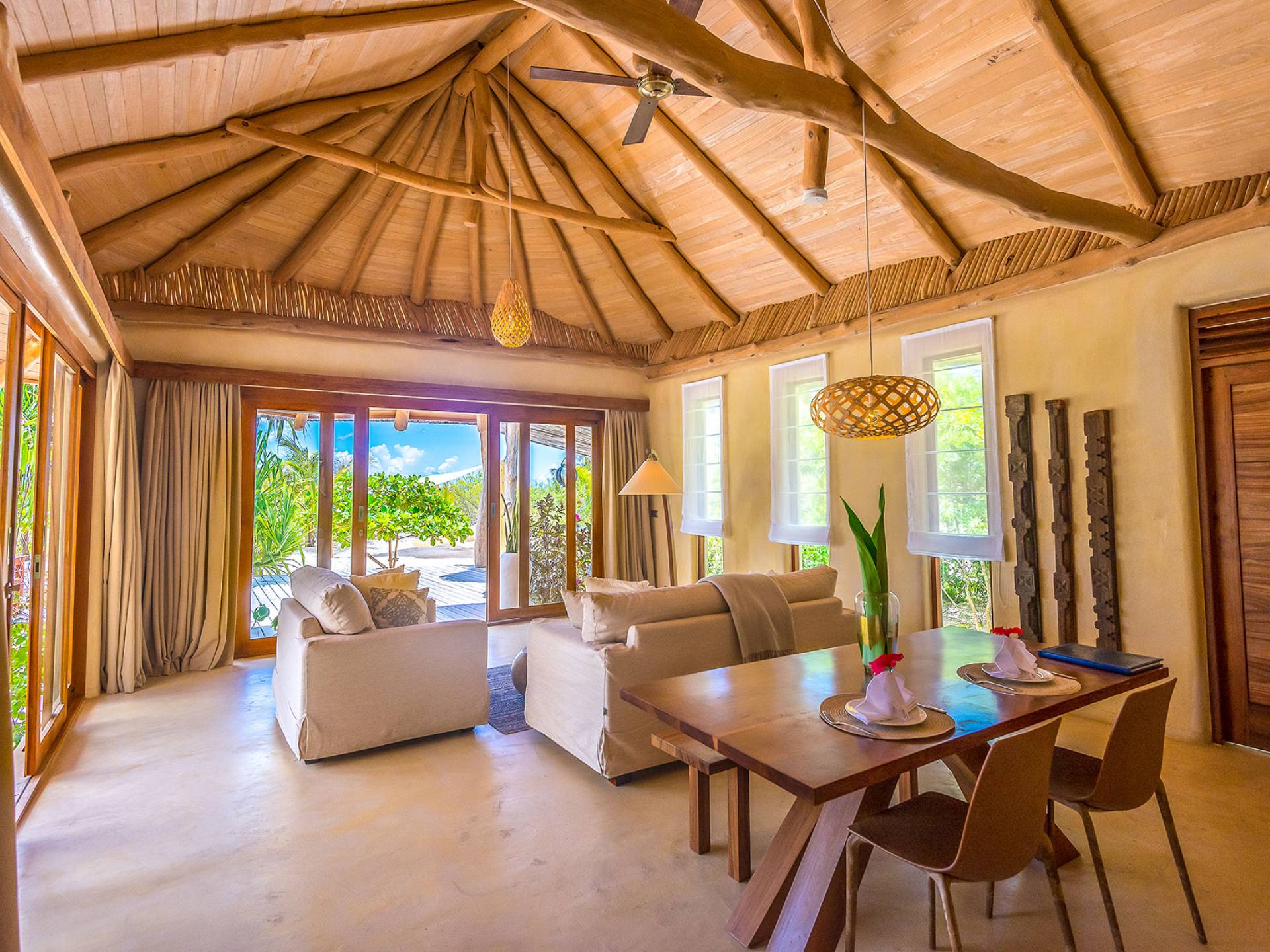Además, la villa incluye una unidad de sala de estar con techo alto y área de descanso, una gran terraza, piscina privada, 750 m2 de parcela privada, sillones y un baño externo con ducha y bañera al aire libre. La villa está rodeada de exuberantes jardines y se encuentra en primera línea de playa, con acceso directo a la playa. La villa es atendida por un mayordomo para su máxima comodidad.
